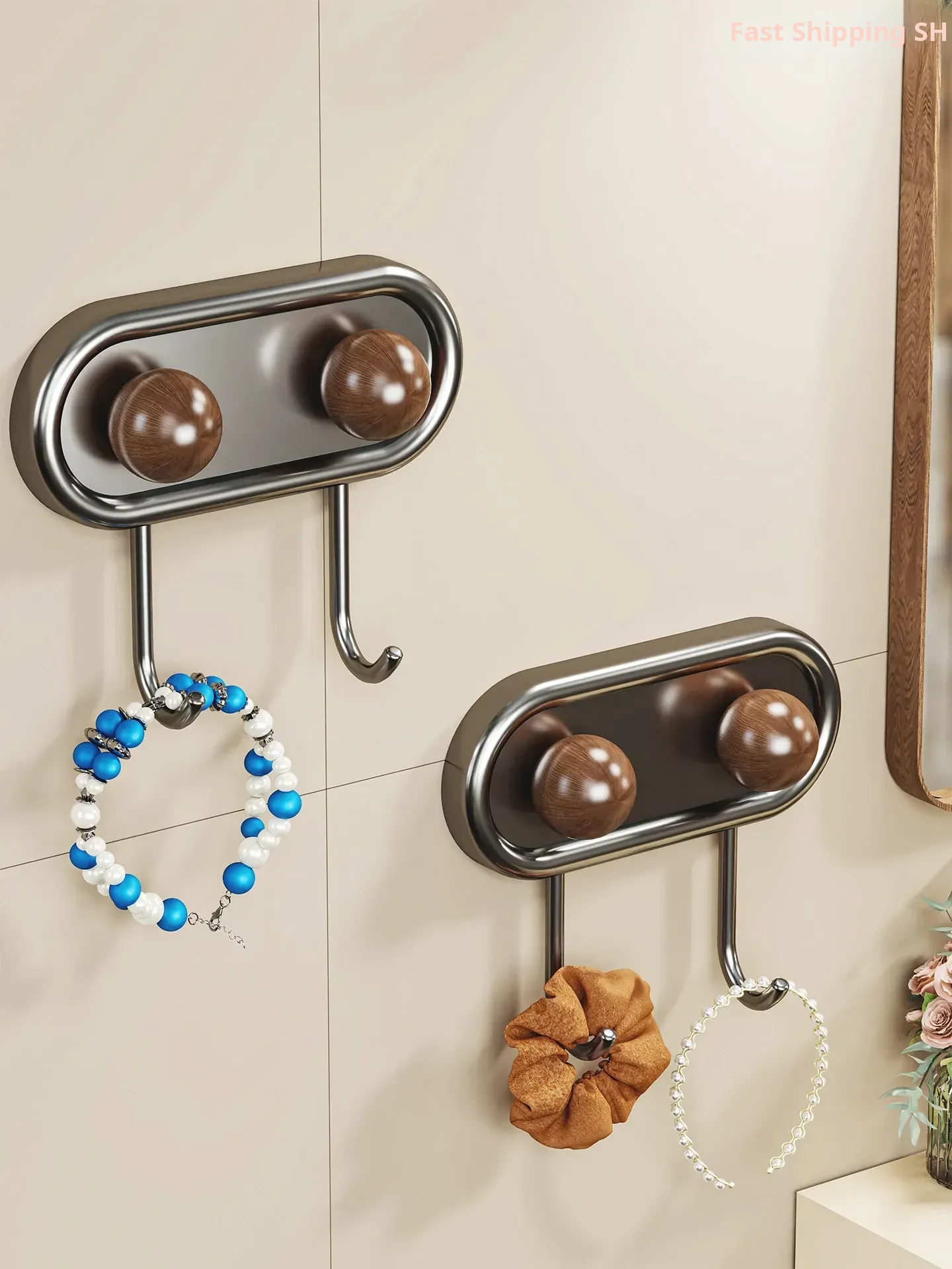 Walnut Wood Wall Hooks - Vintage Style Coat Rack for Entryway, No Drill Adhesive Hooks for Clothes, Bathroom Wall-Mounted Organizer