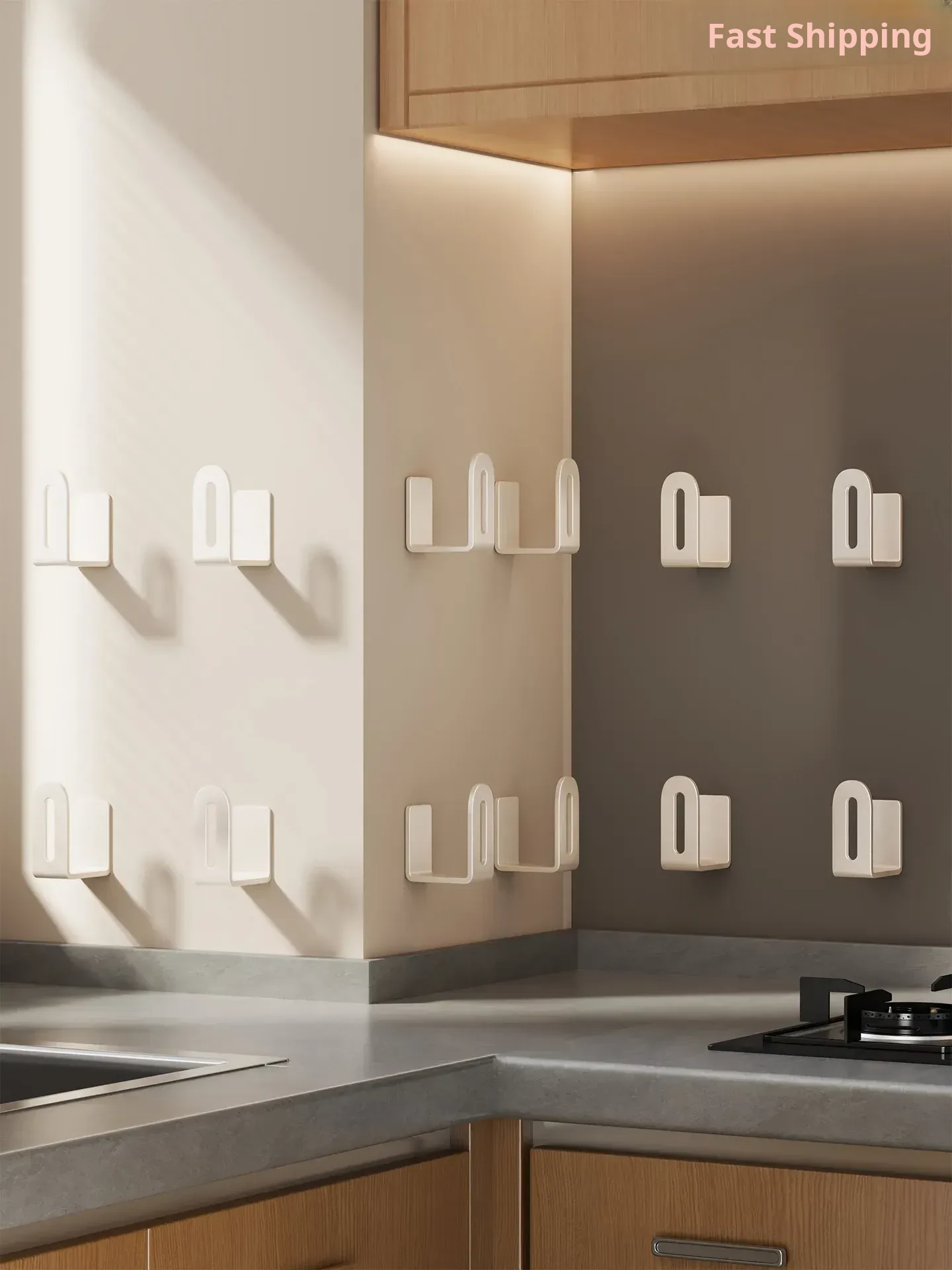 Wall-Mounted Cabinet Hooks for Kitchen Organization - No Drill Required Pot, Spatula & Spoon Rack for Door Storage Solutions