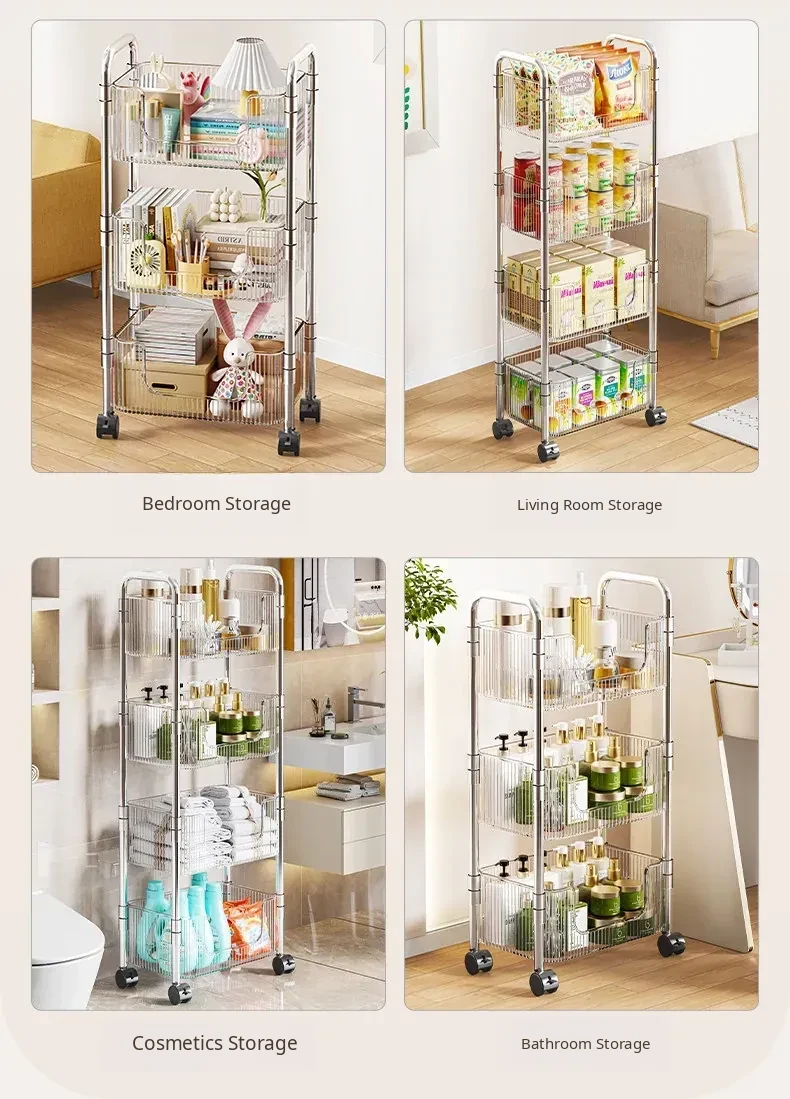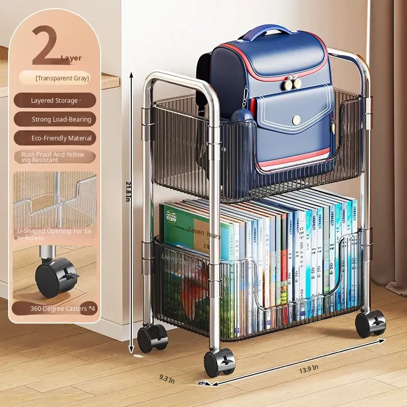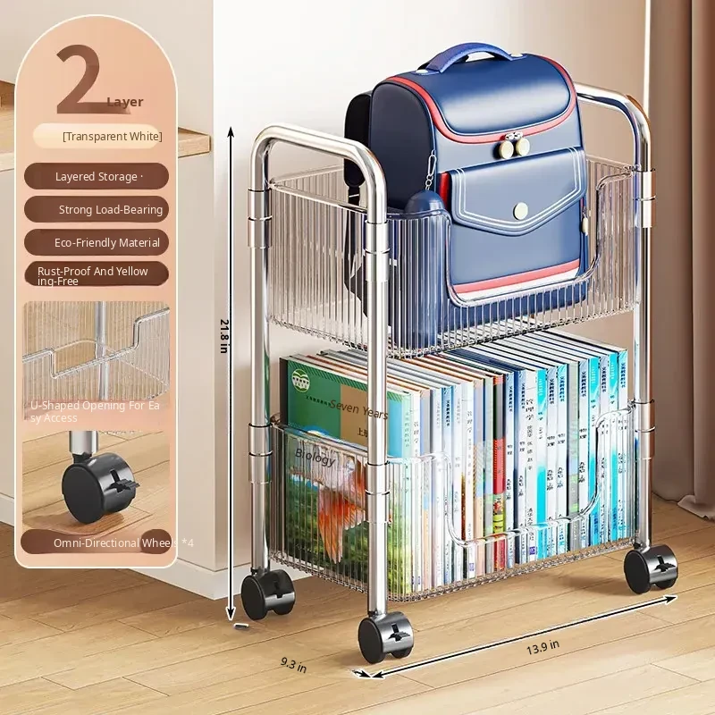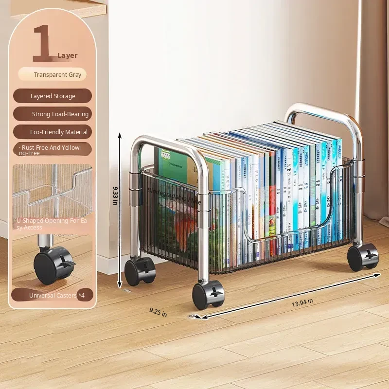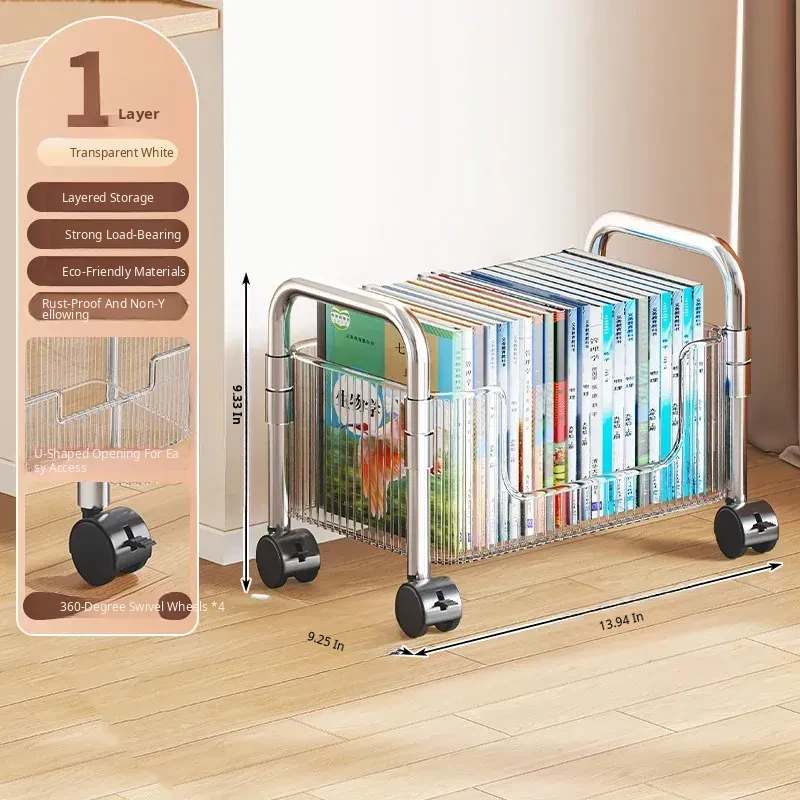 Acrylic Multi-Layer Bookshelf Trolley - Stylish Floor Storage Cart for Home, Perfect for Organizing Books, Snacks, and Toys!