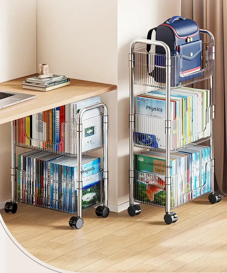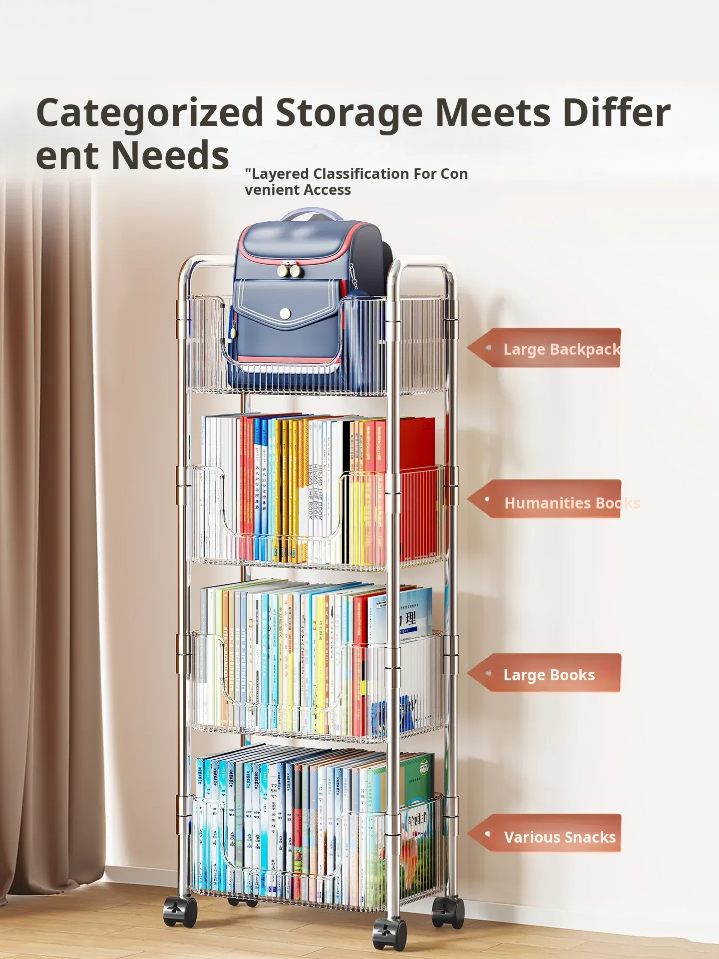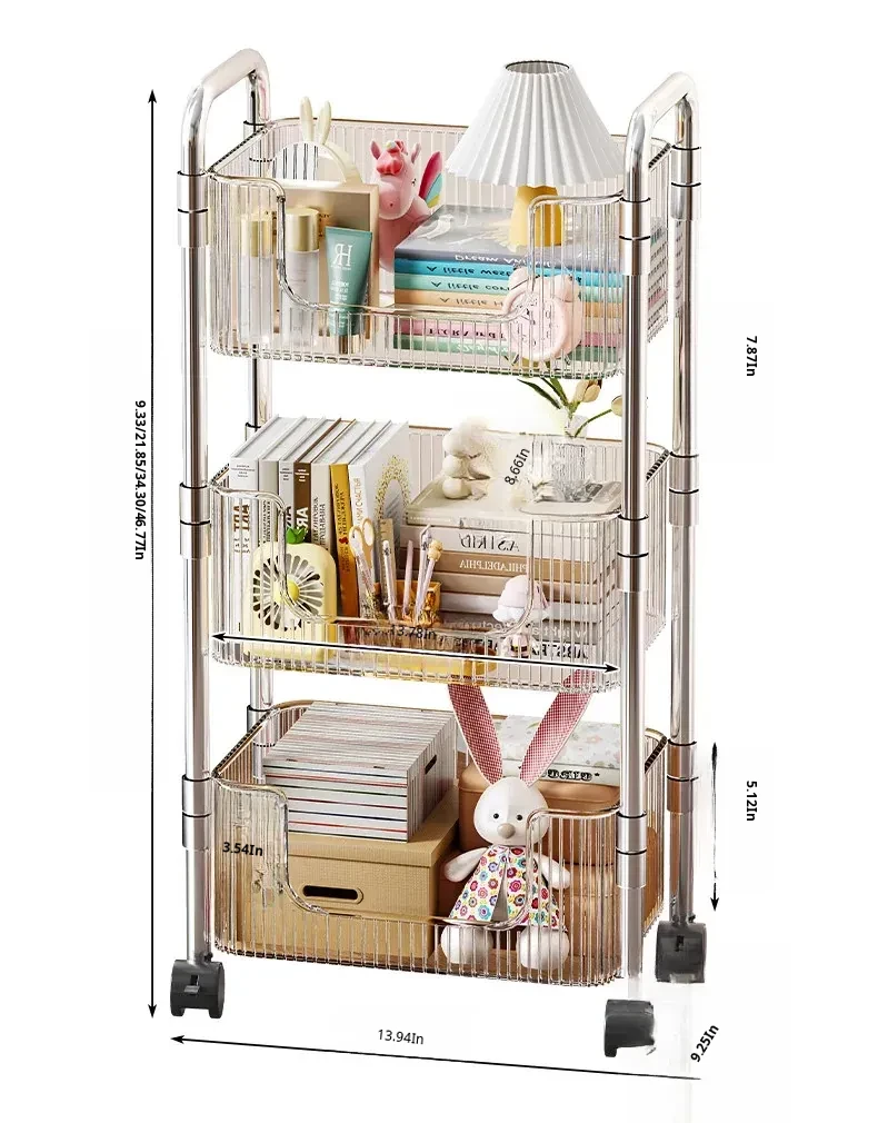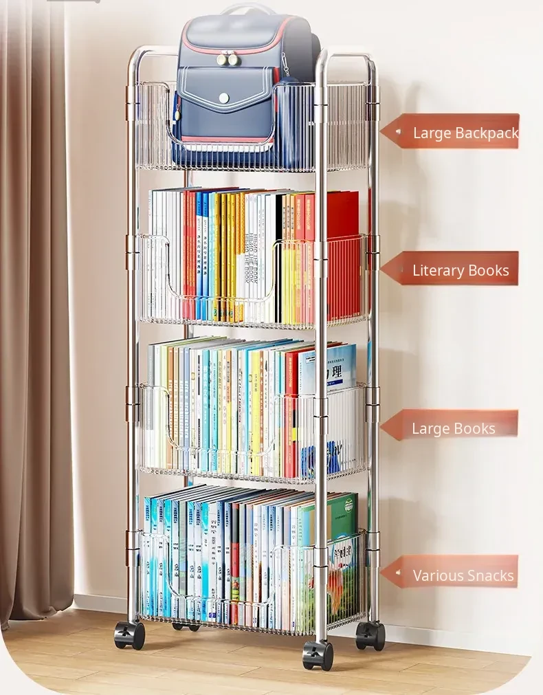 Acrylic Multi-Layer Bookshelf Trolley - Stylish Floor Storage Cart for Home, Perfect for Organizing Books, Snacks, and Toys!