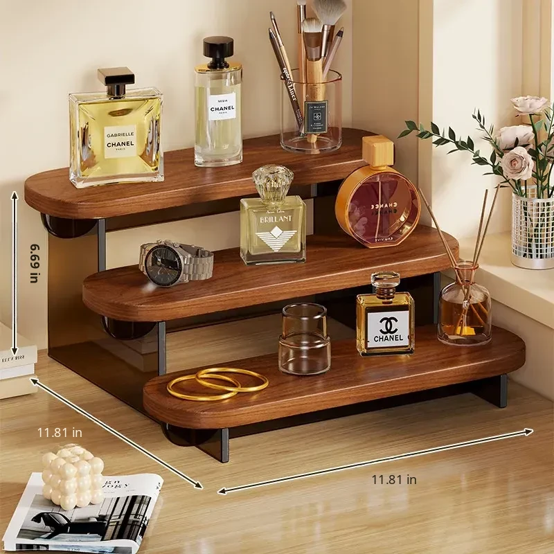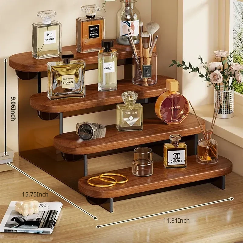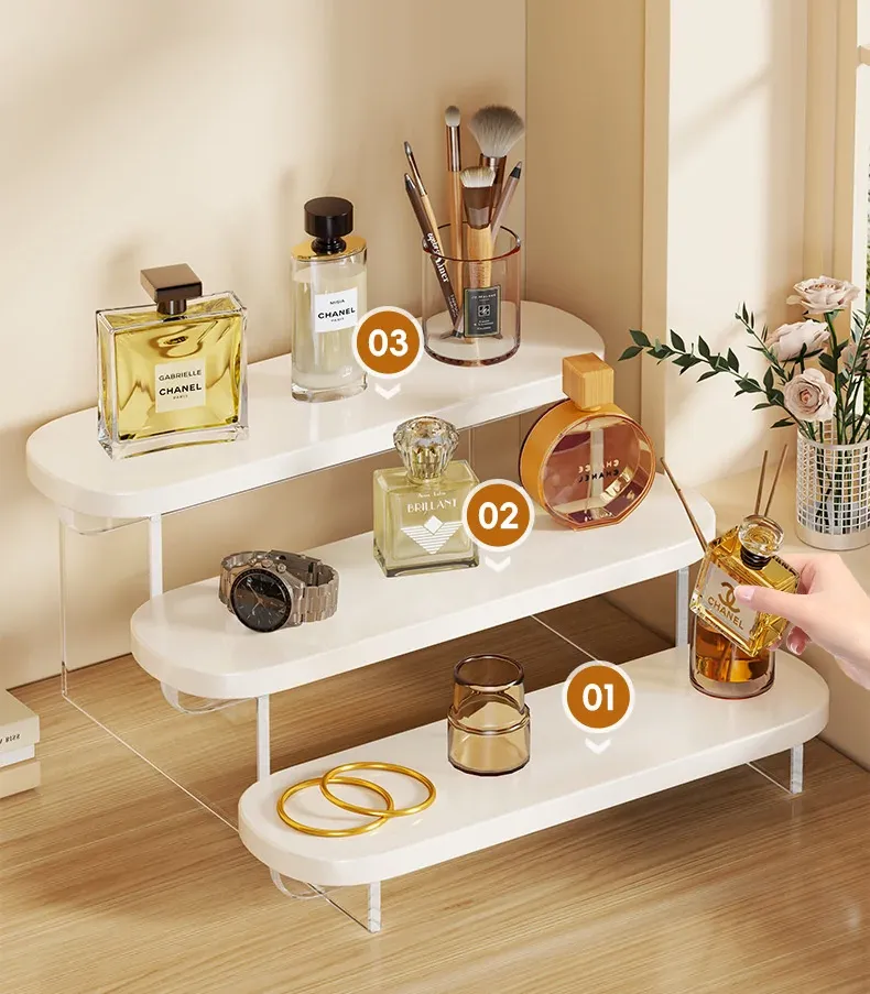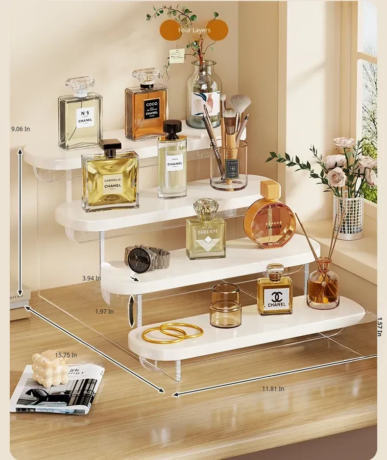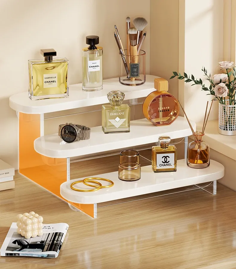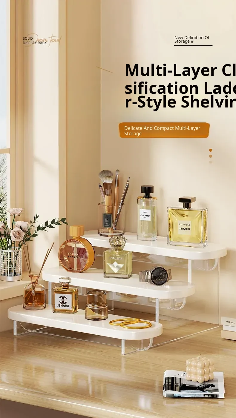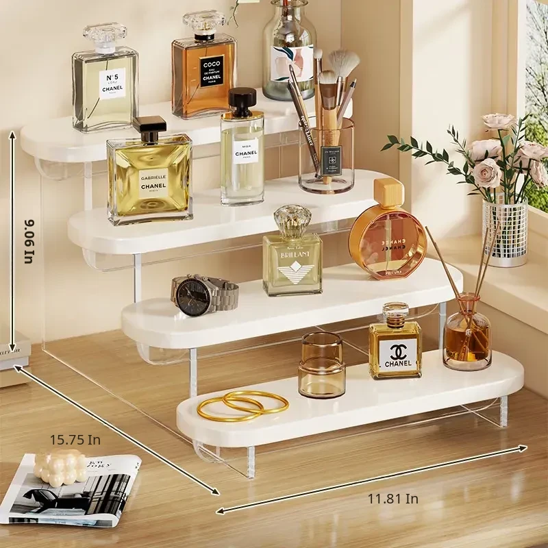 Acrylic Perfume Display Rack - Premium Cosmetic Organizer for Skincare Products, Multi-Layered Step Design, Ideal for Desktop and Entryway Storage