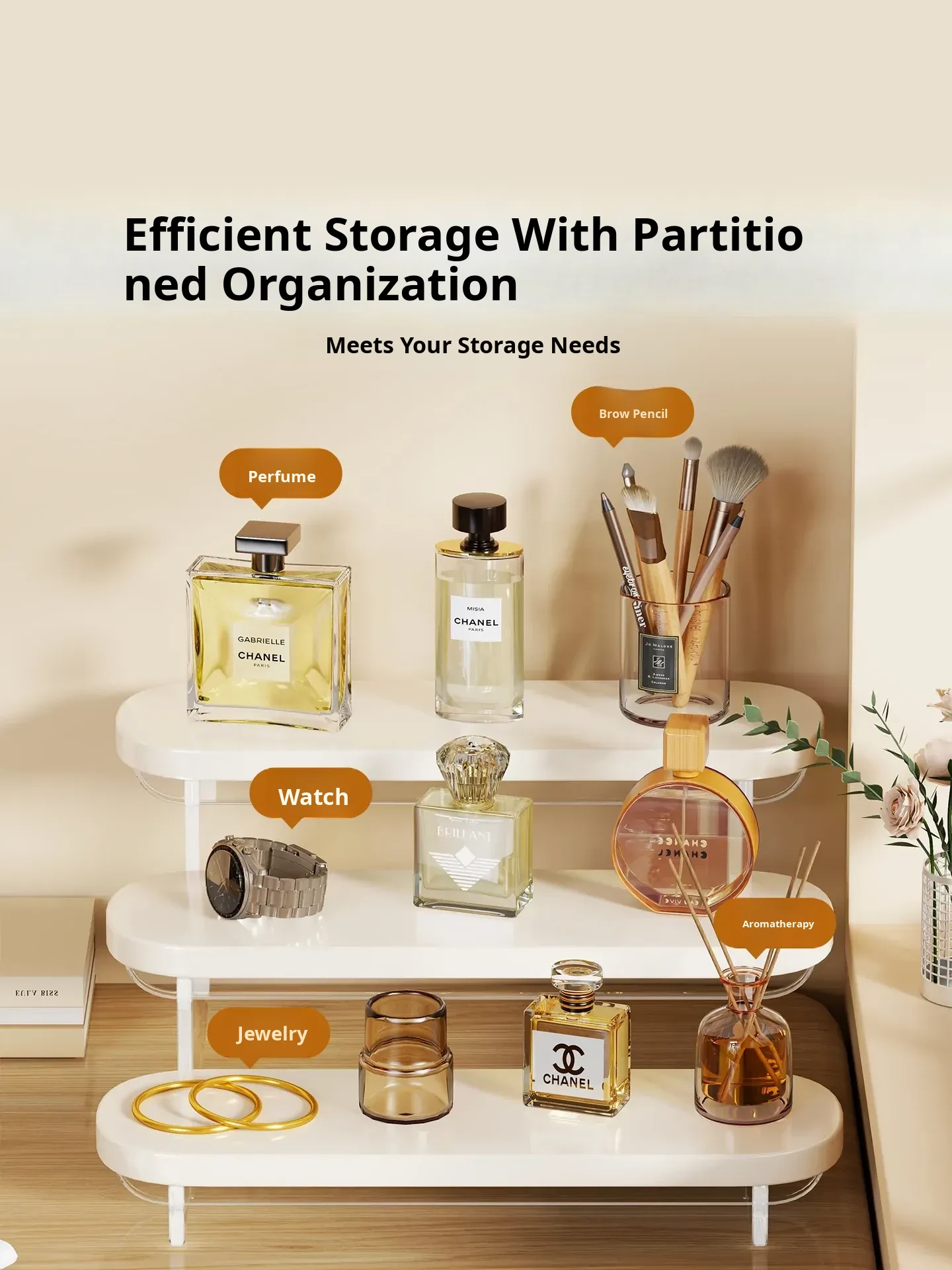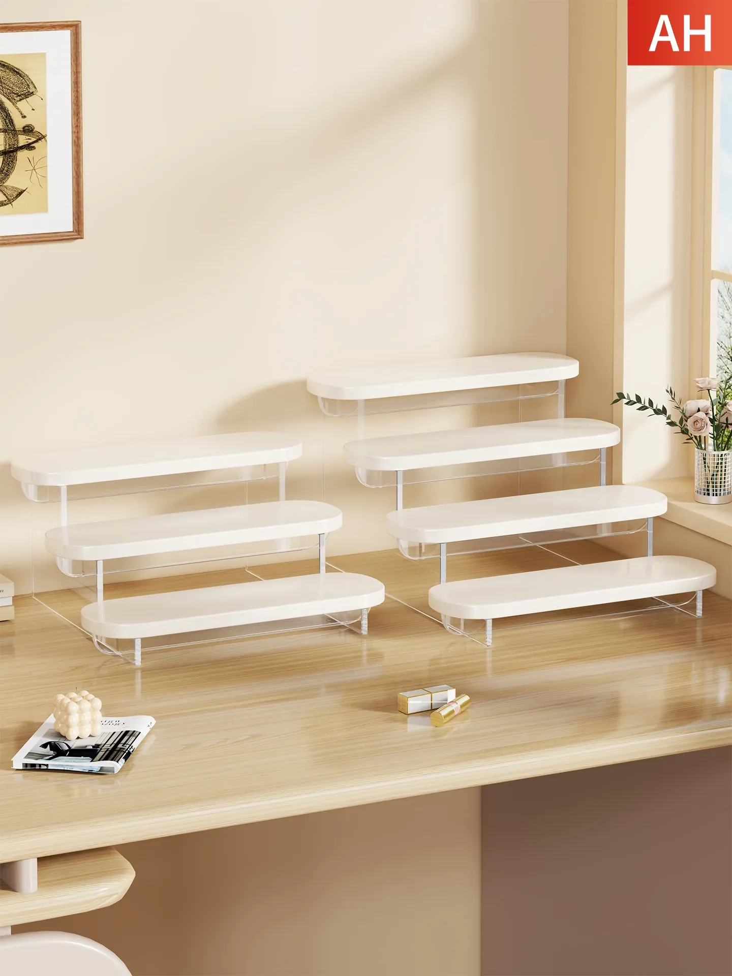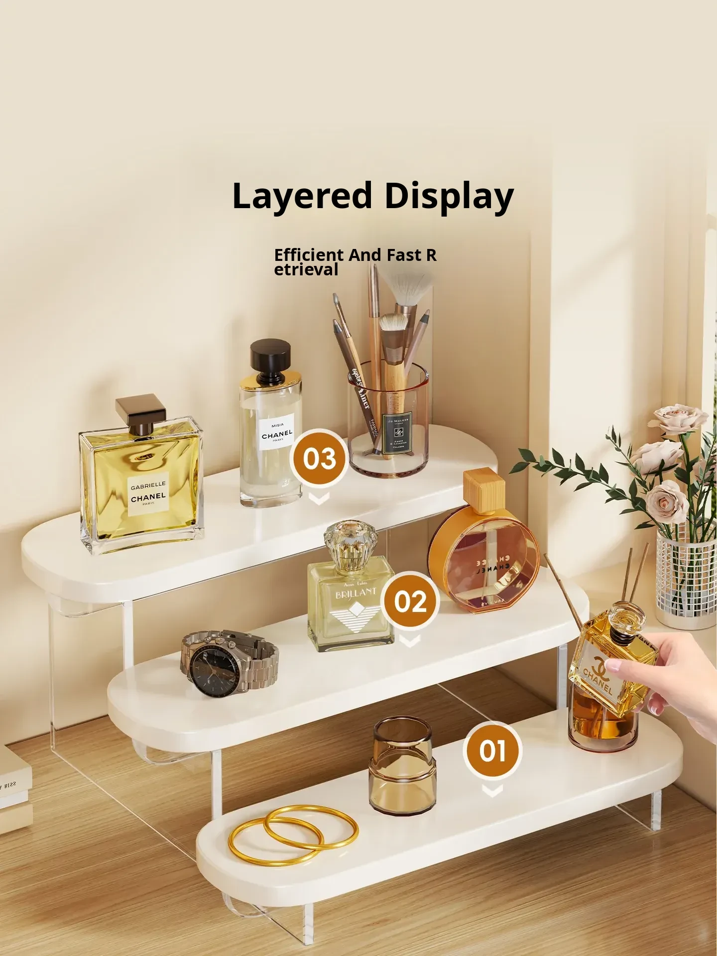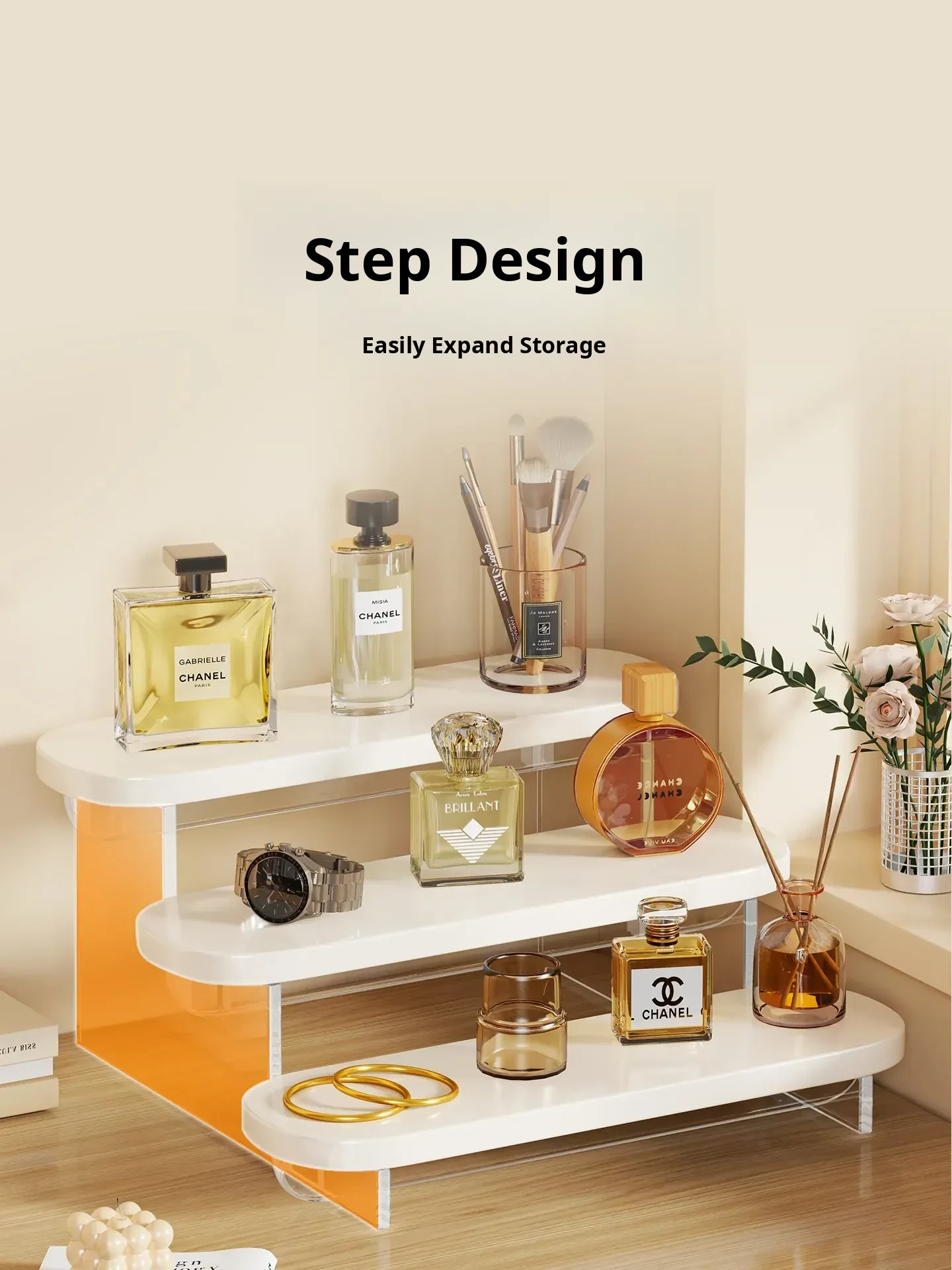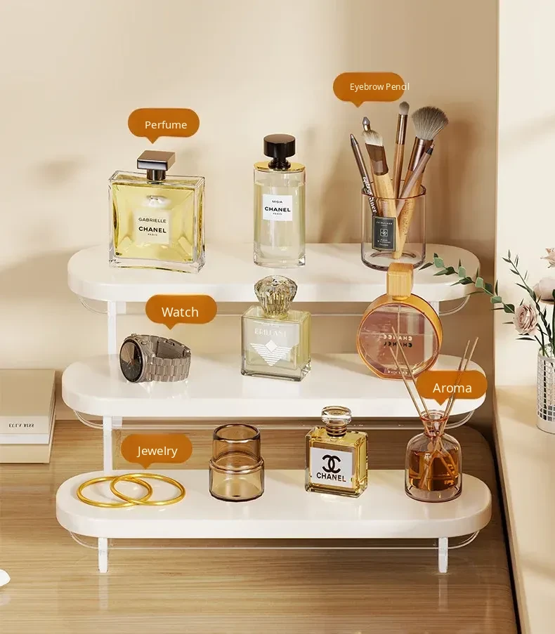 Acrylic Perfume Display Rack - Premium Cosmetic Organizer for Skincare Products, Multi-Layered Step Design, Ideal for Desktop and Entryway Storage