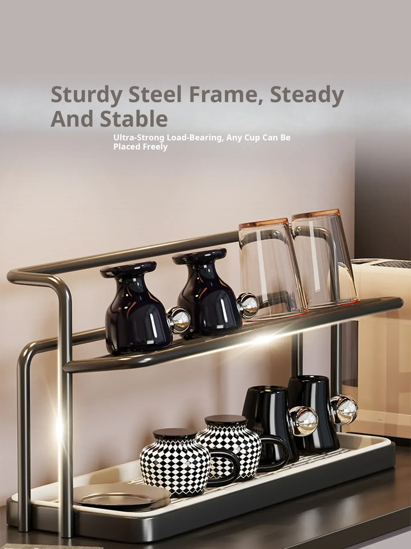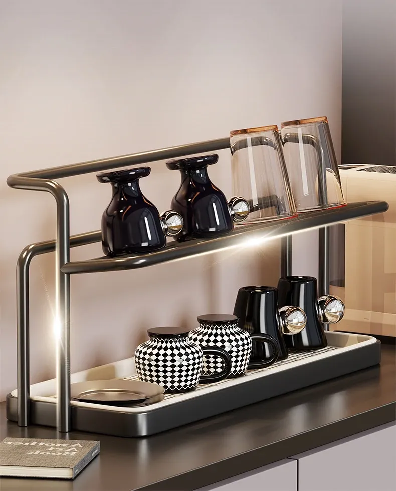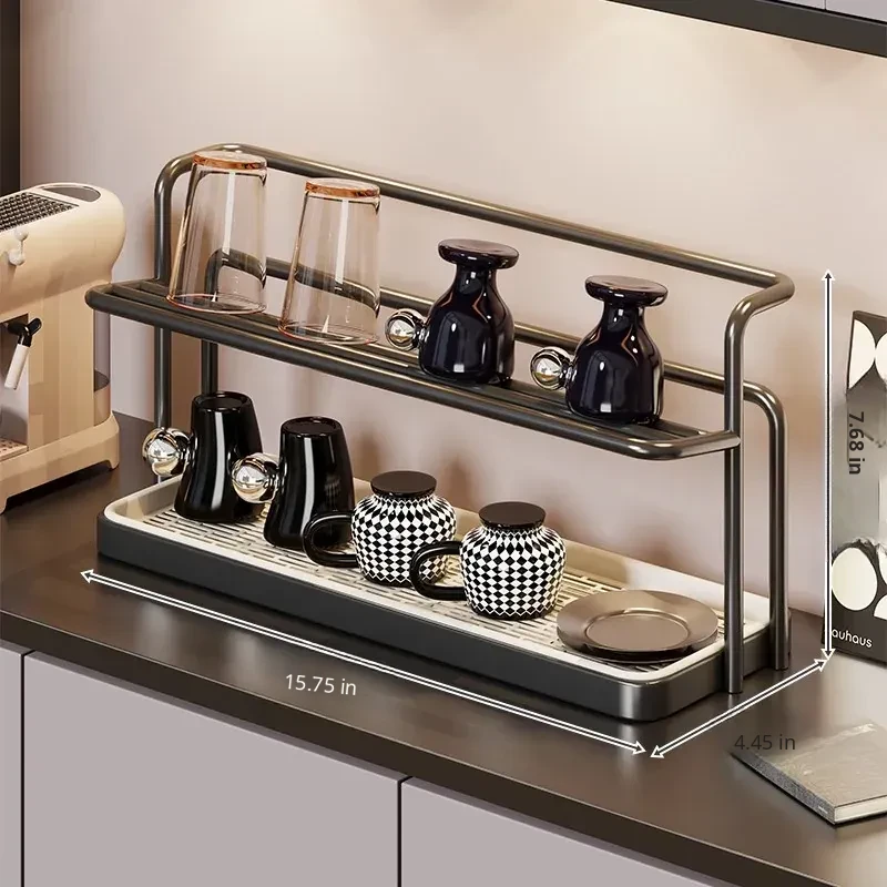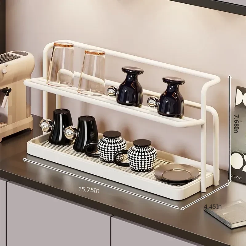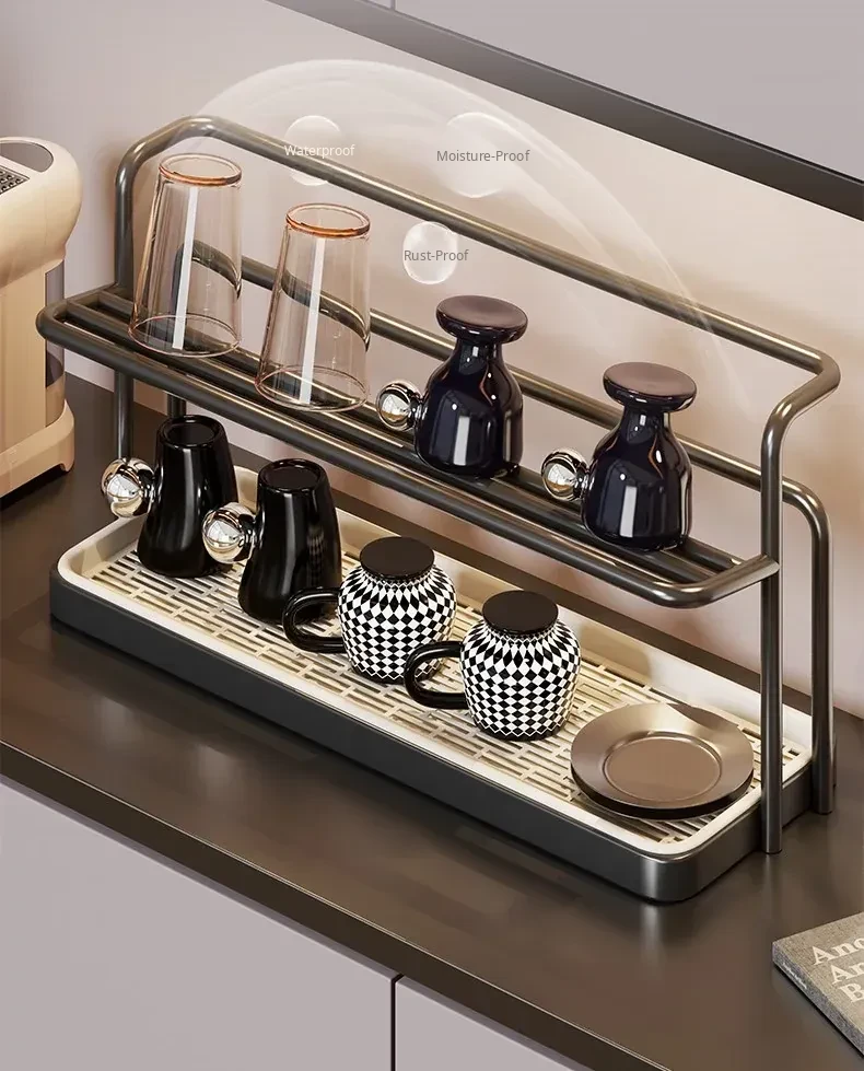 Double-Layer Cup Holder Rack - Stylish and Functional Drink Organizer for Dining Table, Perfect for Tea Sets and Kitchen Storage Solutions, Ideal for Sideboards and Countertops