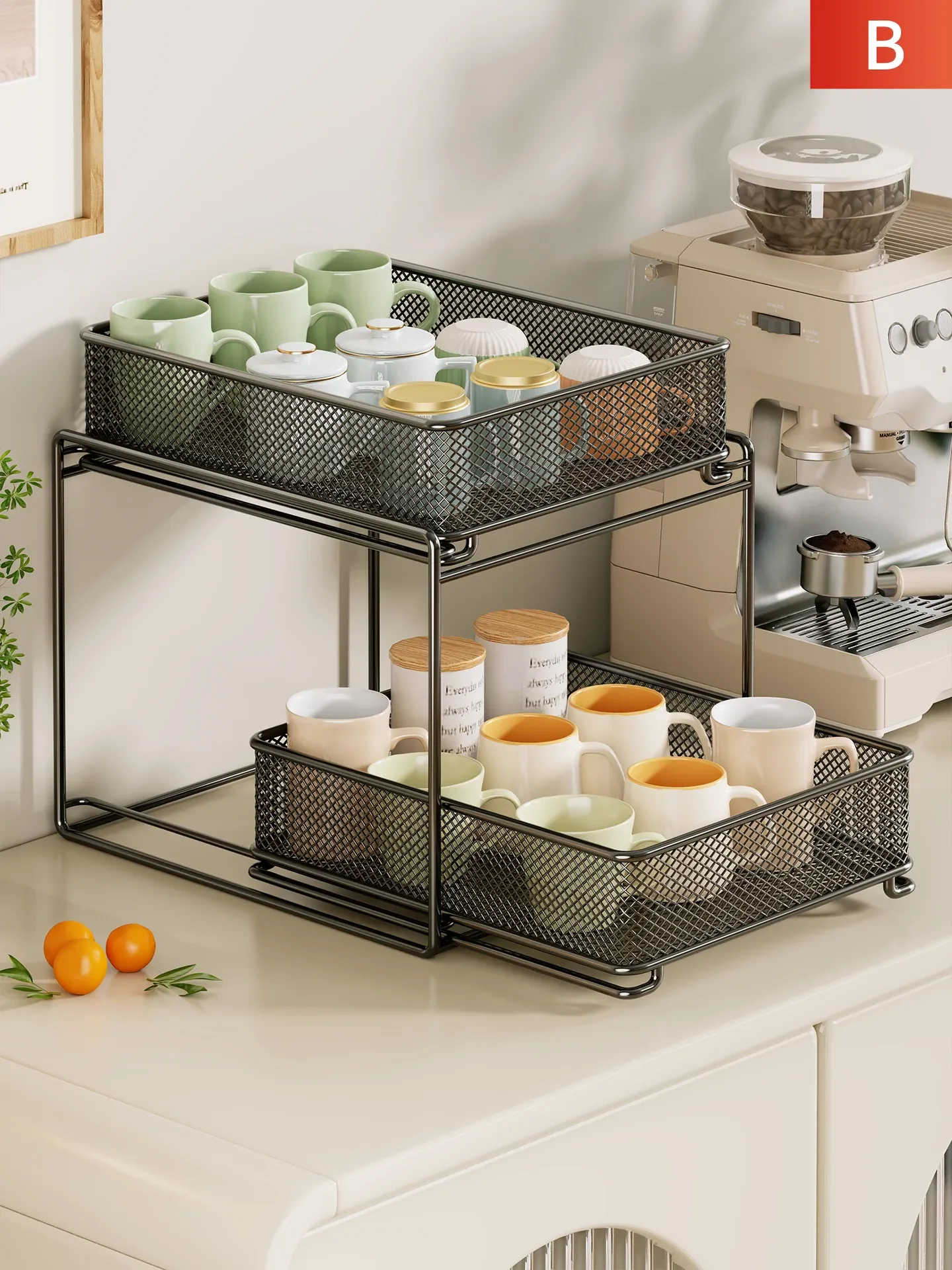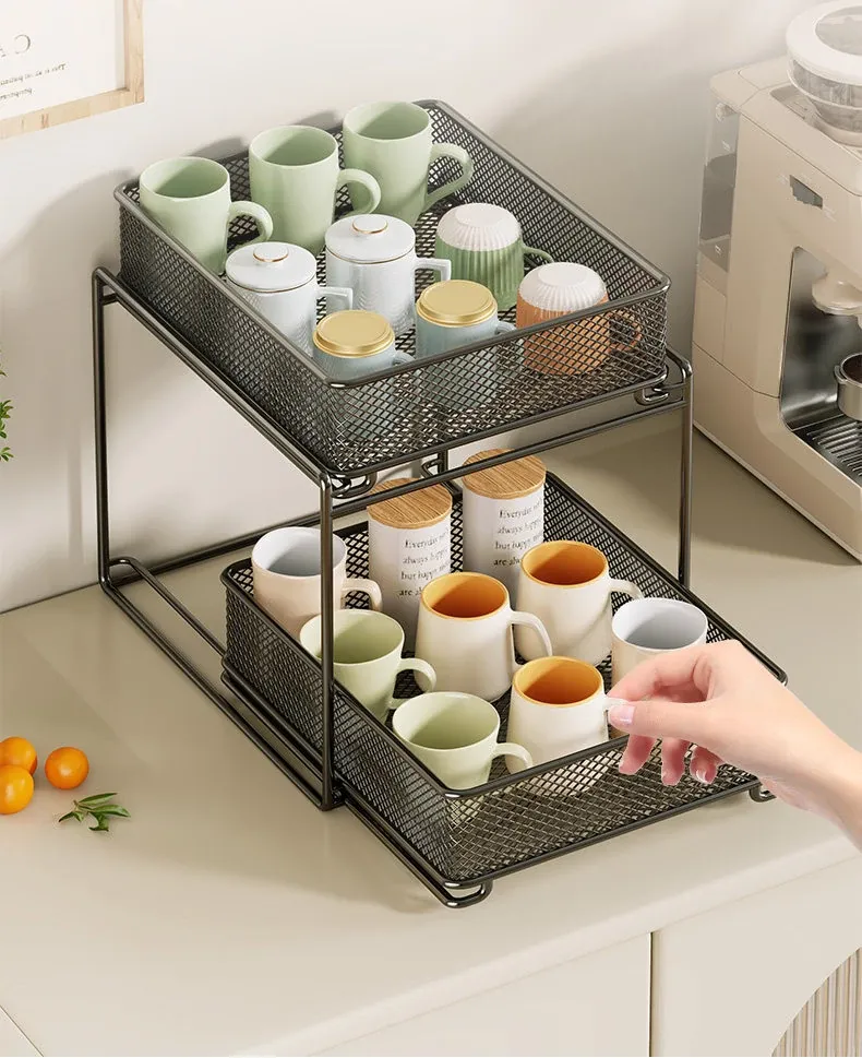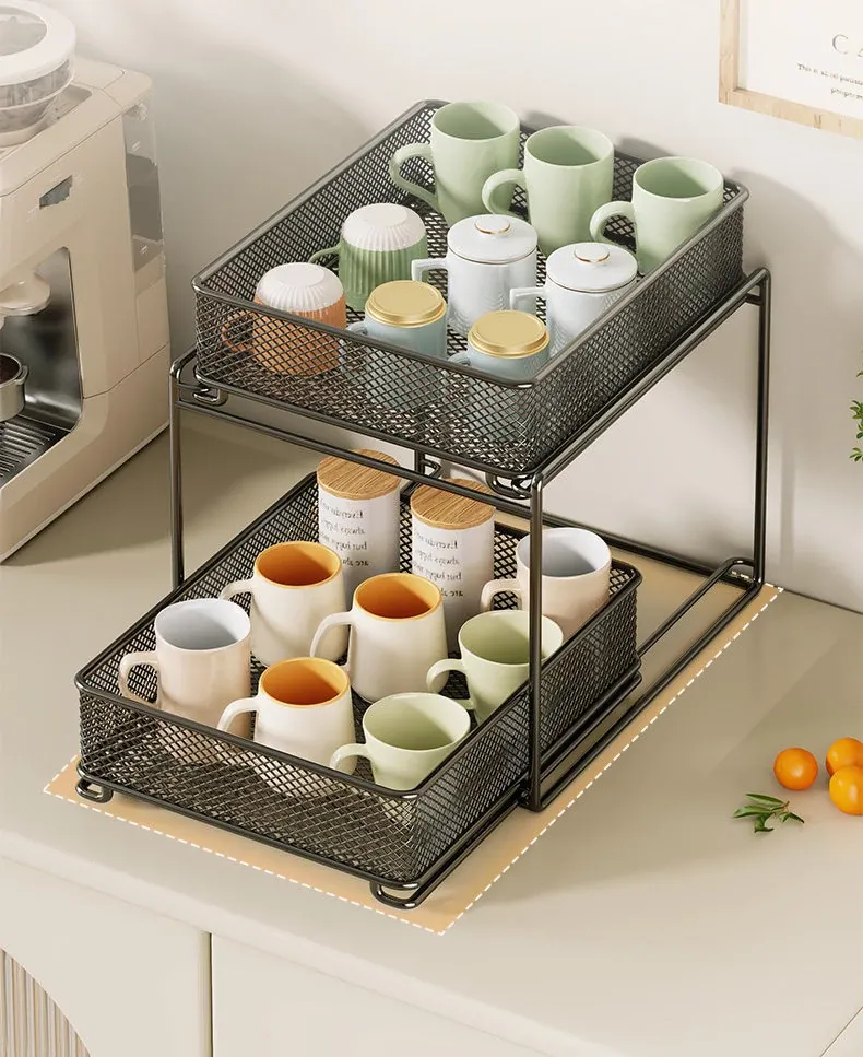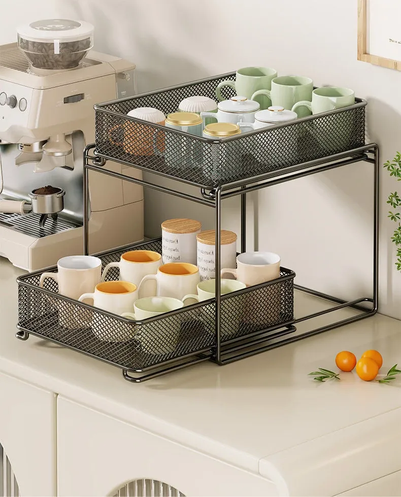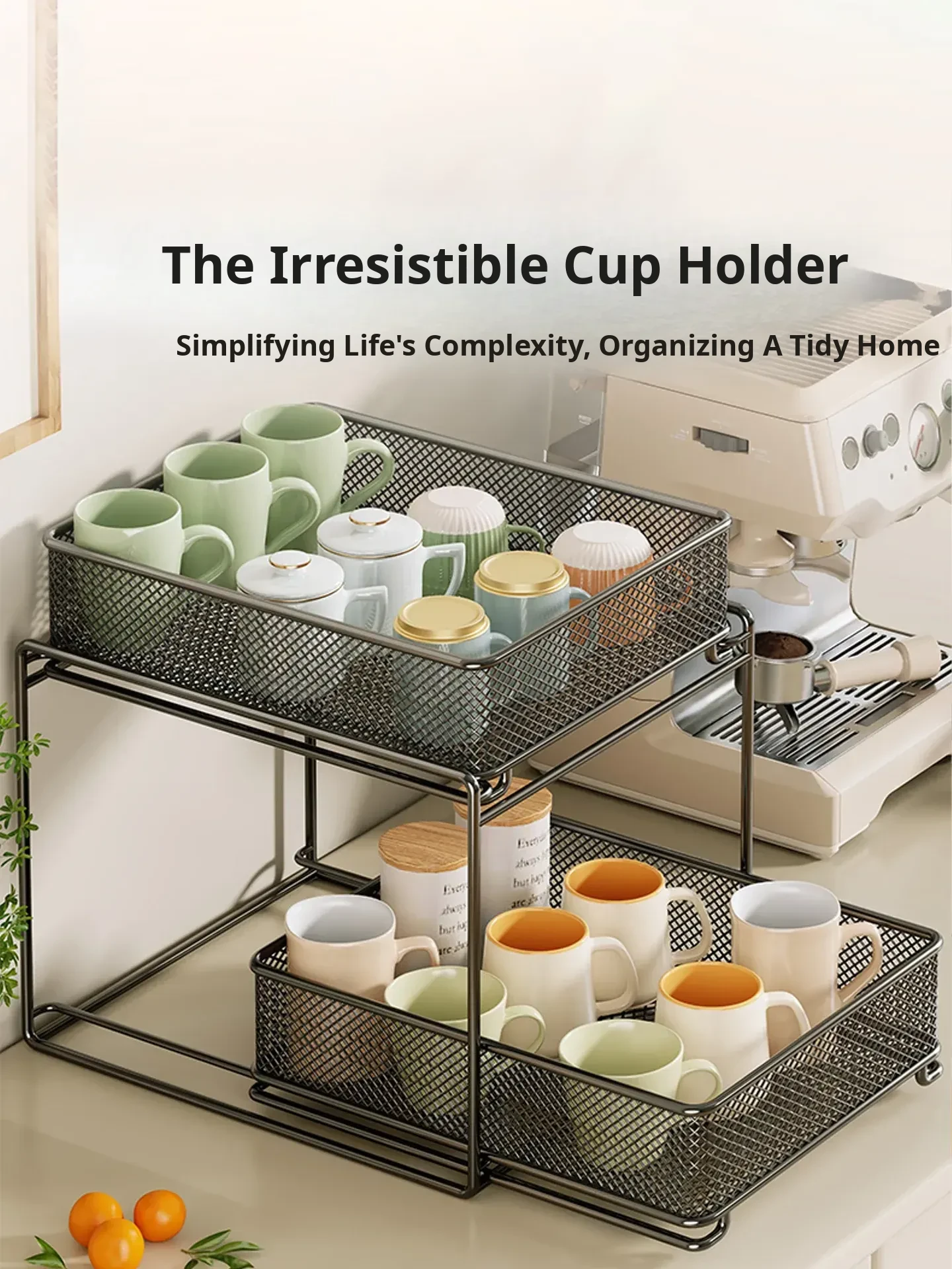 Double-Layer Draining Tray Rack for Kitchen Counter - Stylish Storage Organizer for Glasses, Teacups, Coffee Mugs, and Water Cups - Keep Your Kitchen Tidy and Elegant!