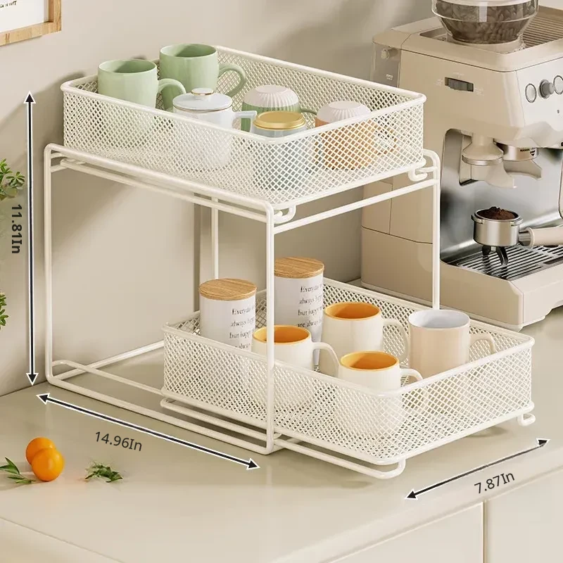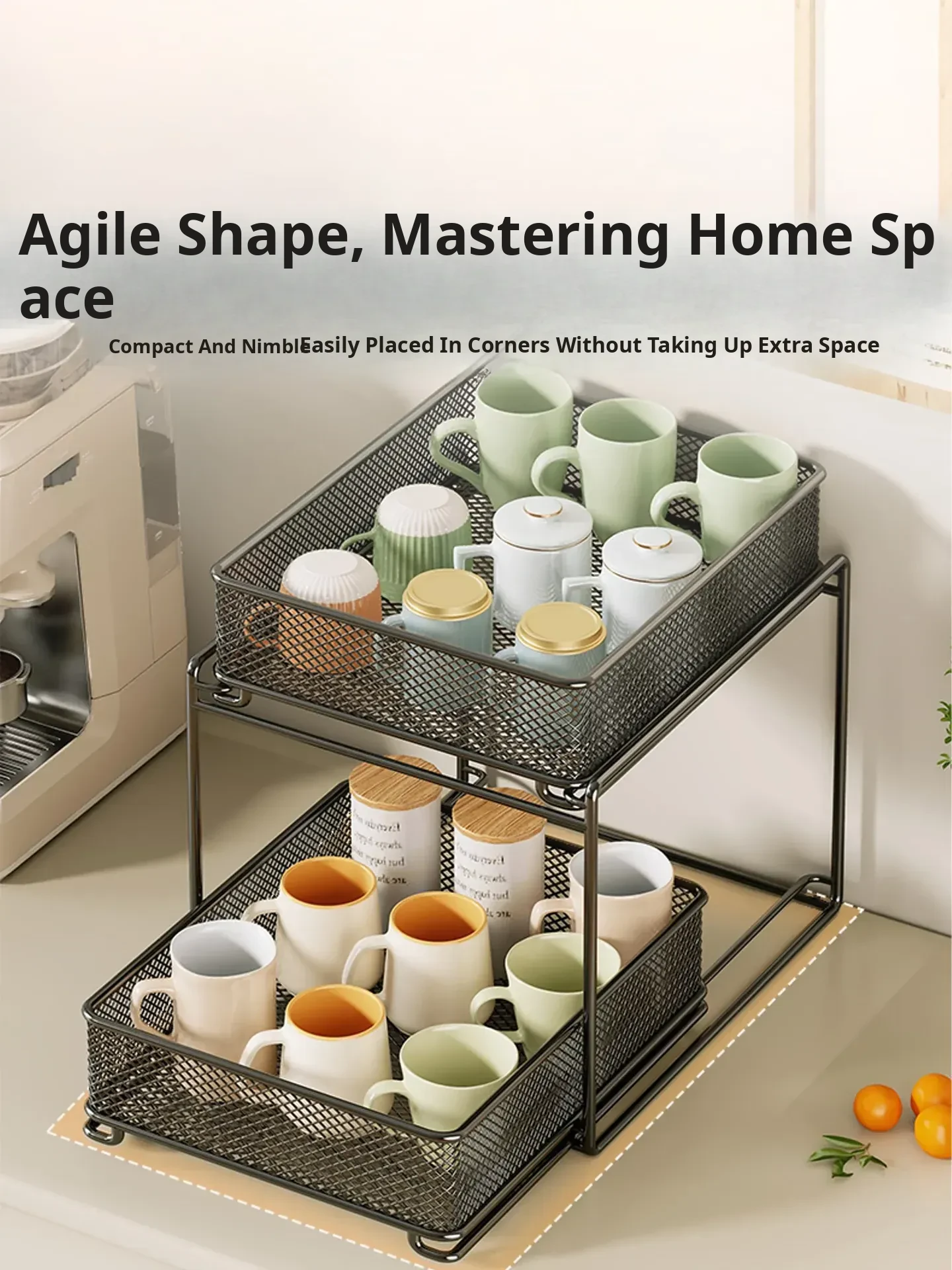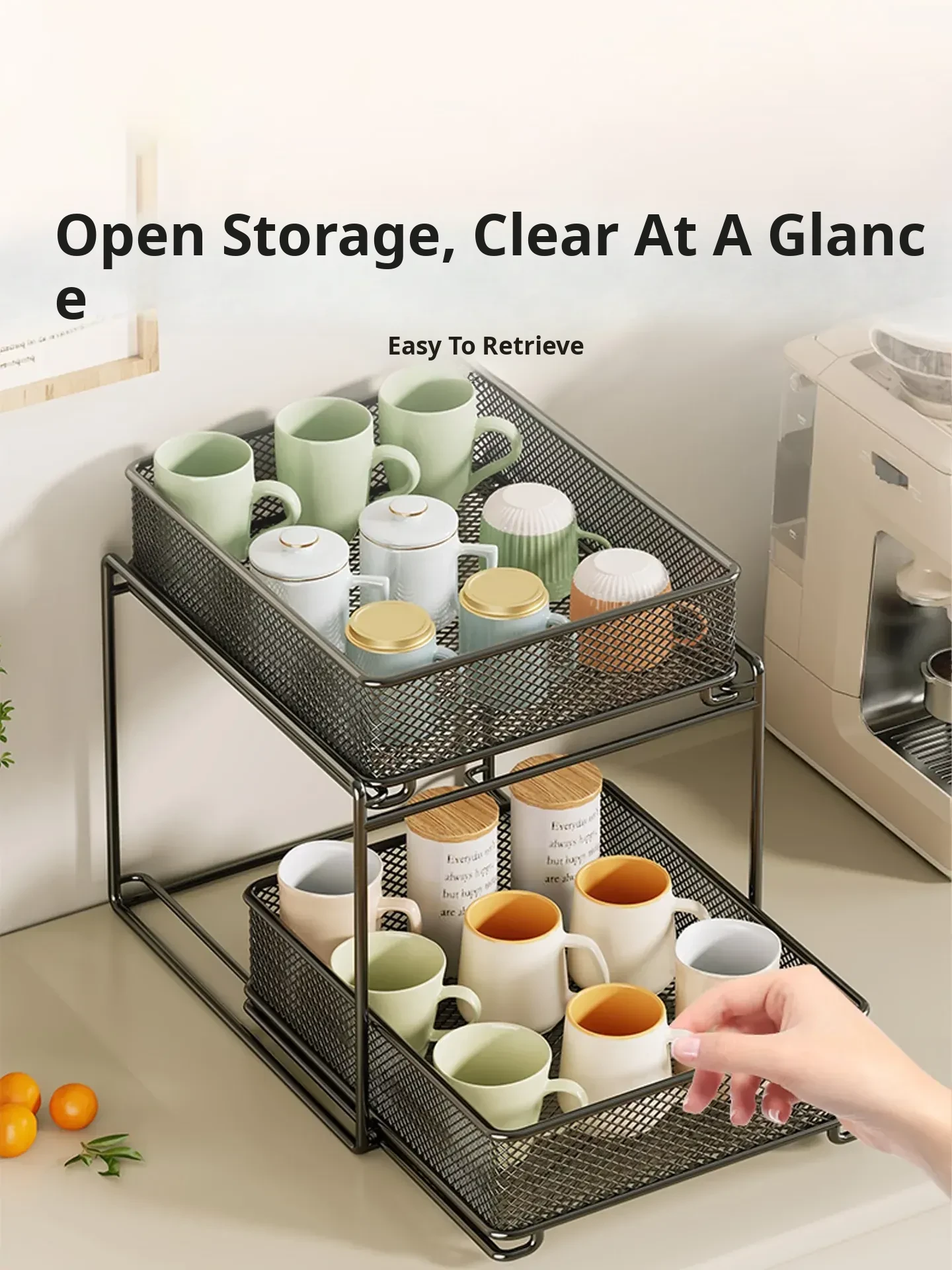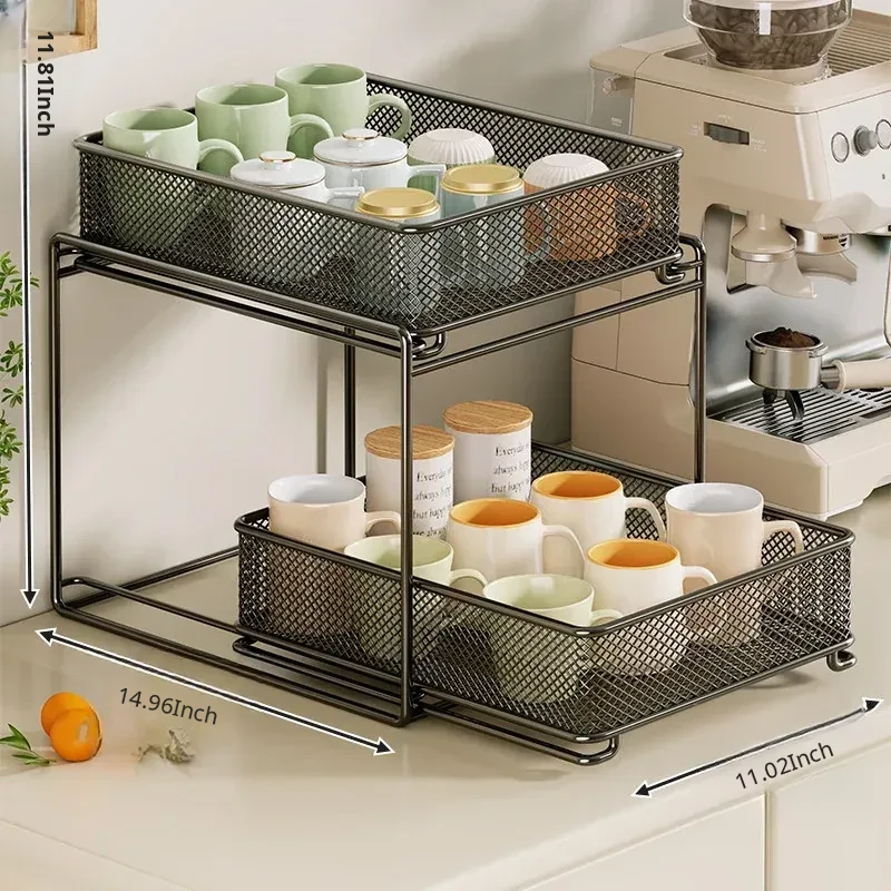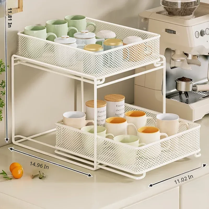 Double-Layer Draining Tray Rack for Kitchen Counter - Stylish Storage Organizer for Glasses, Teacups, Coffee Mugs, and Water Cups - Keep Your Kitchen Tidy and Elegant!