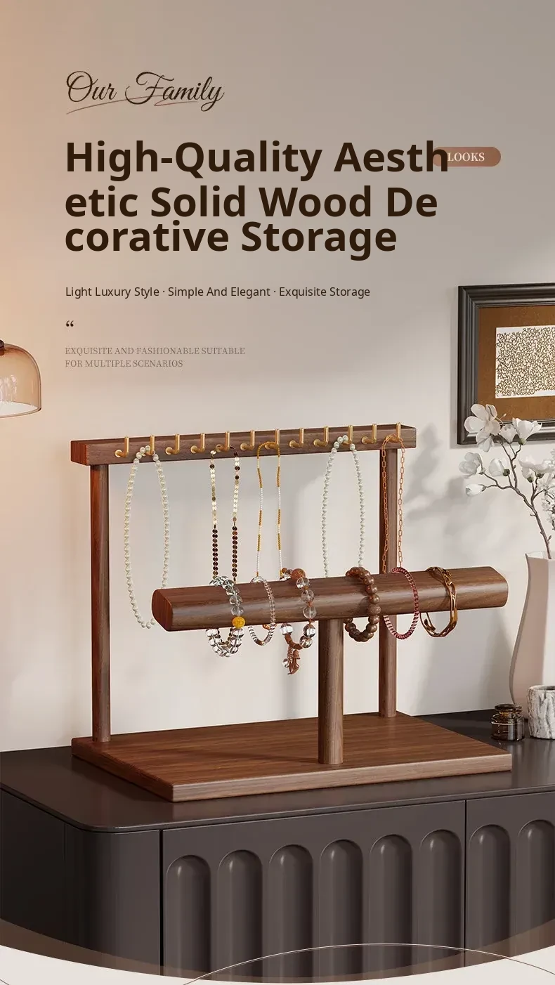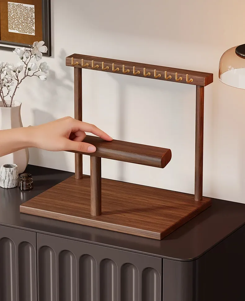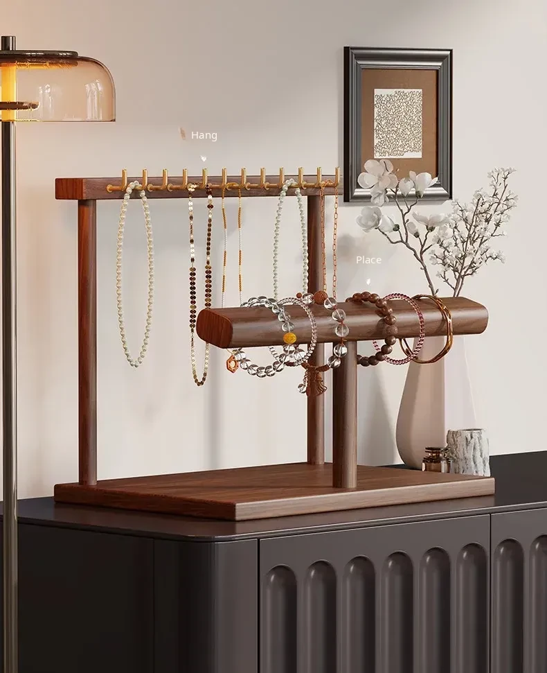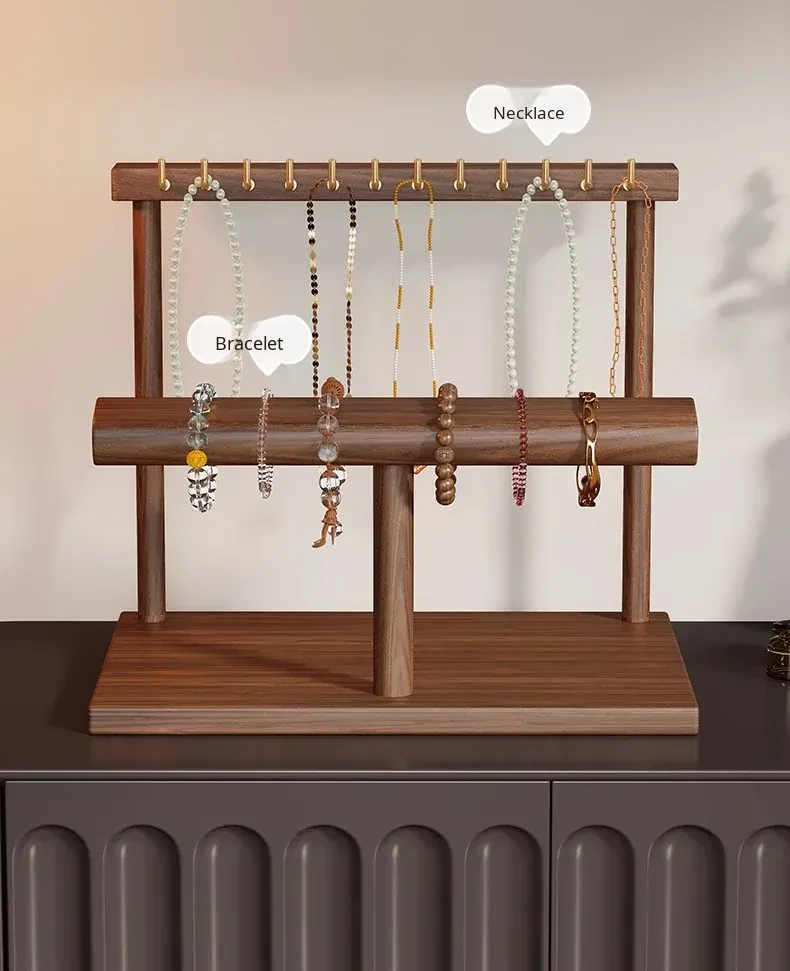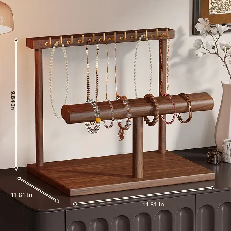 Elegant Jewelry Display Rack - Stylish Desktop Tray for Living Room, Featuring Multiple Hooks for Gold Necklaces, Bracelets, and Charm Accessories. Perfect for Showcasing Your Treasures!