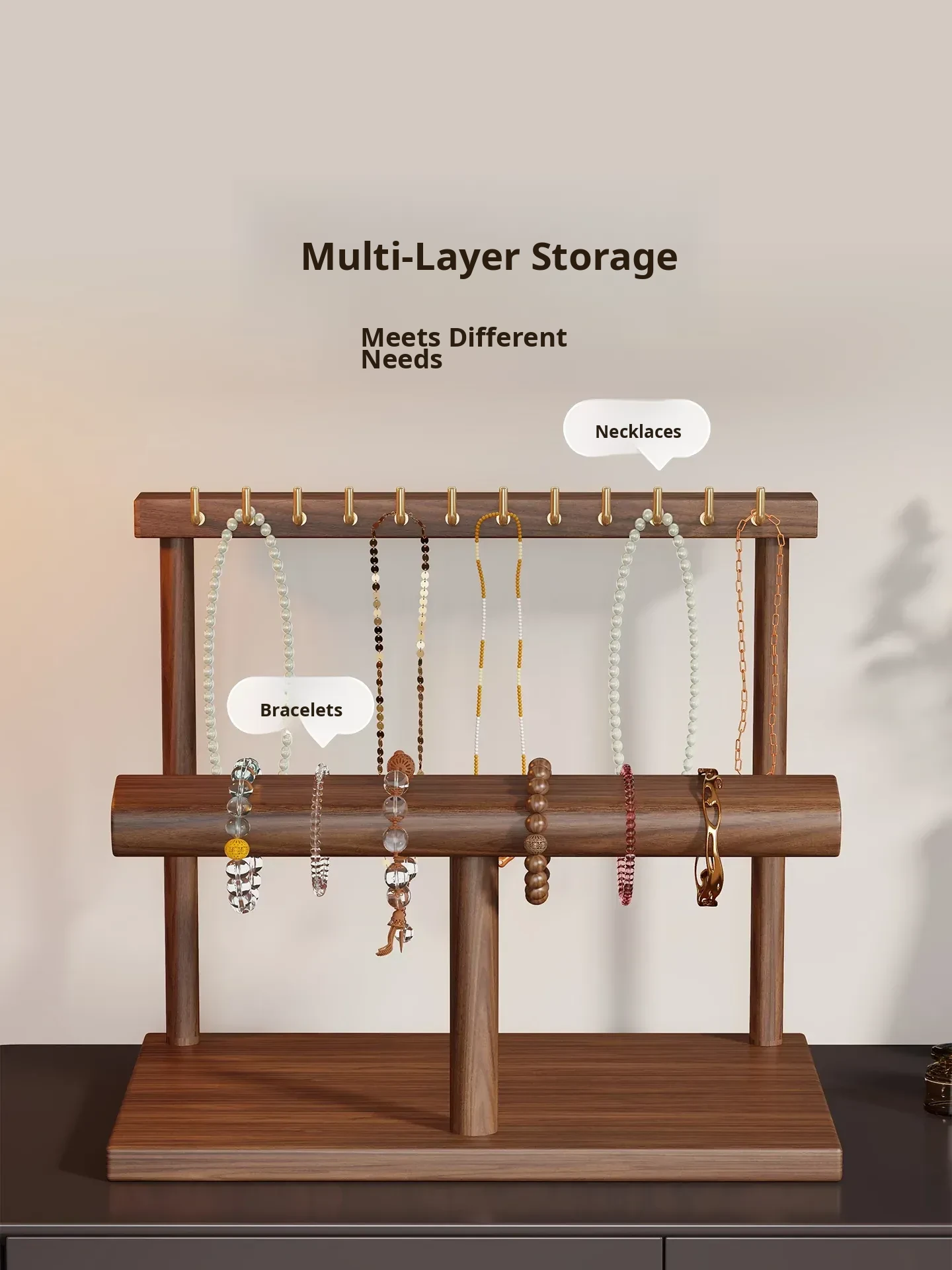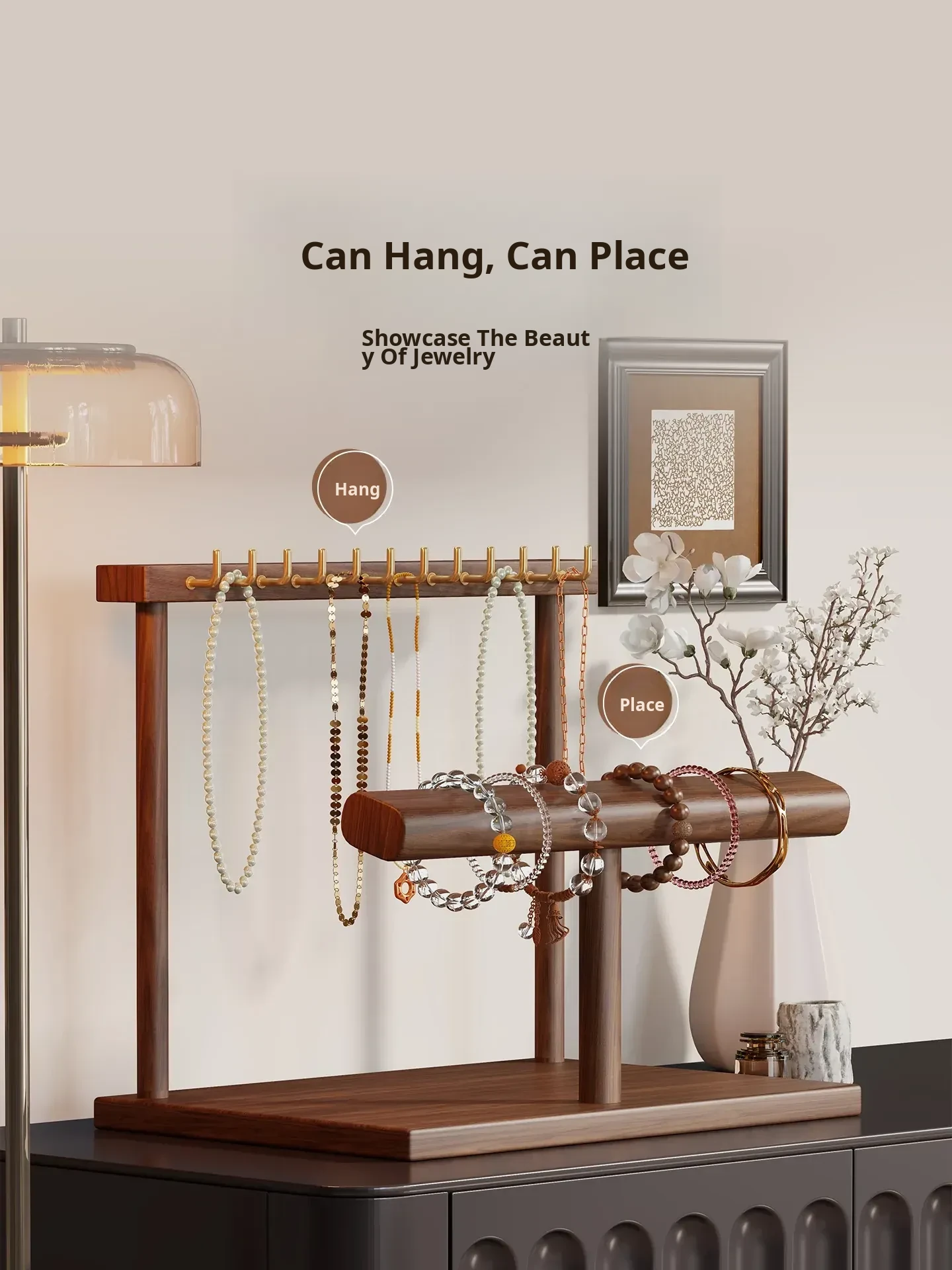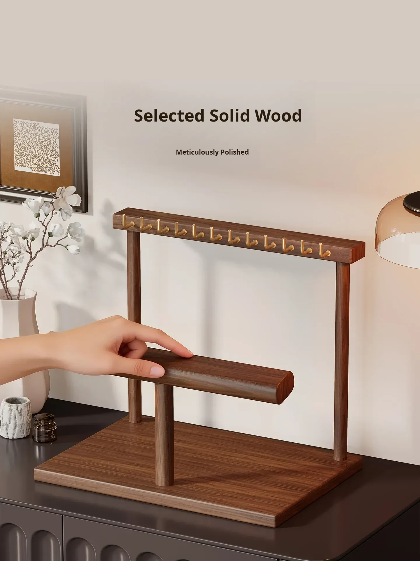 Elegant Jewelry Display Rack - Stylish Desktop Tray for Living Room, Featuring Multiple Hooks for Gold Necklaces, Bracelets, and Charm Accessories. Perfect for Showcasing Your Treasures!