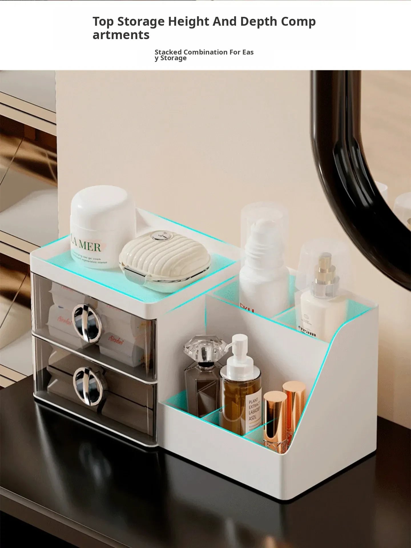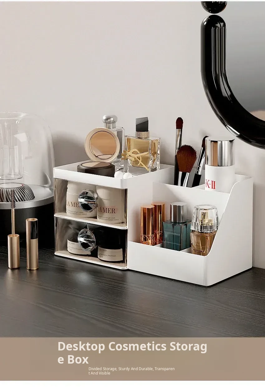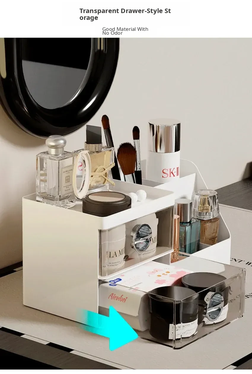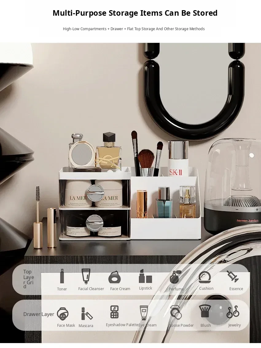 Elegant Makeup Organizer Box for Students - Stylish Desktop Storage Solution for Skincare and Cosmetics, Multi-Tiered Vanity Organizer for Your Dorm Room