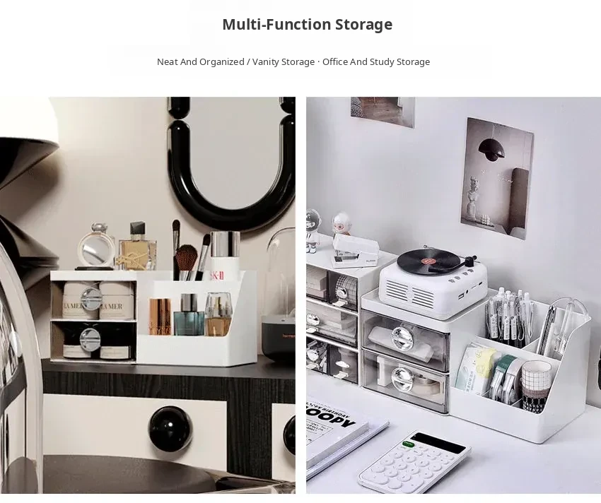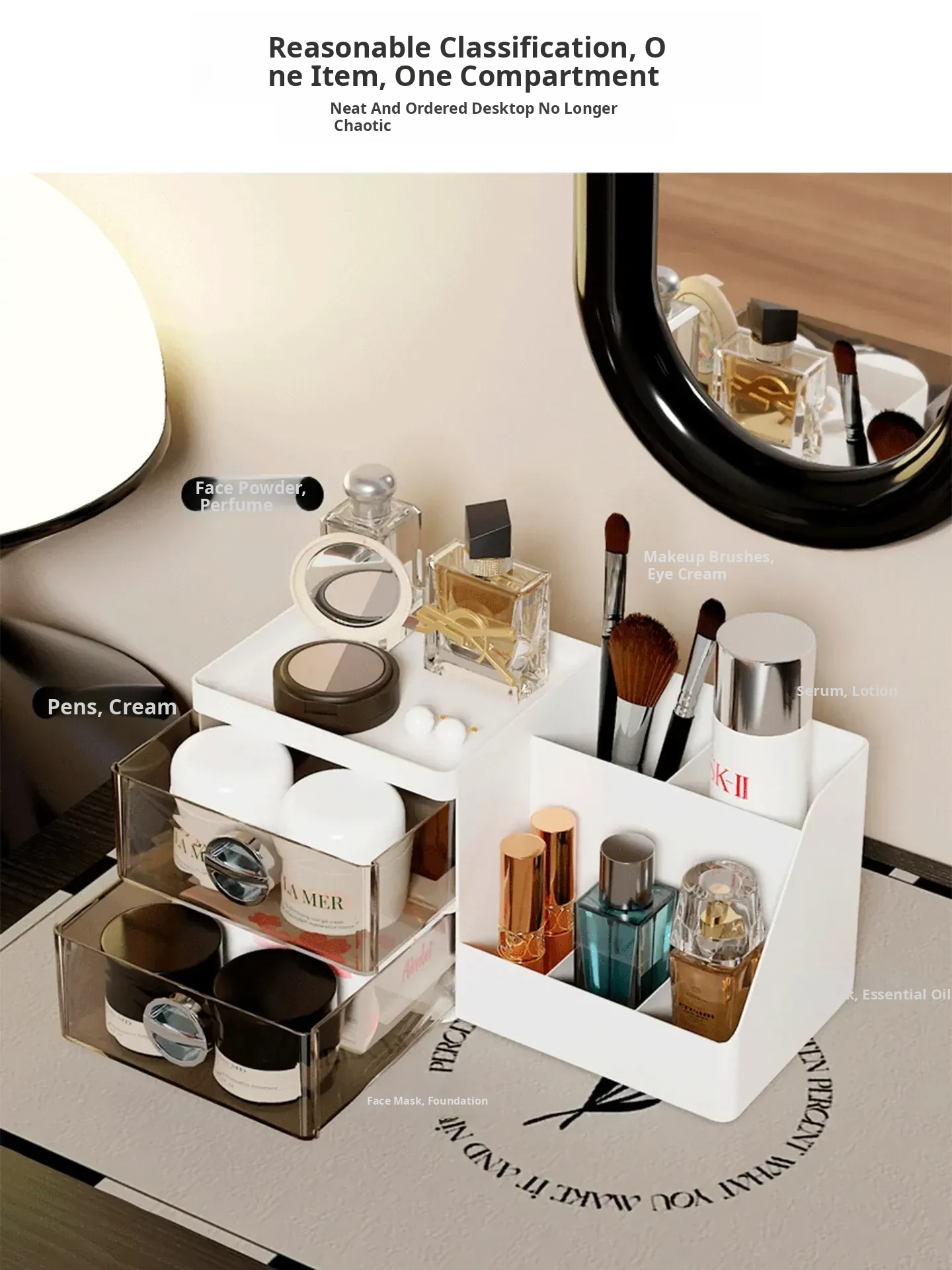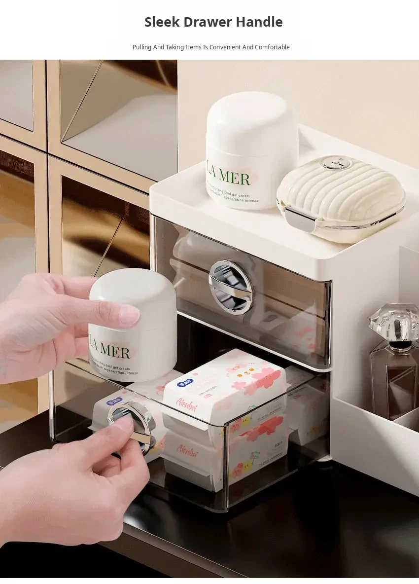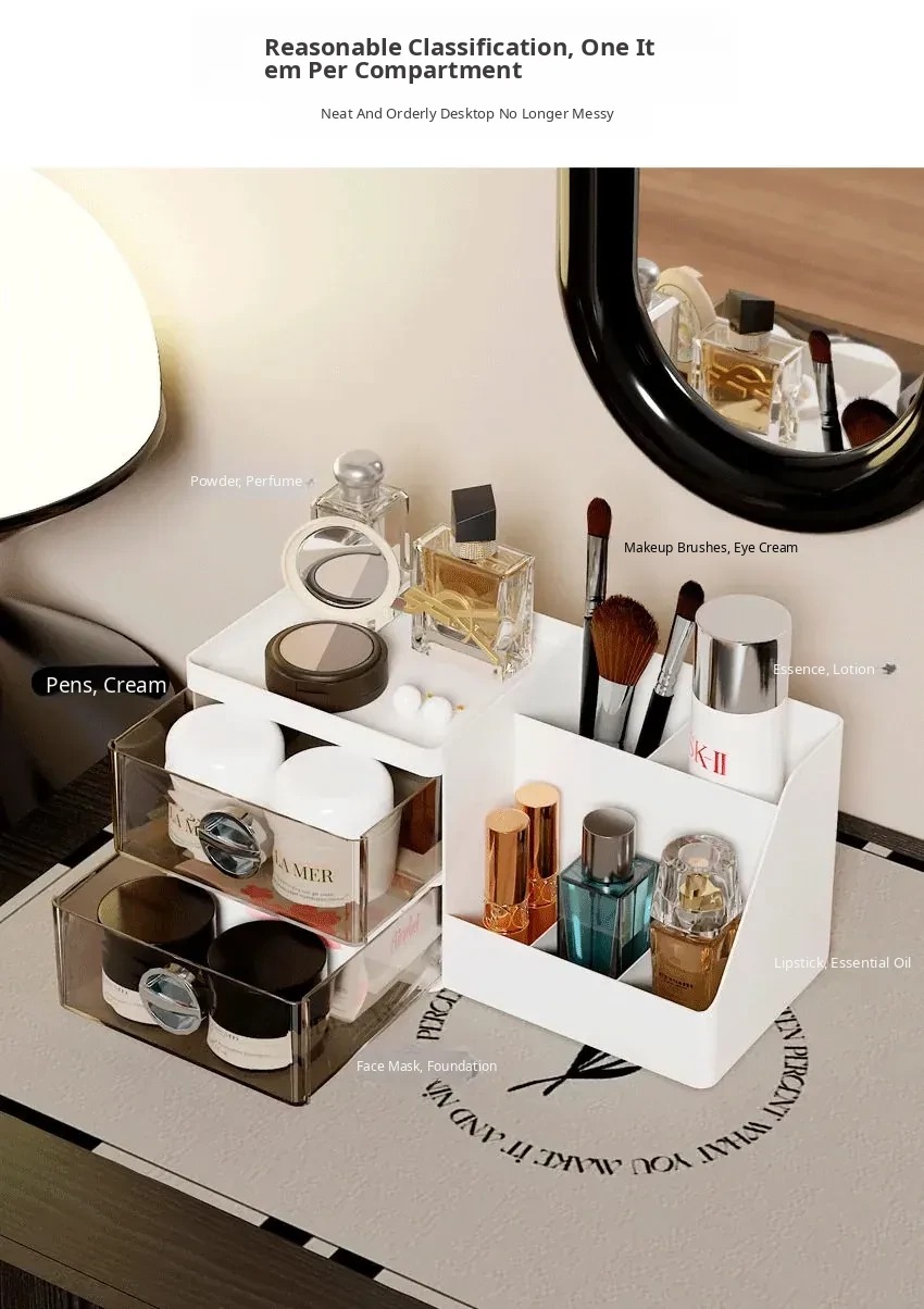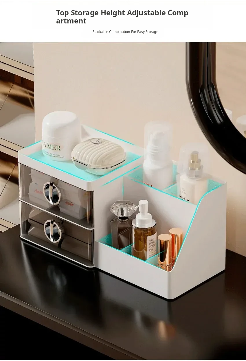 Elegant Makeup Organizer Box for Students - Stylish Desktop Storage Solution for Skincare and Cosmetics, Multi-Tiered Vanity Organizer for Your Dorm Room