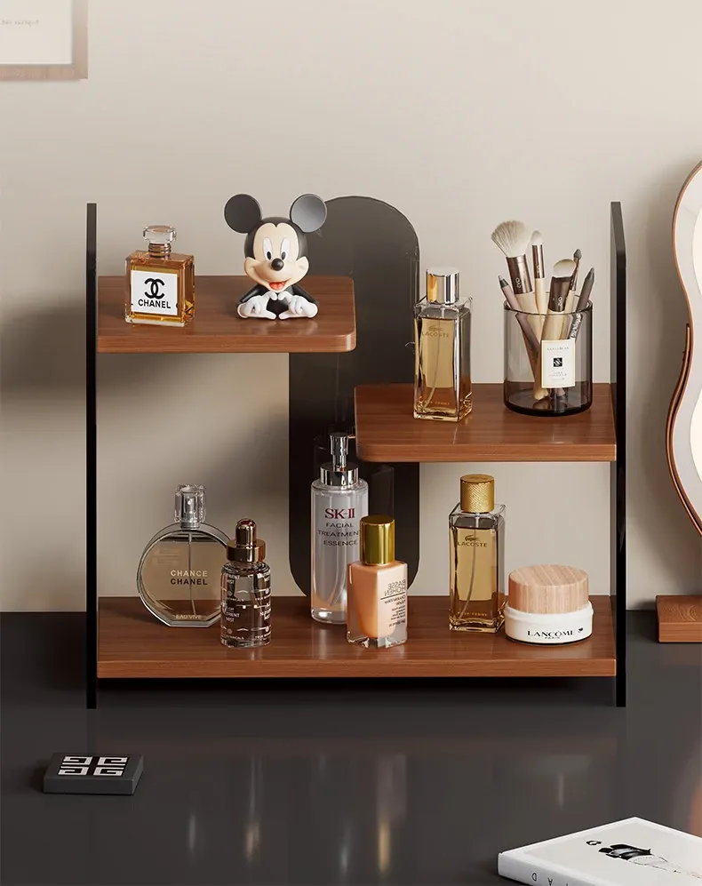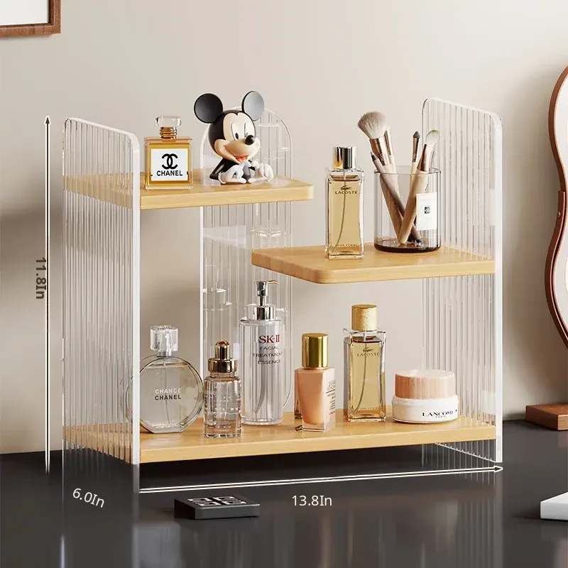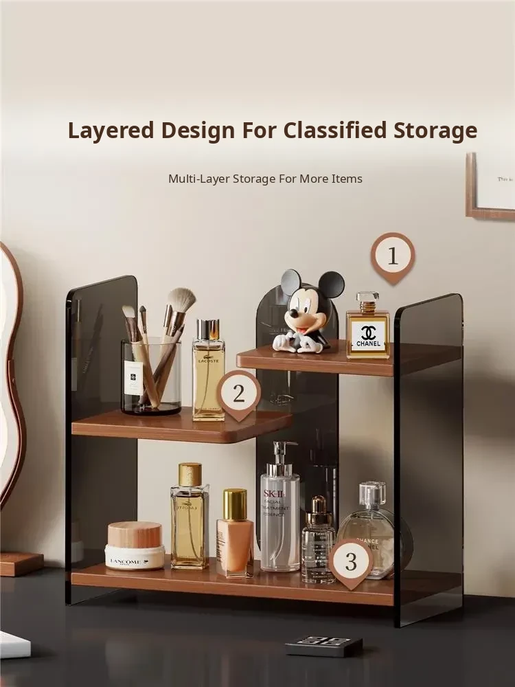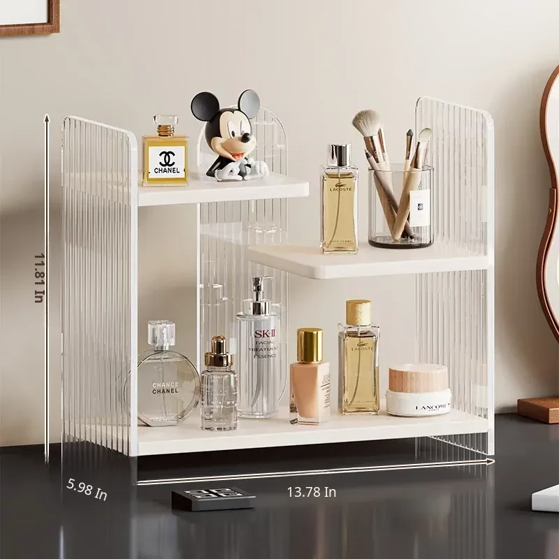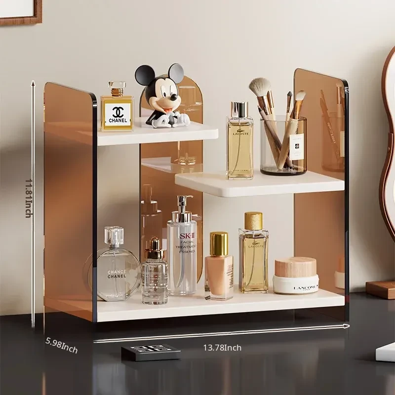 Elegant Multi-Layer Desktop Cosmetic Organizer - Stylish Skincare Storage Rack with Cup Holder for Bathroom Vanity