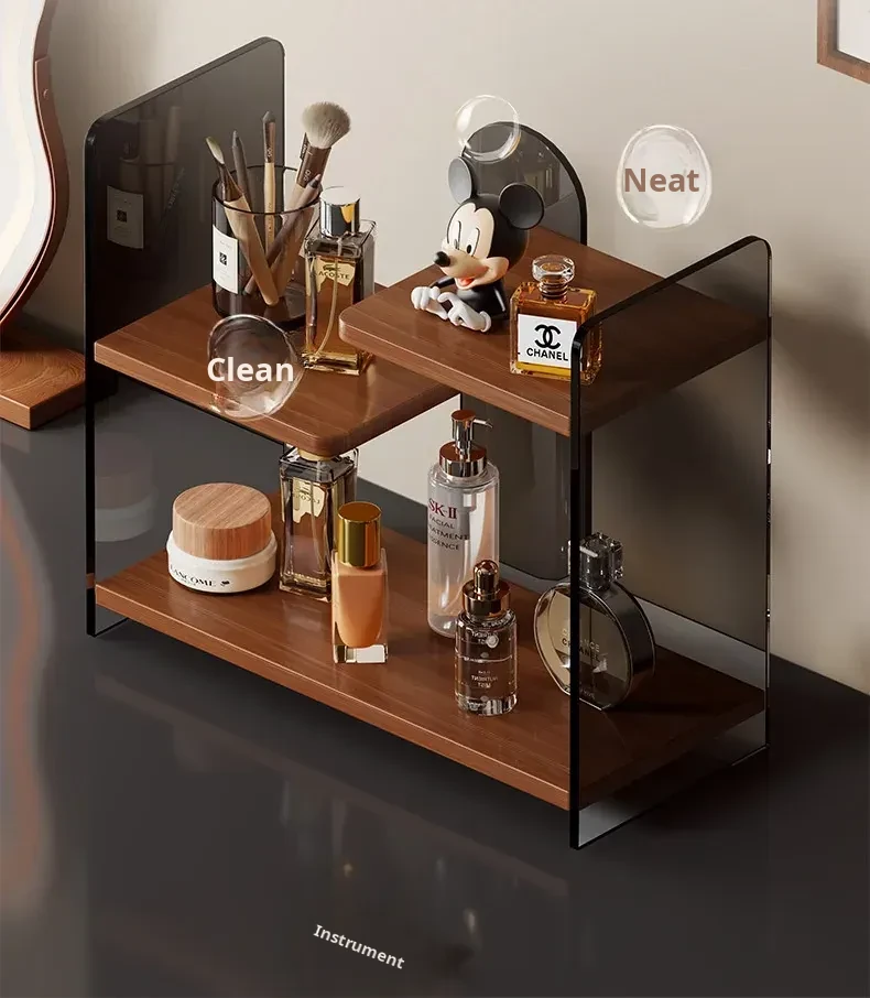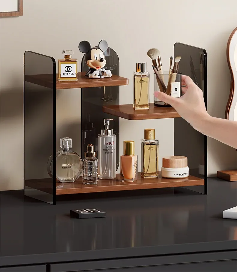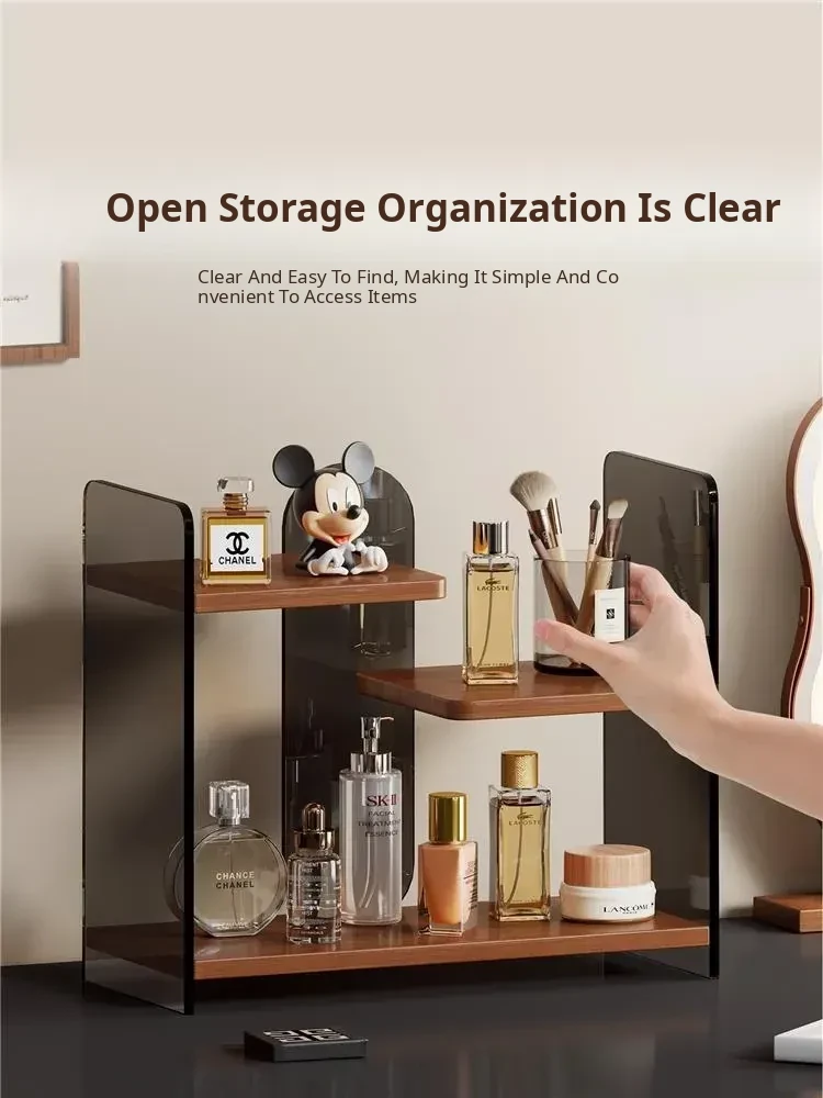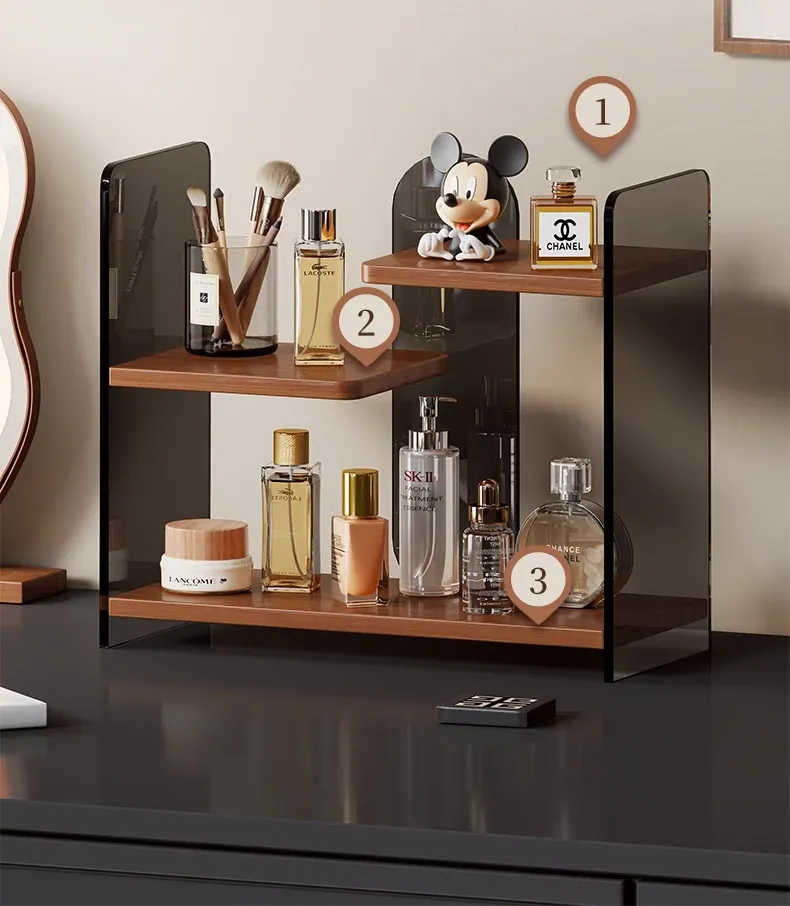 Elegant Multi-Layer Desktop Cosmetic Organizer - Stylish Skincare Storage Rack with Cup Holder for Bathroom Vanity