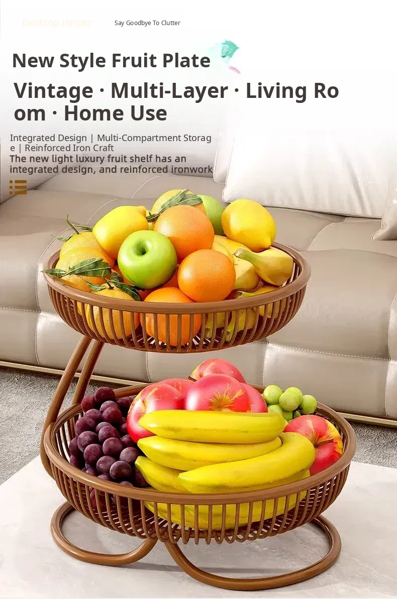 Elegant Multi-Tier Fruit Basket for Living Room - High-End Tabletop Display for Snacks, Dried Fruits, and Desserts - Perfect for Tea Tables and Home Décor