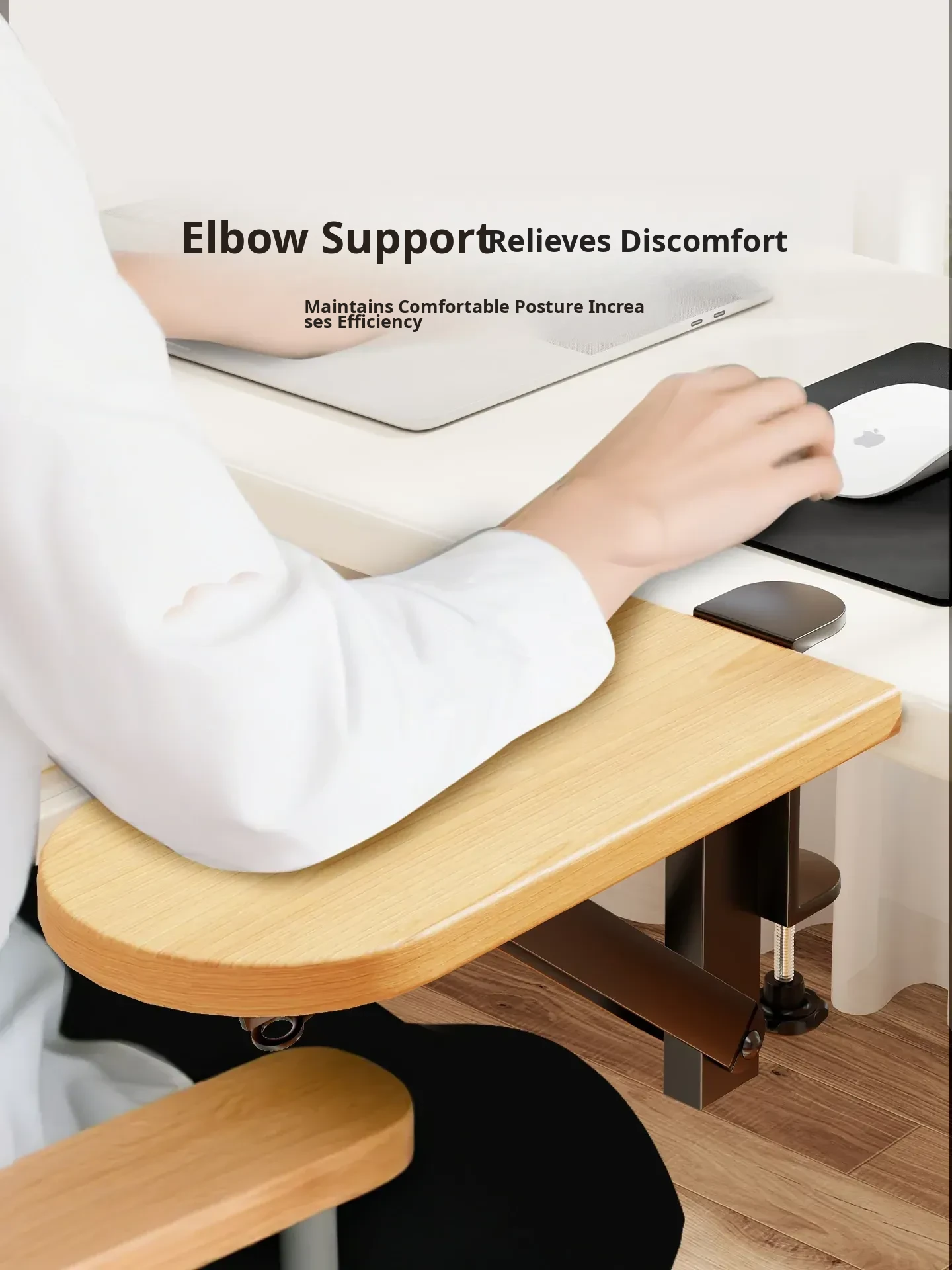 Ergonomic Computer Arm Rest with Elbow Support – Desk Extension Mouse Wrist Pad and Arm Support Bracket for Comfortable Office Setup