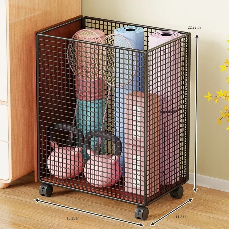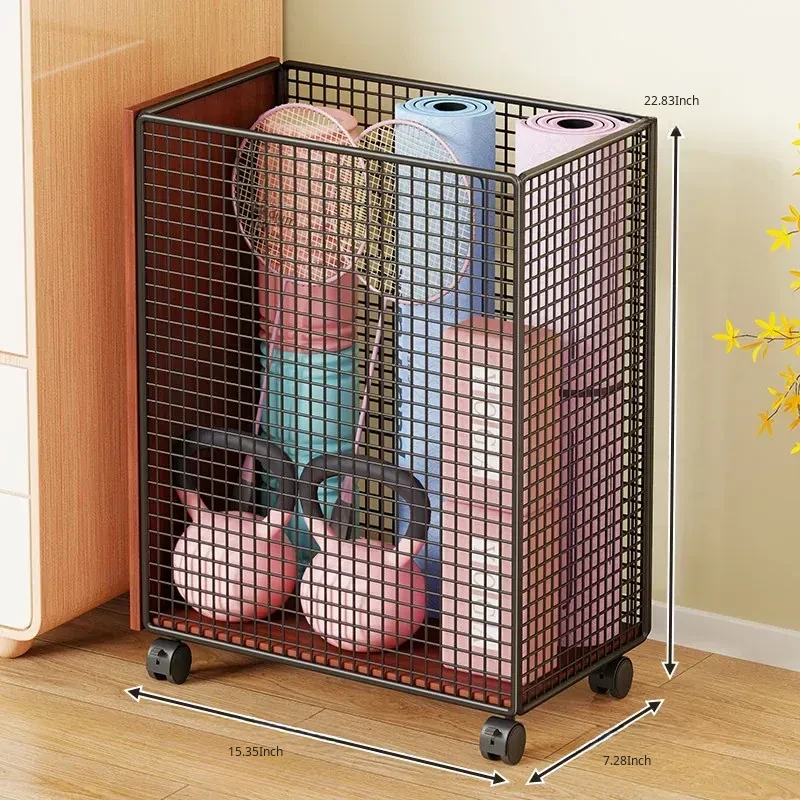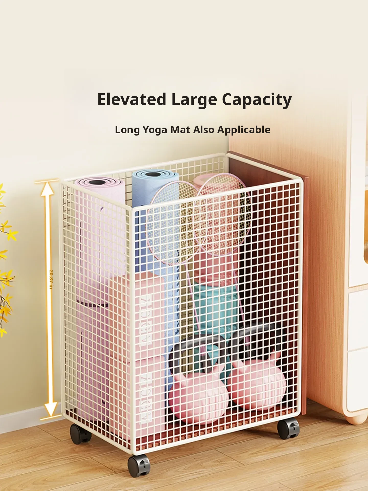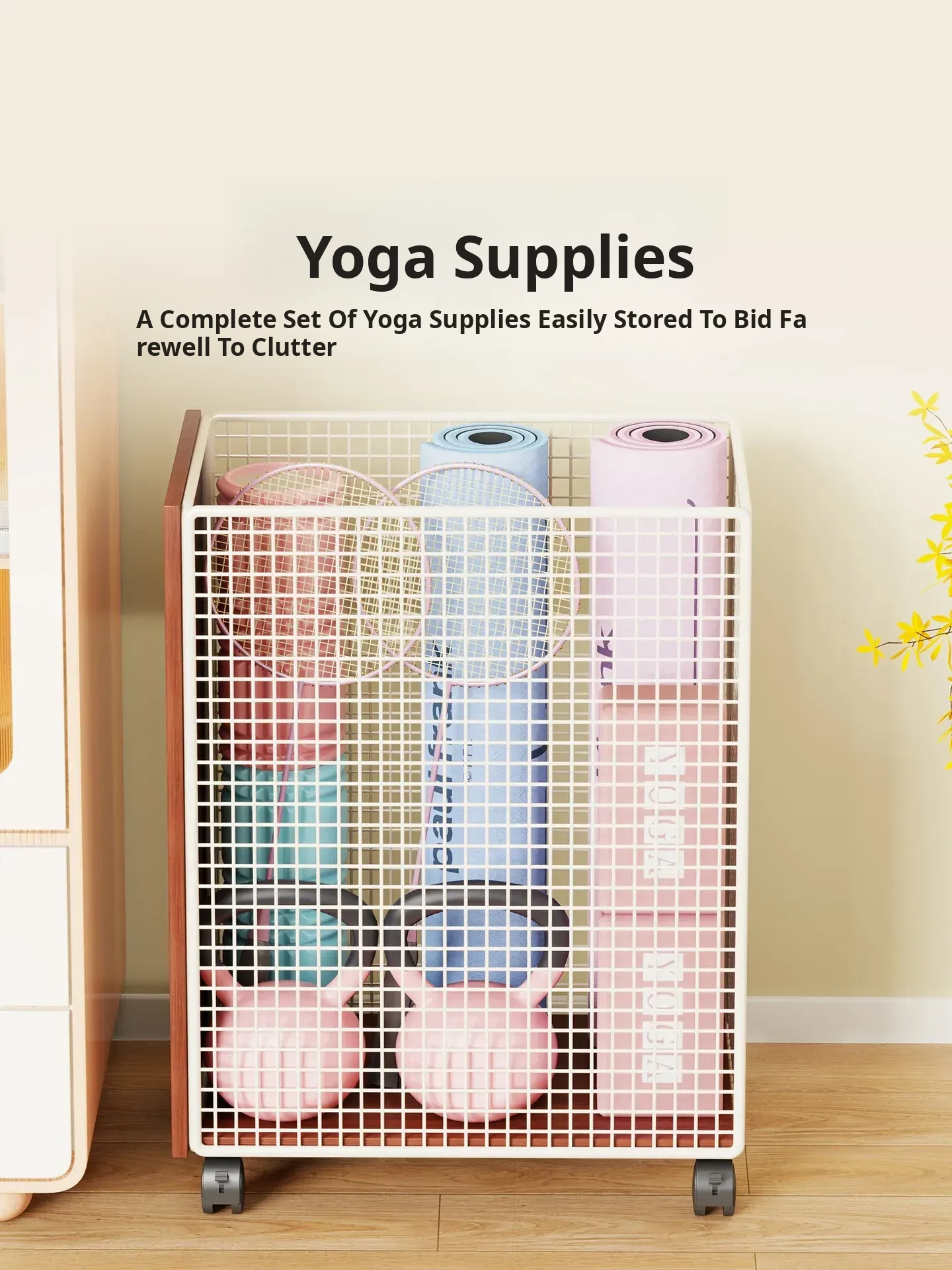 Home Fitness Equipment Storage Cart with Wheels - Large Capacity Yoga Mat Organizer and Sports Tool Rack for Convenient and Tidy Workout Space