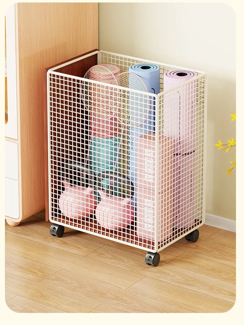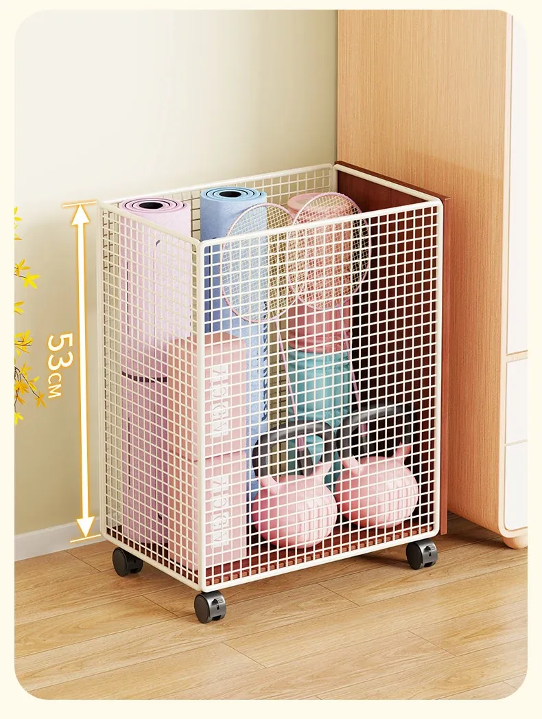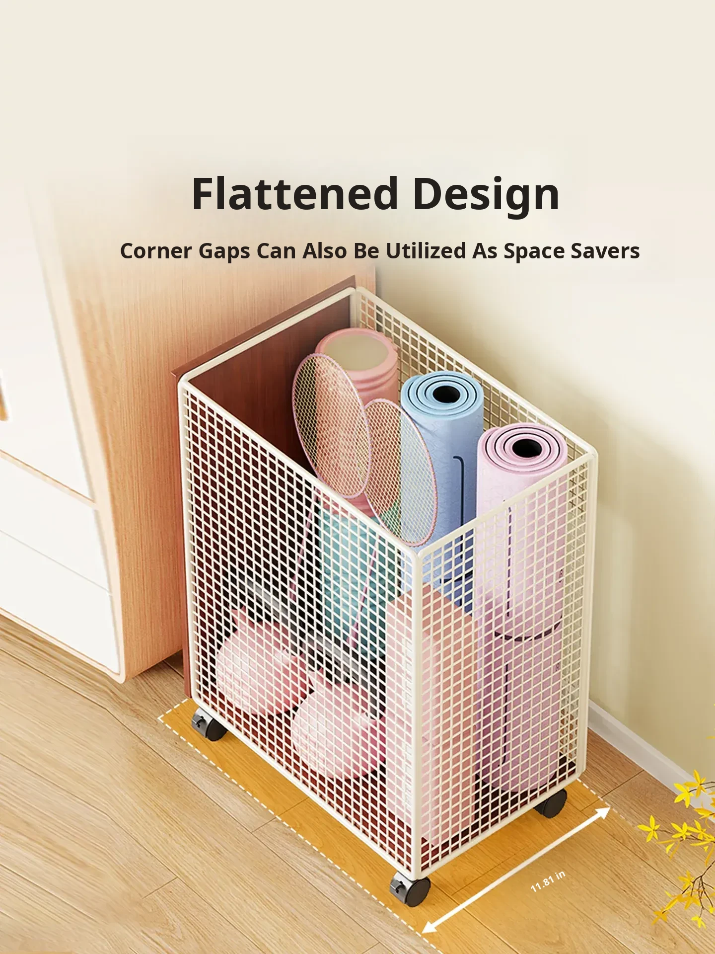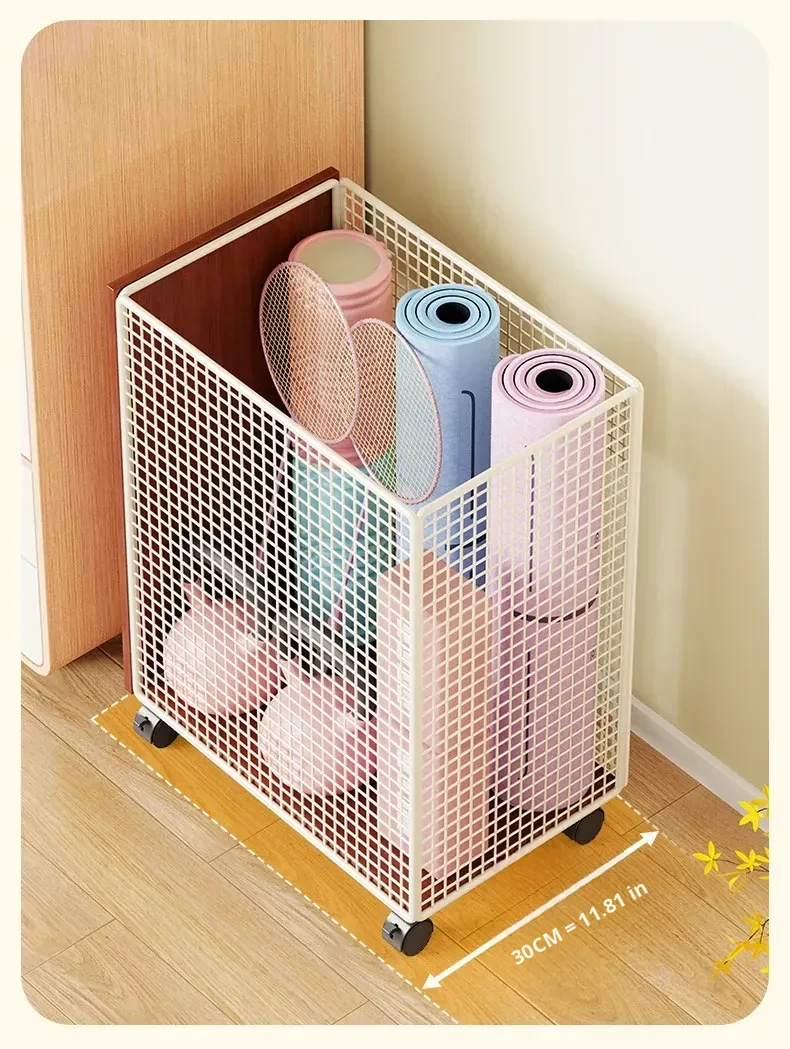 Home Fitness Equipment Storage Cart with Wheels - Large Capacity Yoga Mat Organizer and Sports Tool Rack for Convenient and Tidy Workout Space
