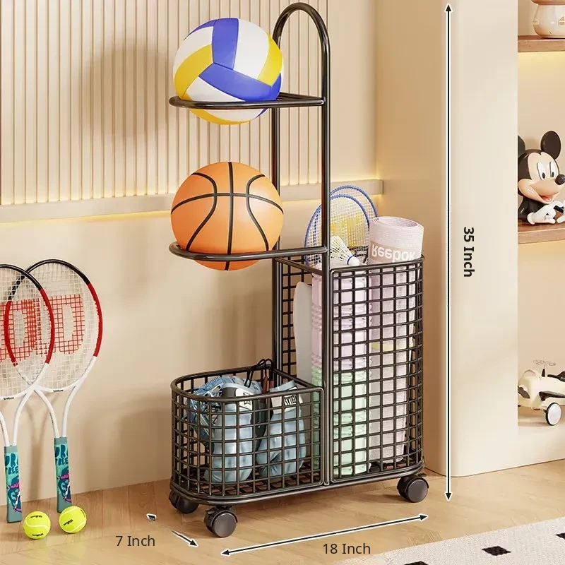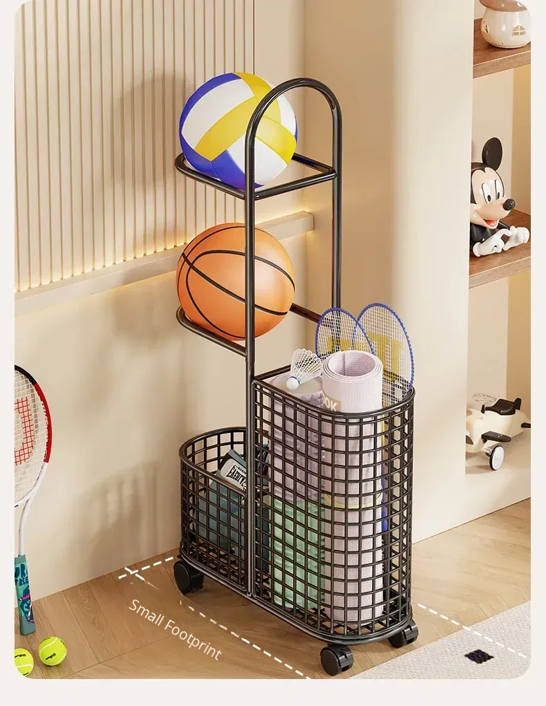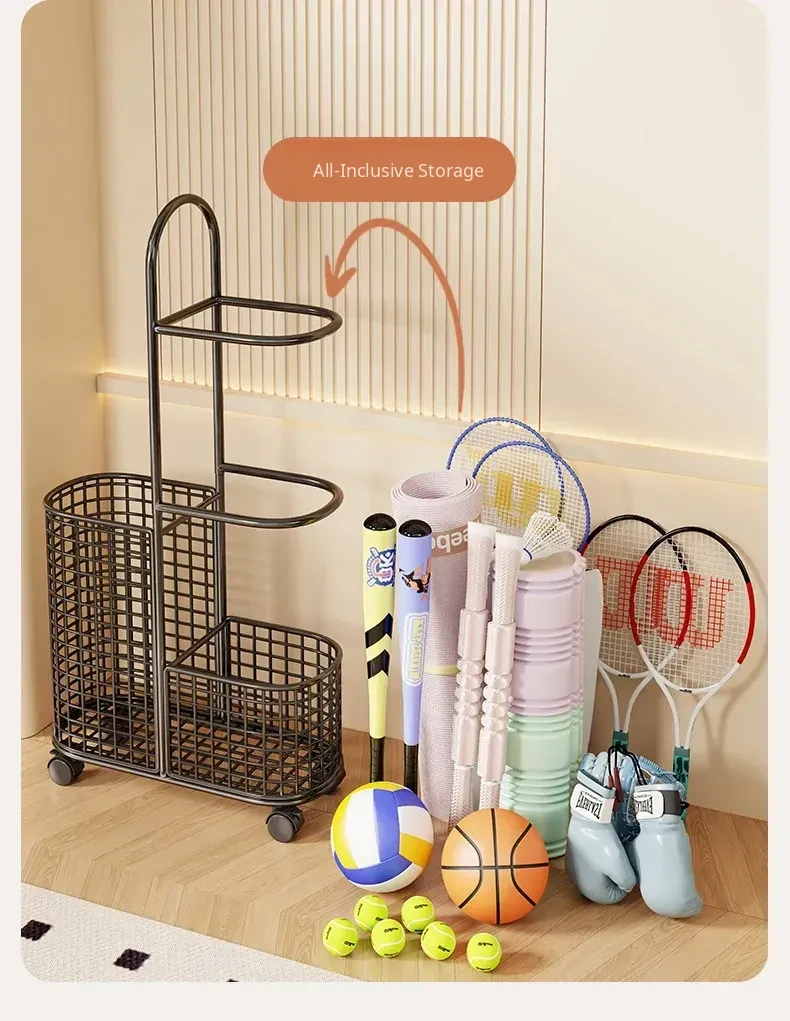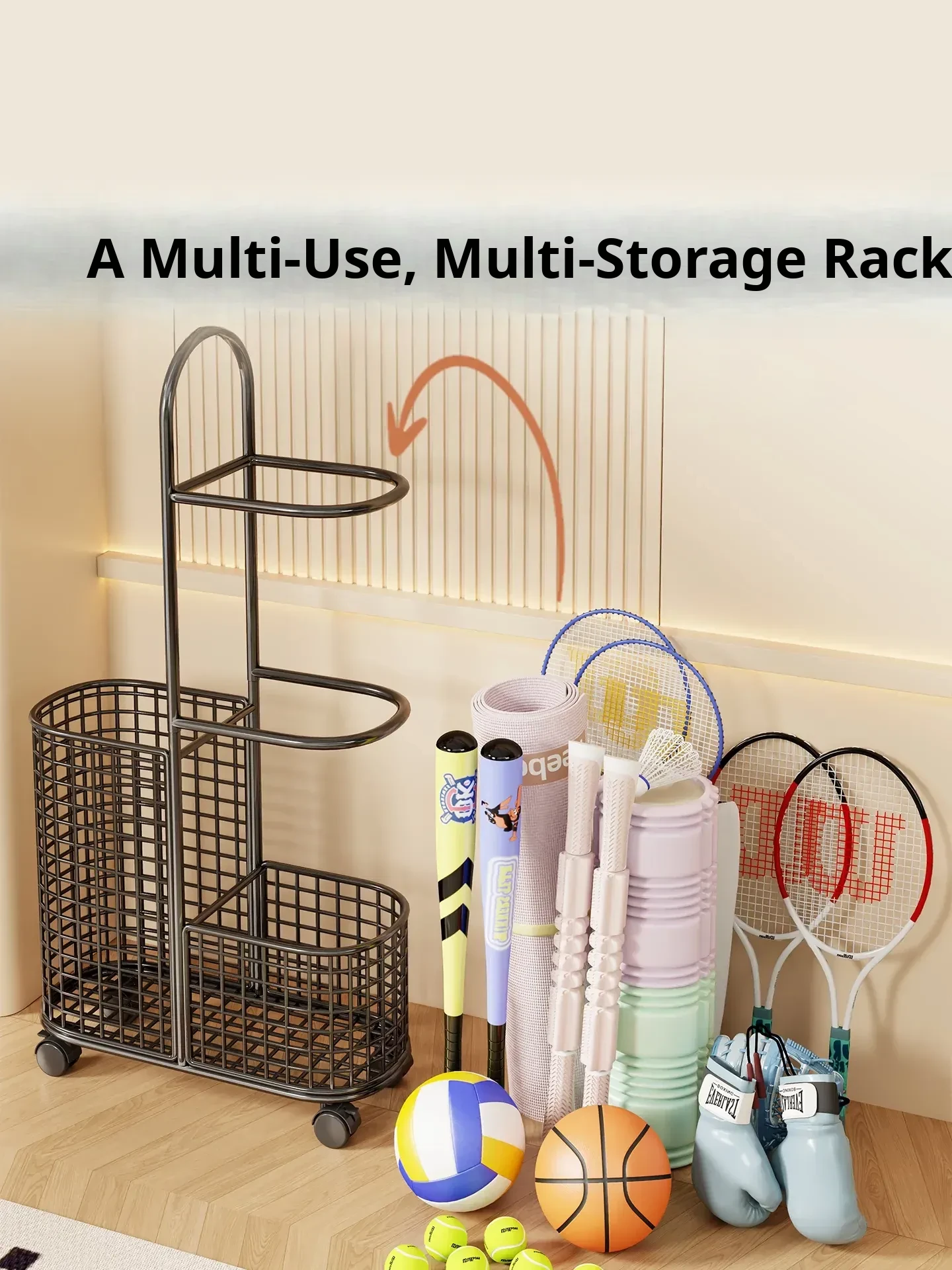 Large Capacity Basketball Storage Rack - Portable Sports Equipment Organizer for Home, Perfect for Yoga Mats and Fitness Gear