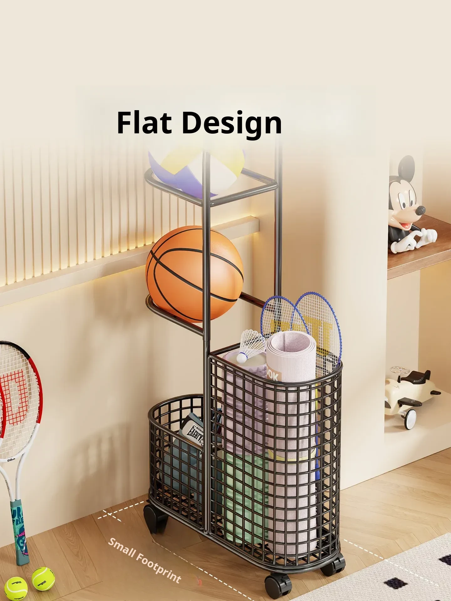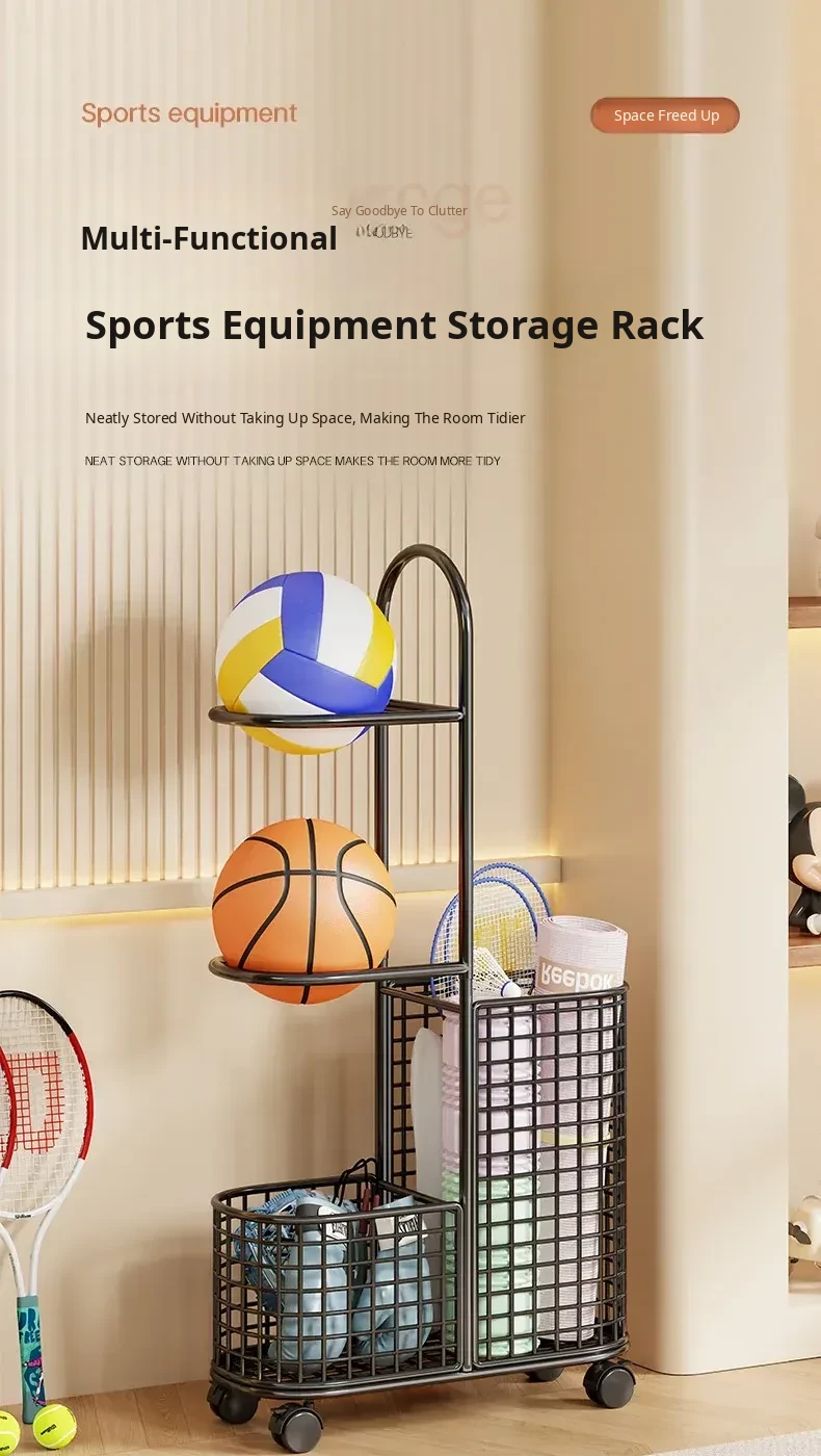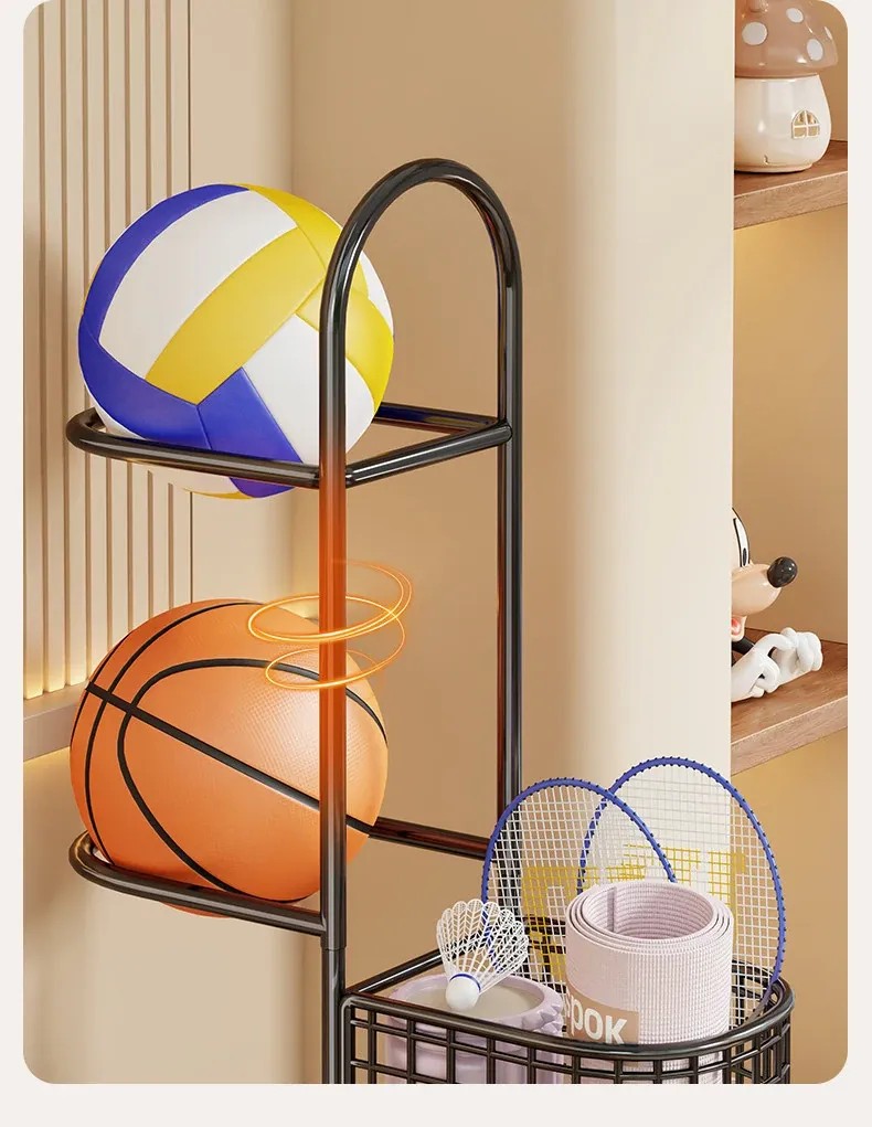 Large Capacity Basketball Storage Rack - Portable Sports Equipment Organizer for Home, Perfect for Yoga Mats and Fitness Gear