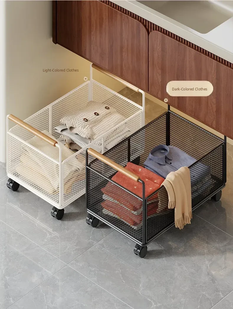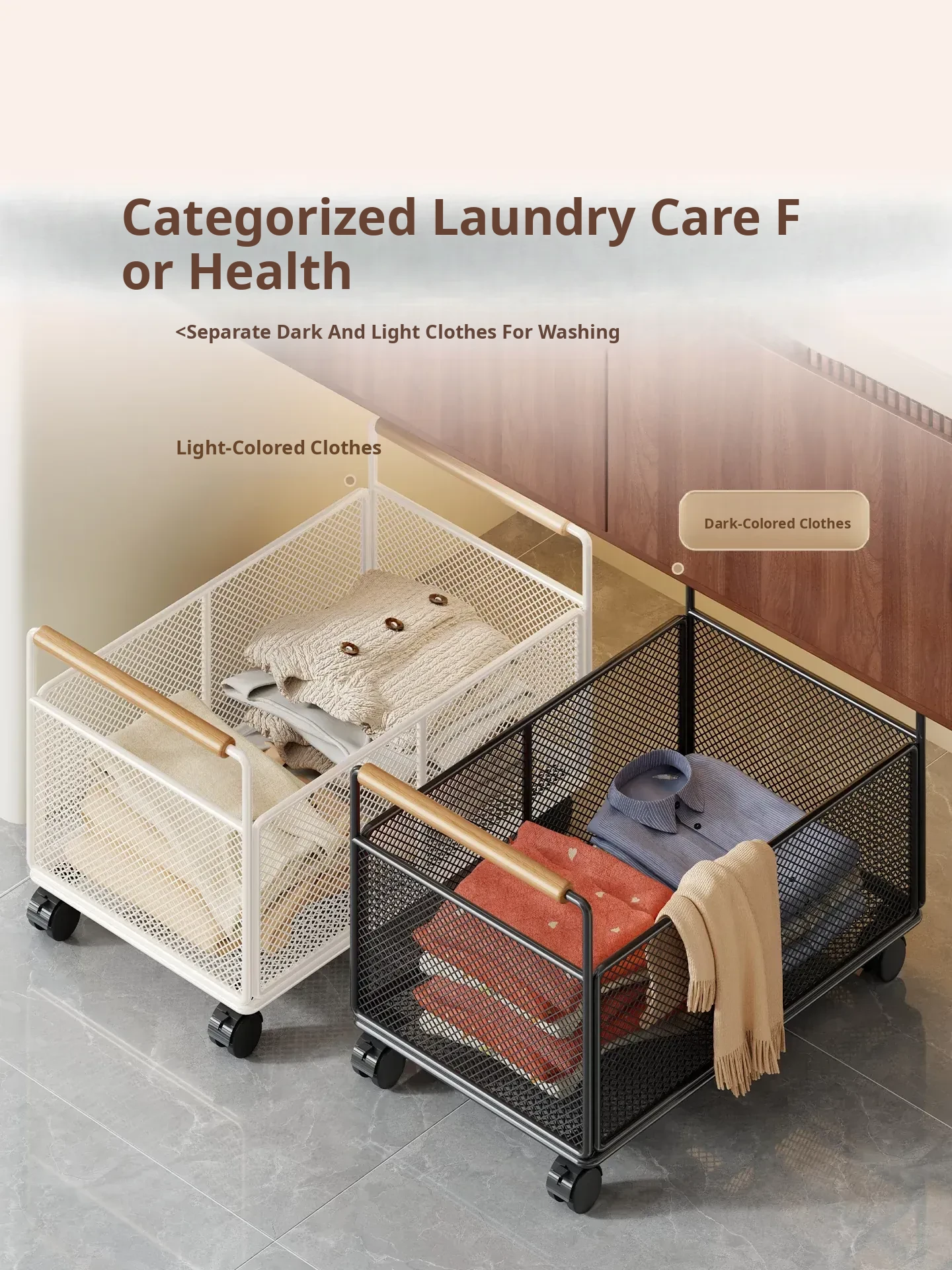 Large Capacity Rolling Laundry Basket – Stylish Bathroom Cabinet Laundry Hamper with Wheels for Easy Mobility – Perfect for Dirty Clothes Storage in Your Bathroom or Laundry Room!