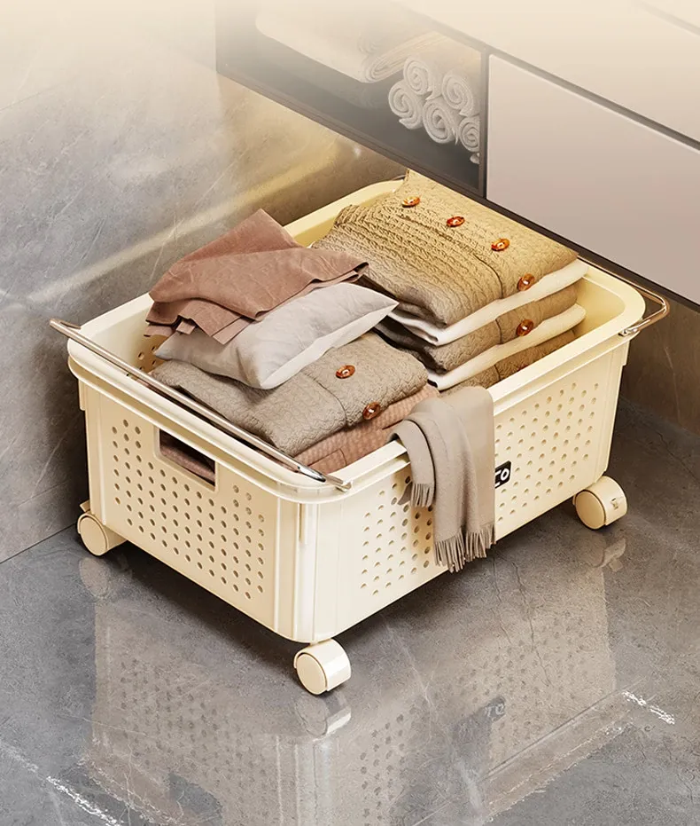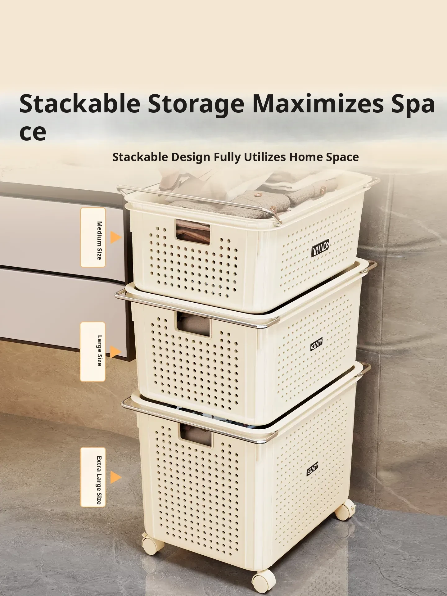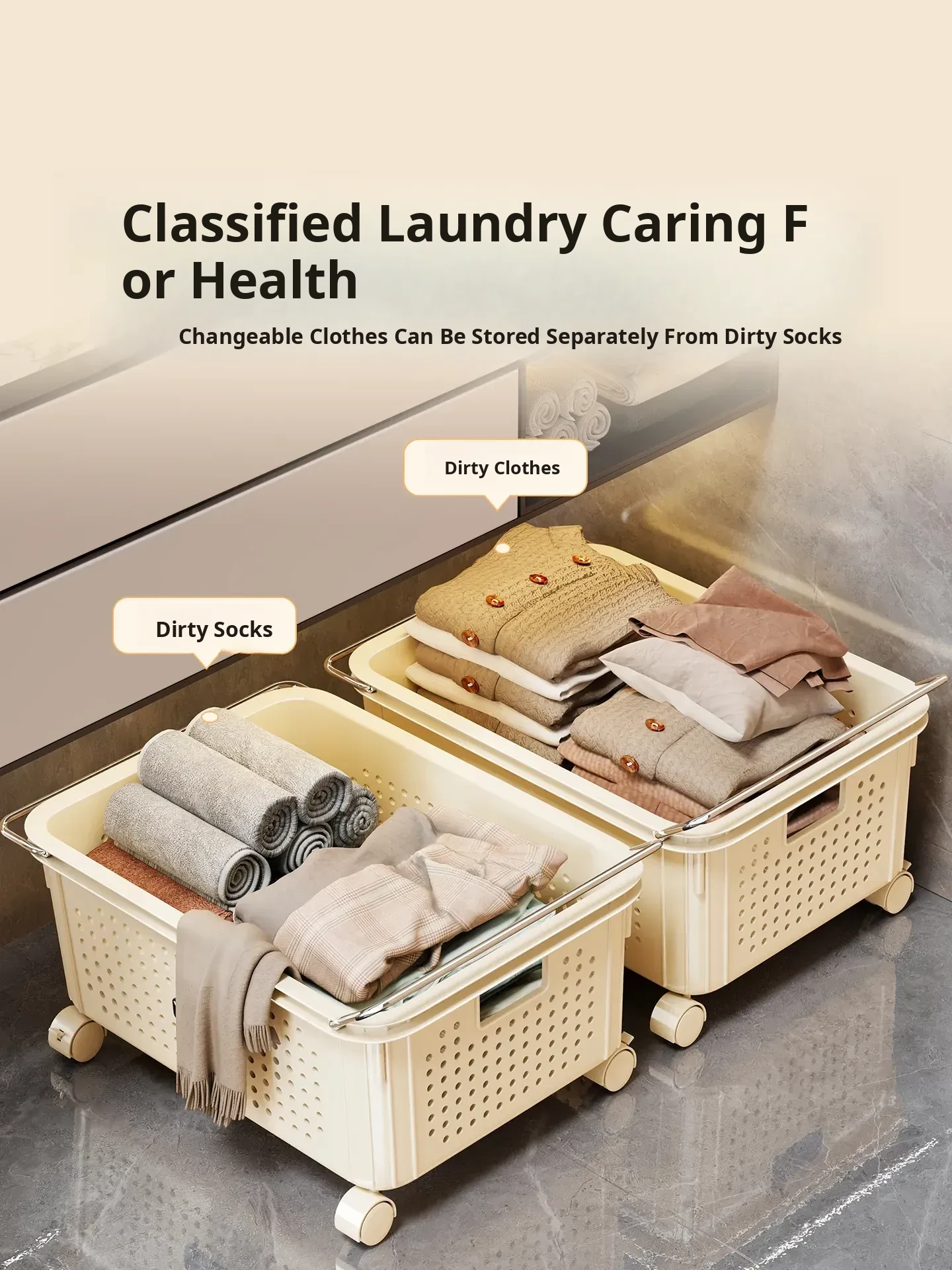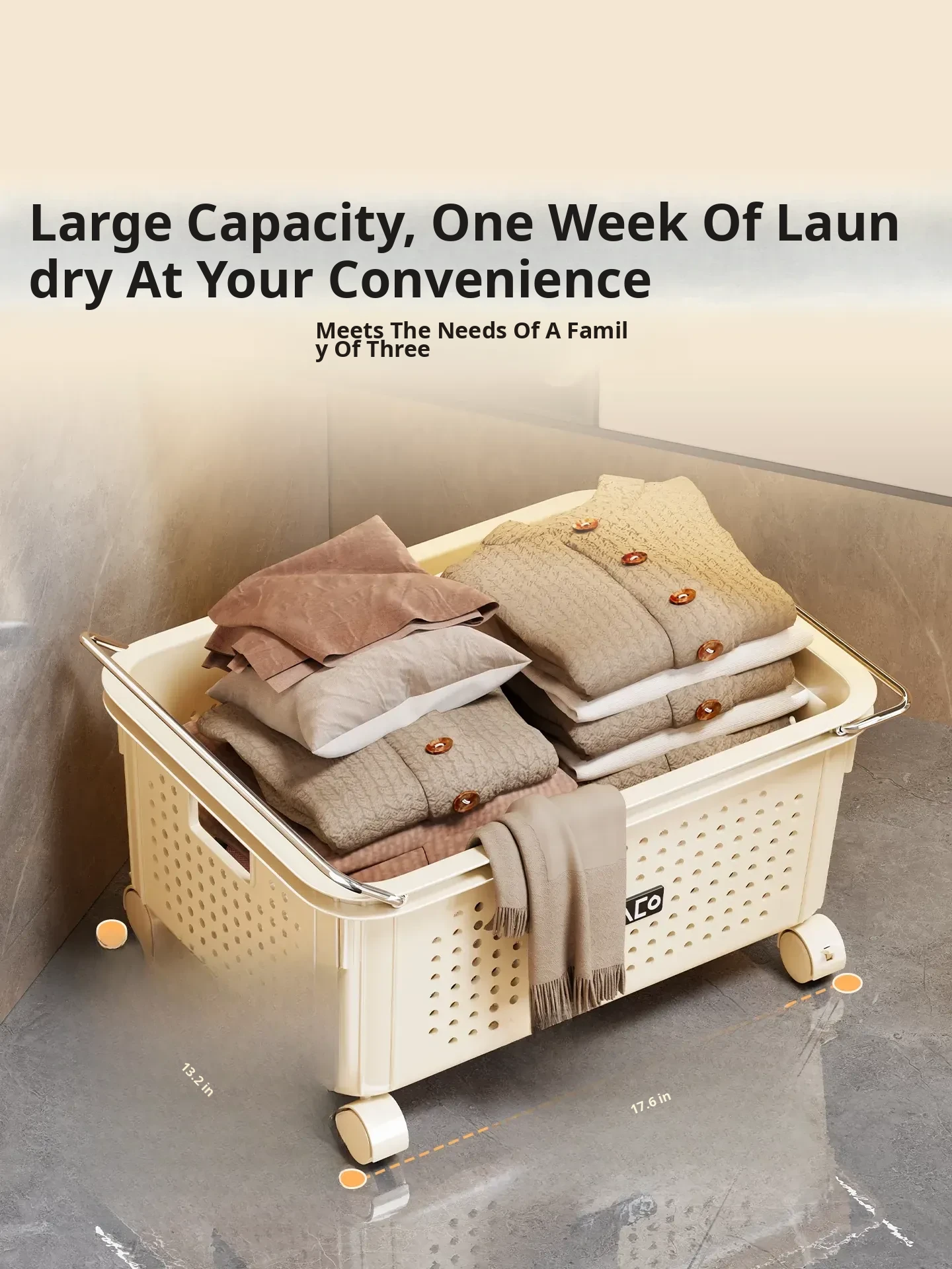 Large Rolling Laundry Basket with Wheels - Space-Saving Bathroom Hamper for Easy Mobility, Perfect for Clothes Storage and Organization in Your Home