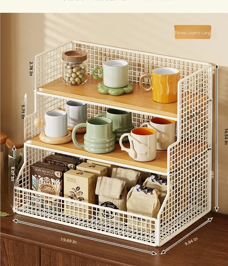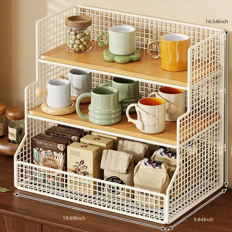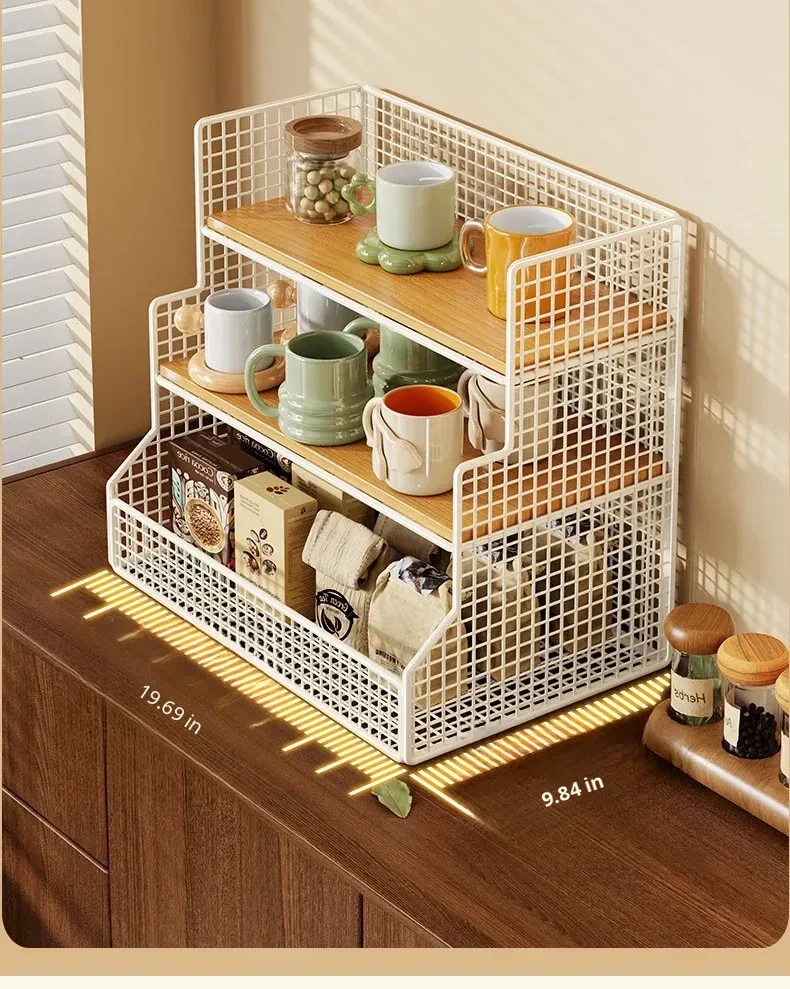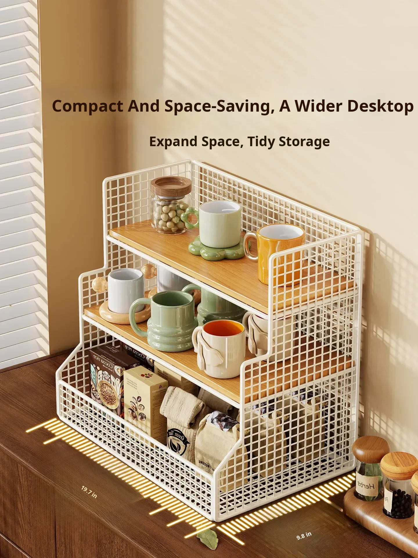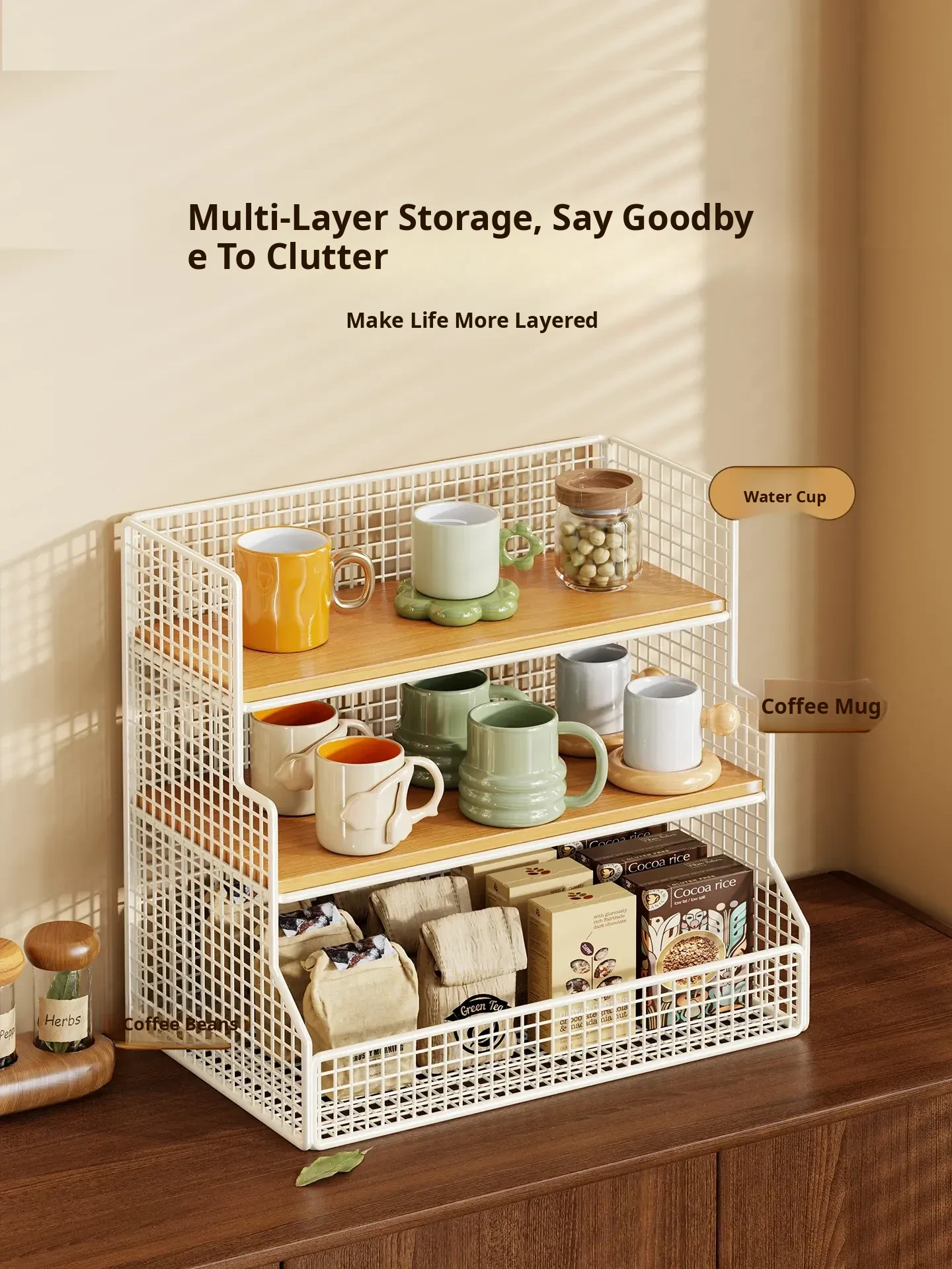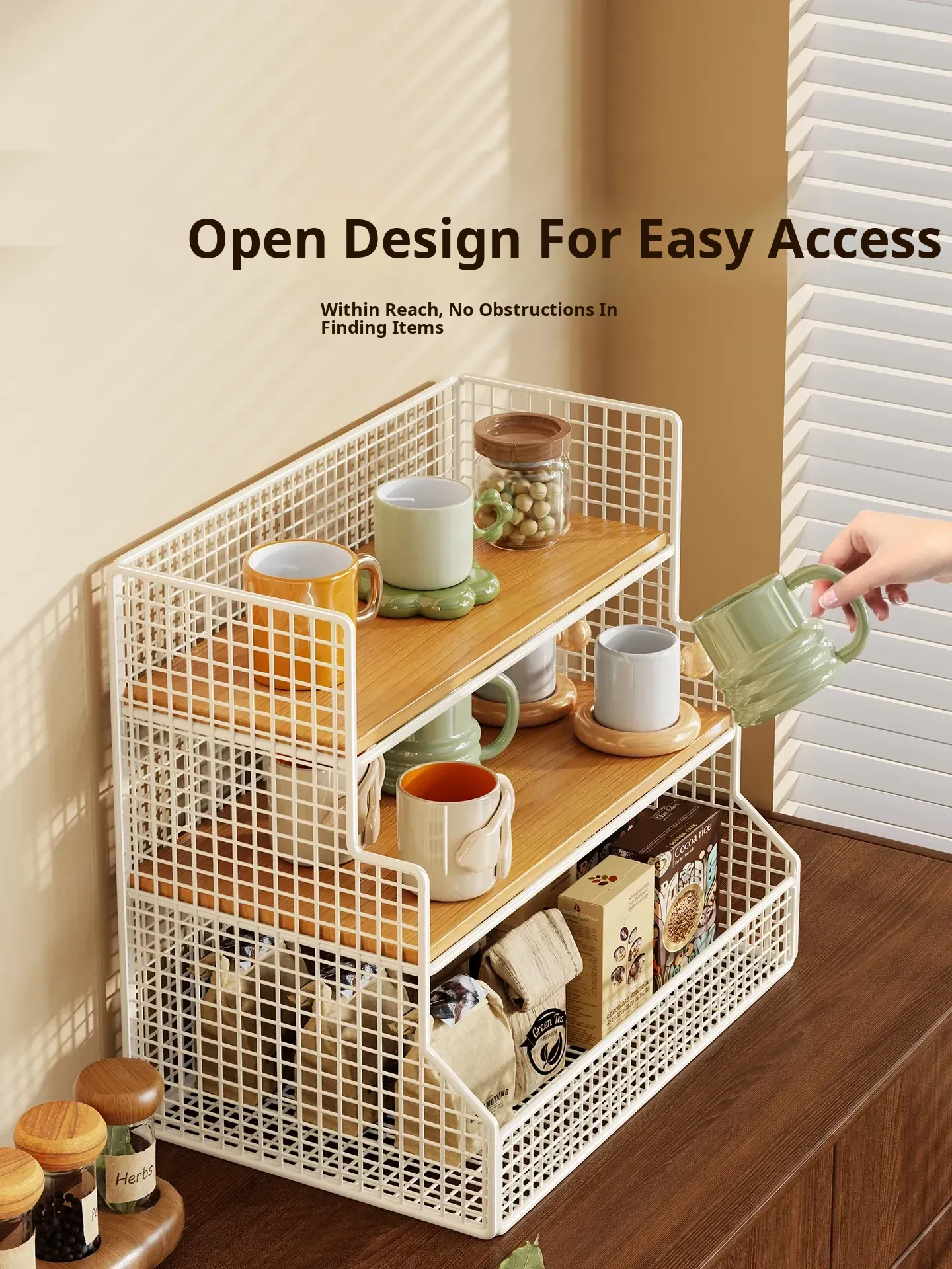 Multi-Functional Desktop Organizer Shelf for Kitchen - Snack Rack, Cup & Tea Bag Storage, Perfect for Home Dining Tables