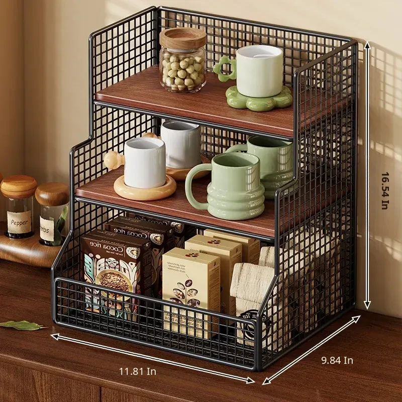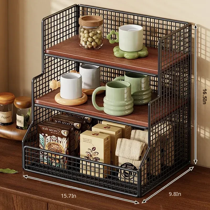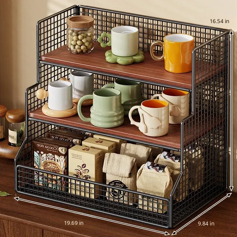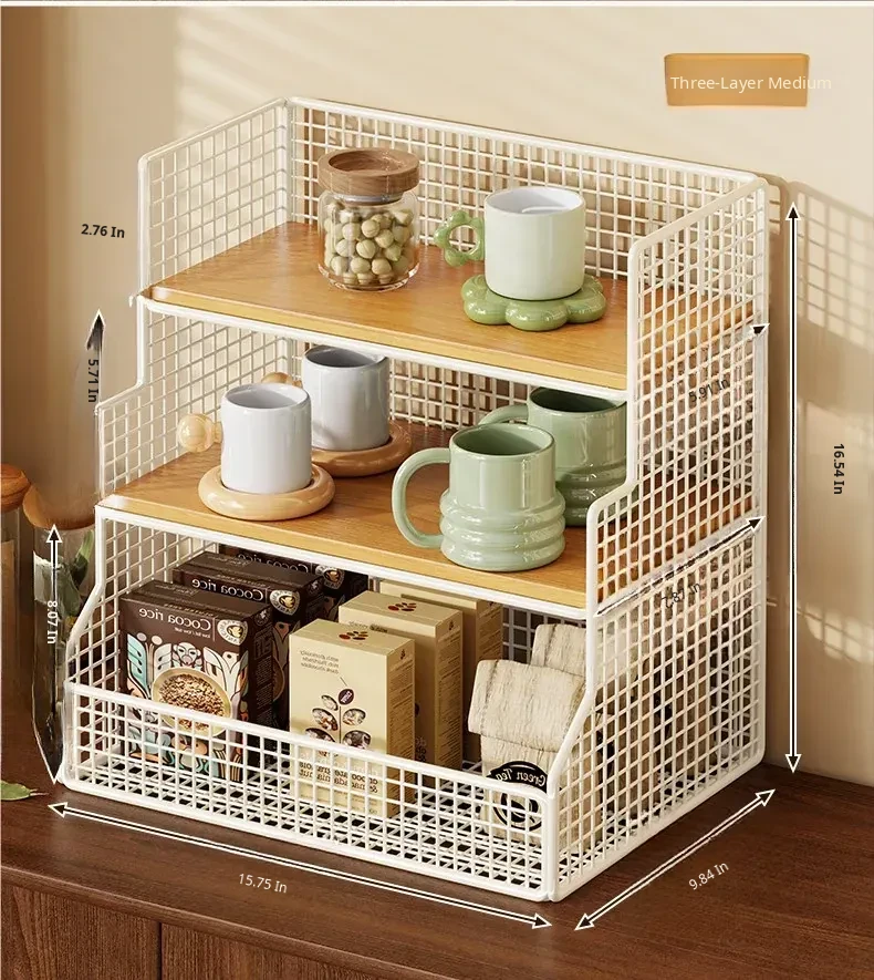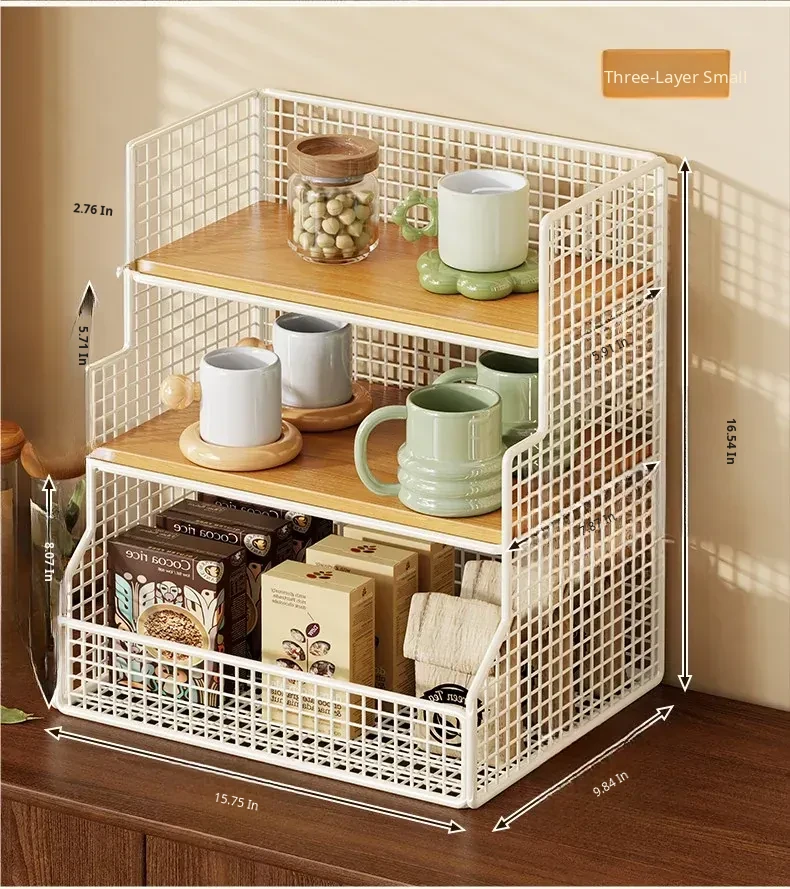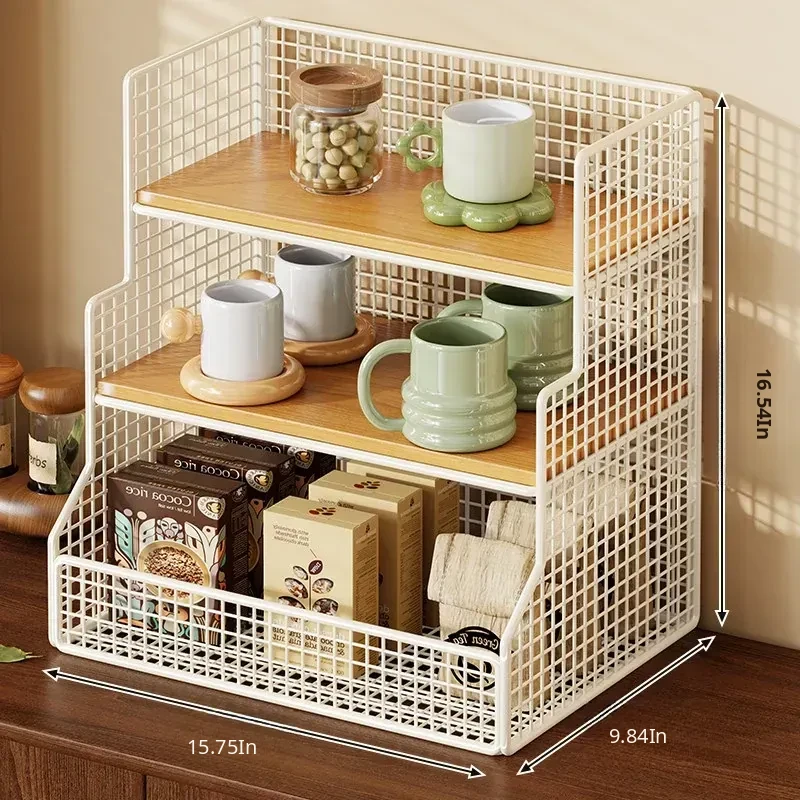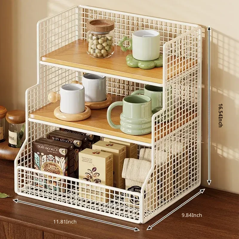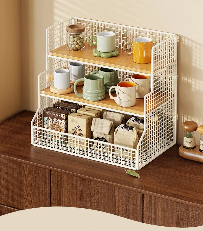 Multi-Functional Desktop Organizer Shelf for Kitchen - Snack Rack, Cup & Tea Bag Storage, Perfect for Home Dining Tables