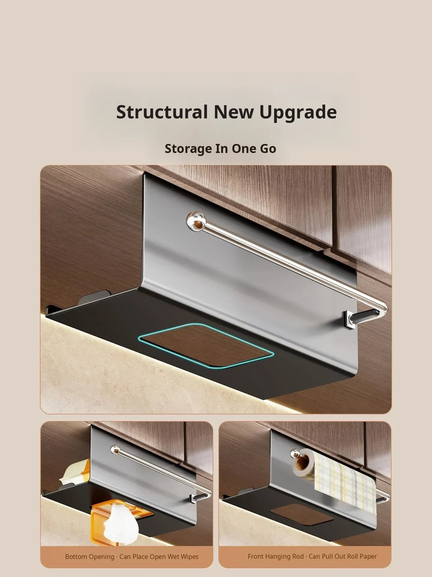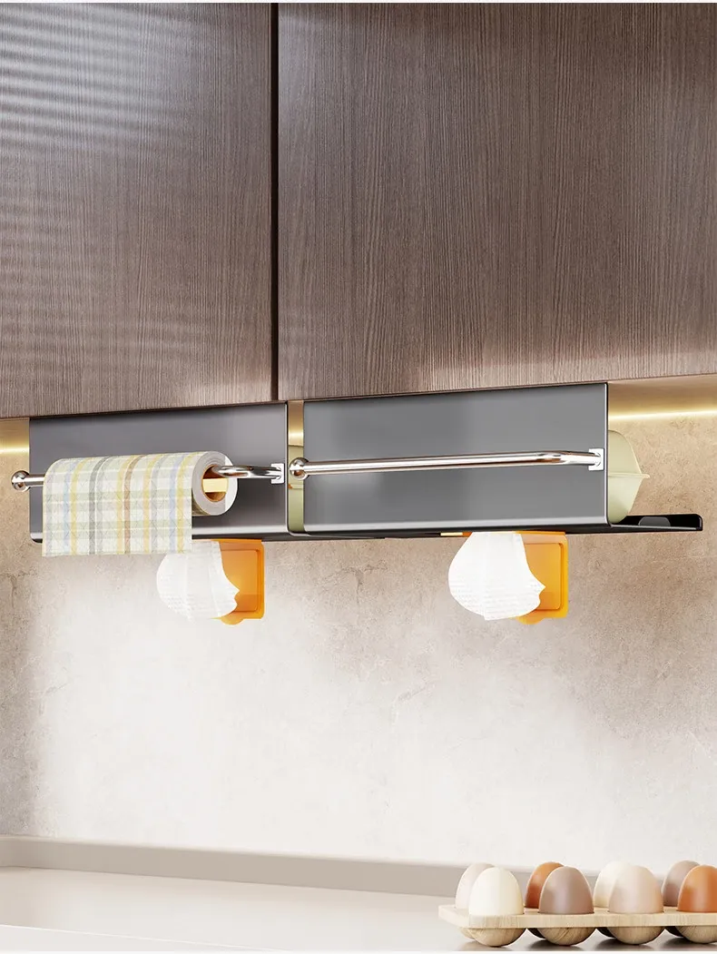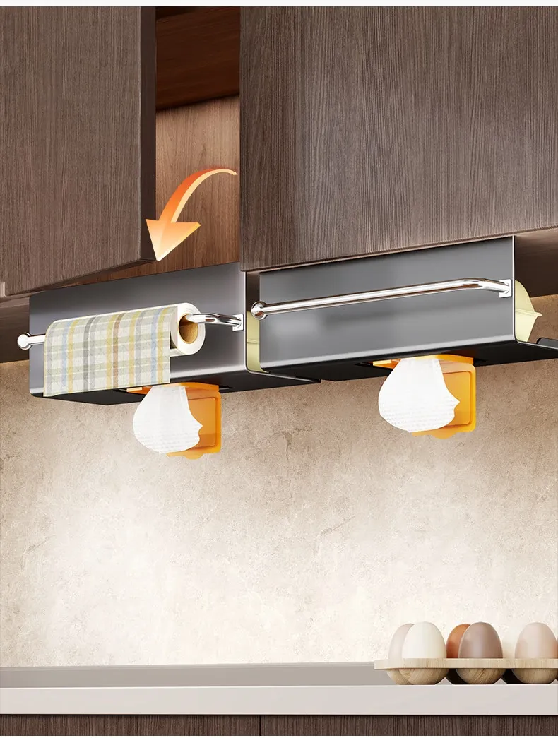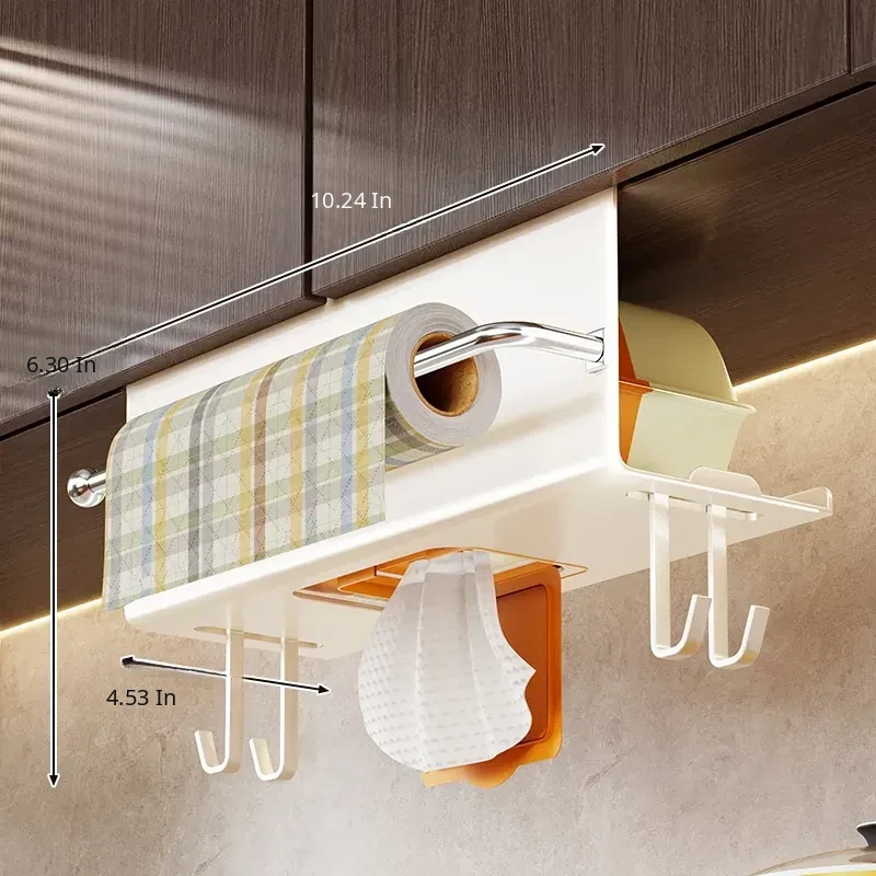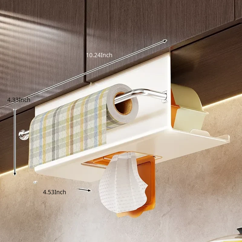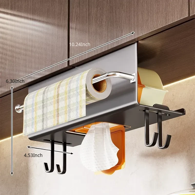 Multifunctional Kitchen Hanging Paper Towel Holder – No Drill Cabinet Organizer for Cloths, Oil Absorbent Paper, and Wet Wipes Storage Rack