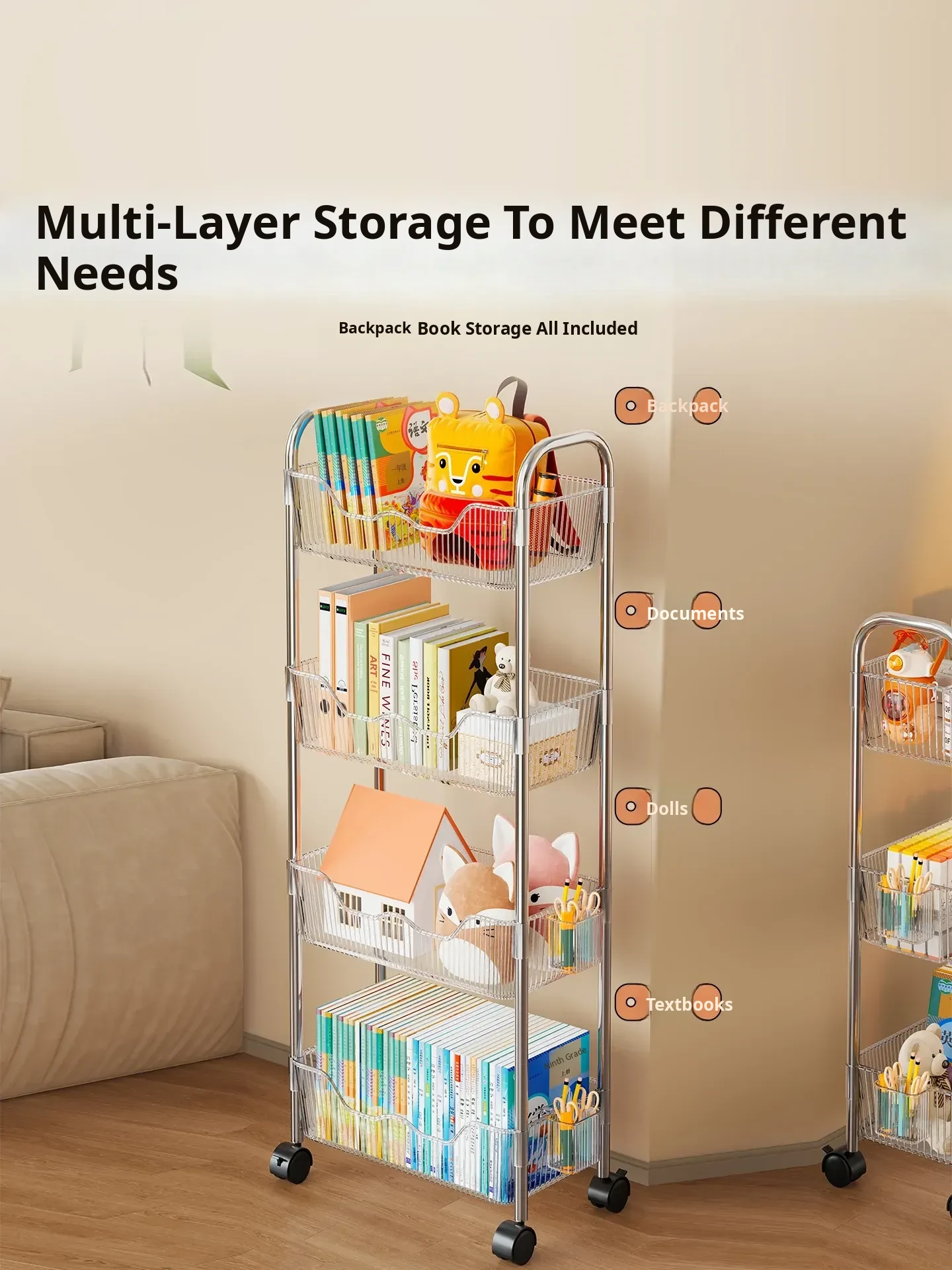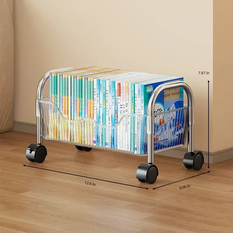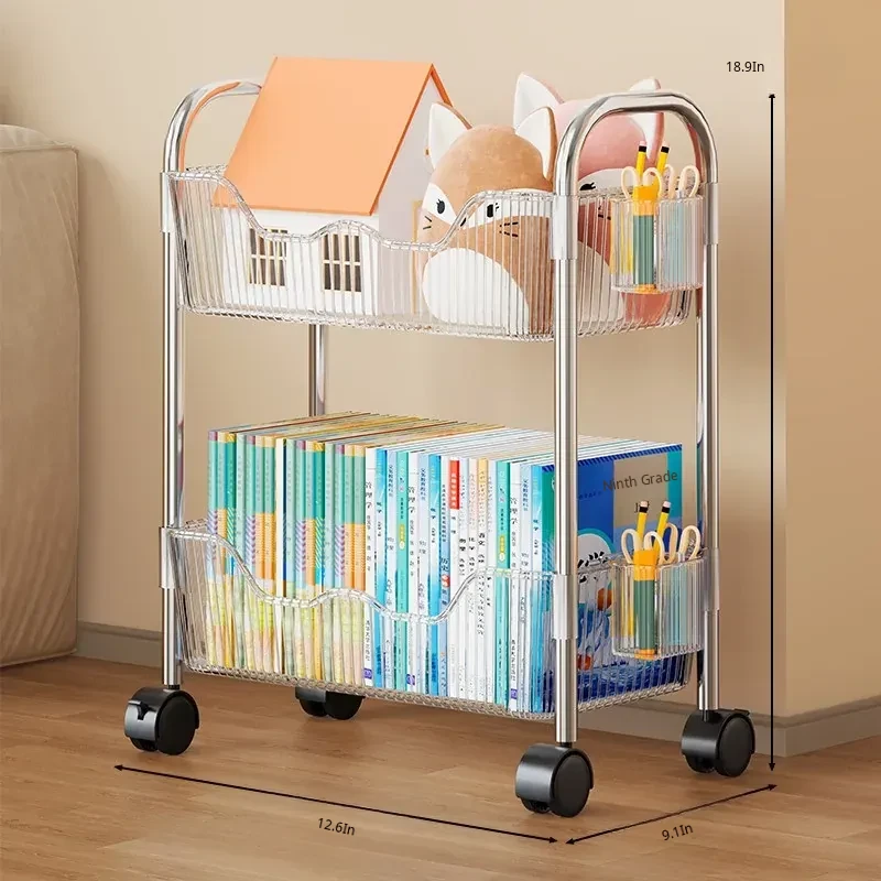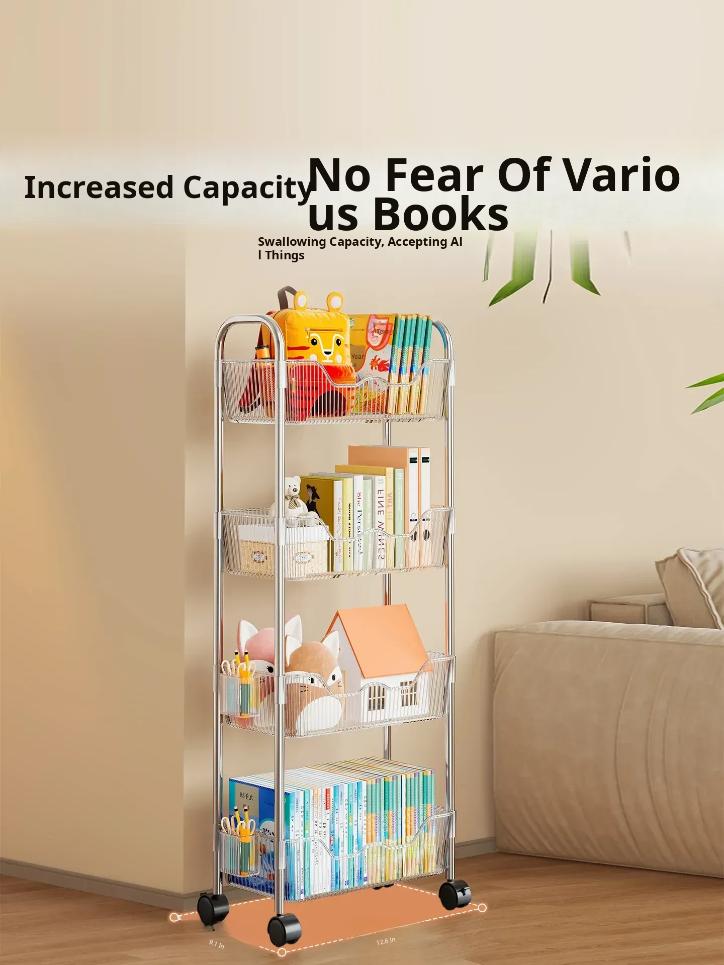 Multifunctional Rolling Storage Cart - Acrylic Book and Snack Organizer for Home Use, Perfect Under-Desk Solution with Multiple Layers for Books and Snacks!