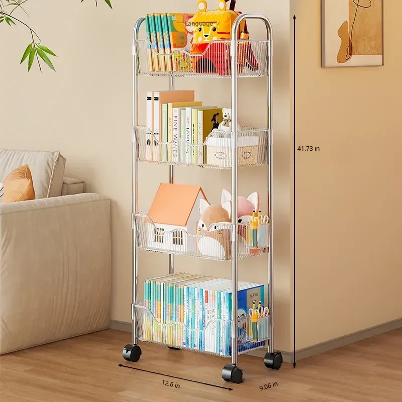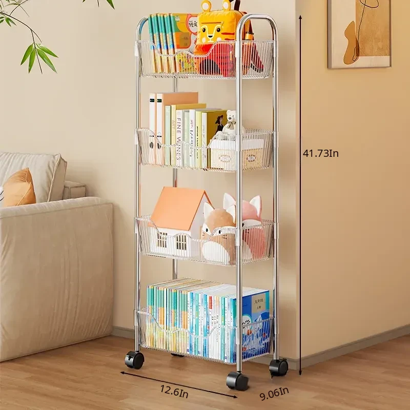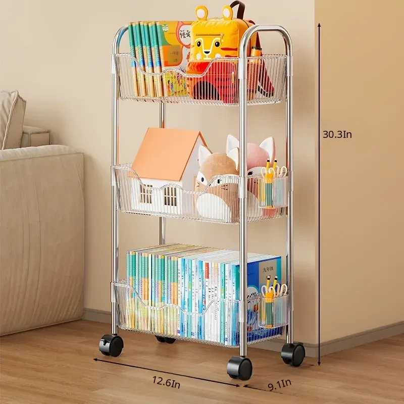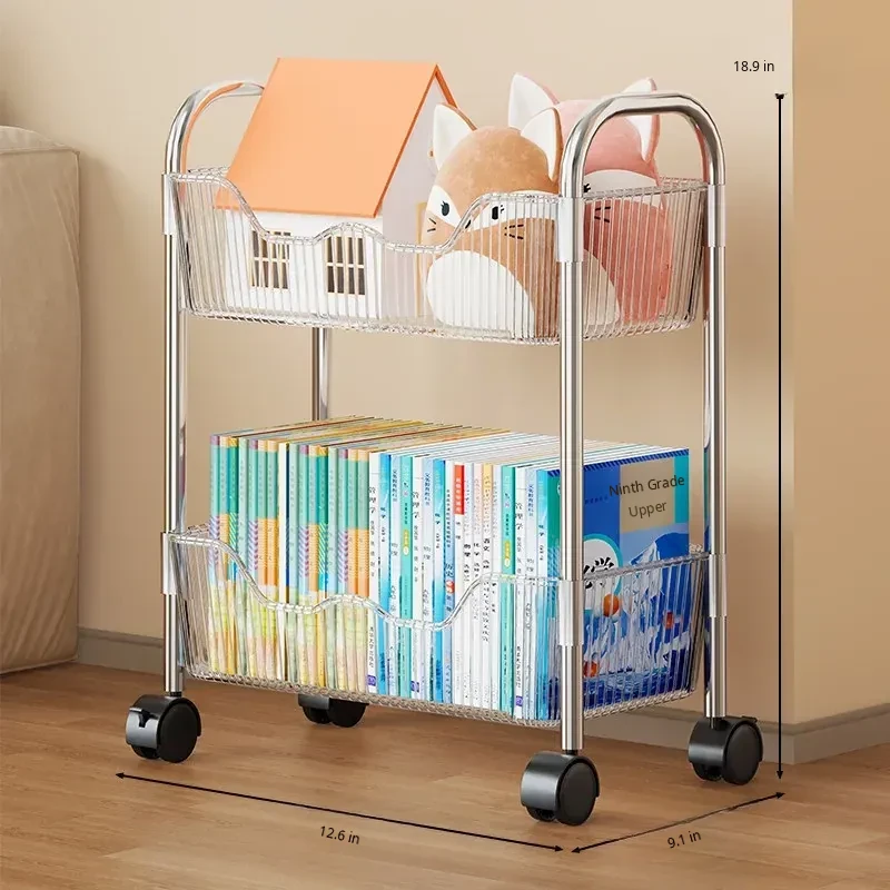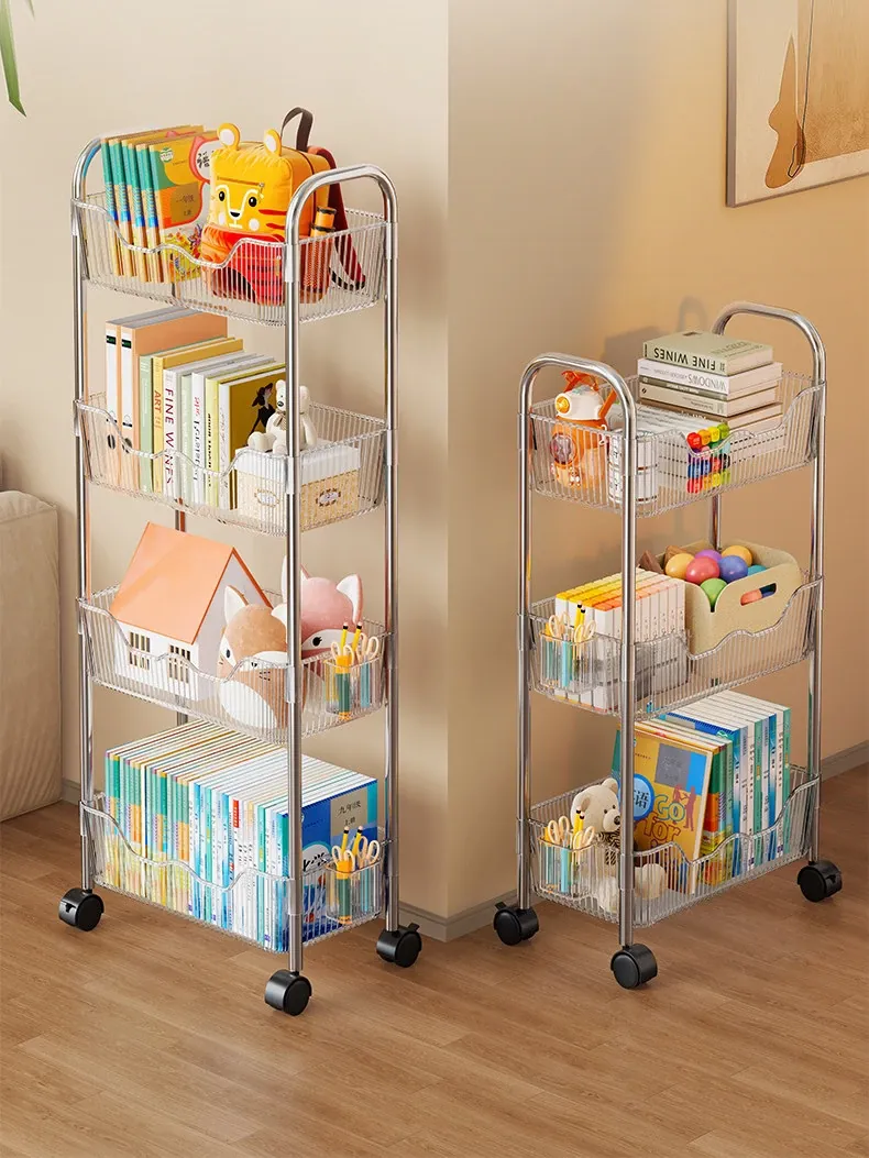 Multifunctional Rolling Storage Cart - Acrylic Book and Snack Organizer for Home Use, Perfect Under-Desk Solution with Multiple Layers for Books and Snacks!