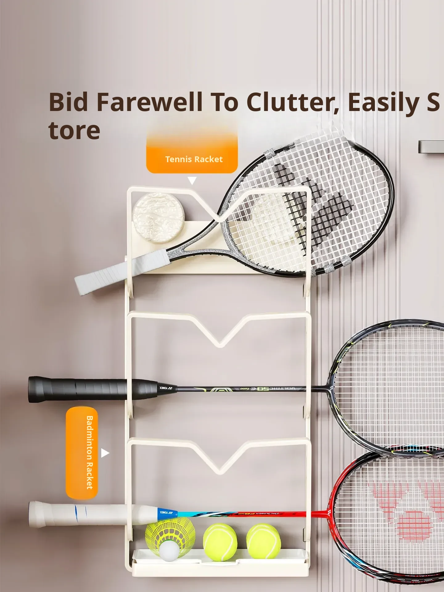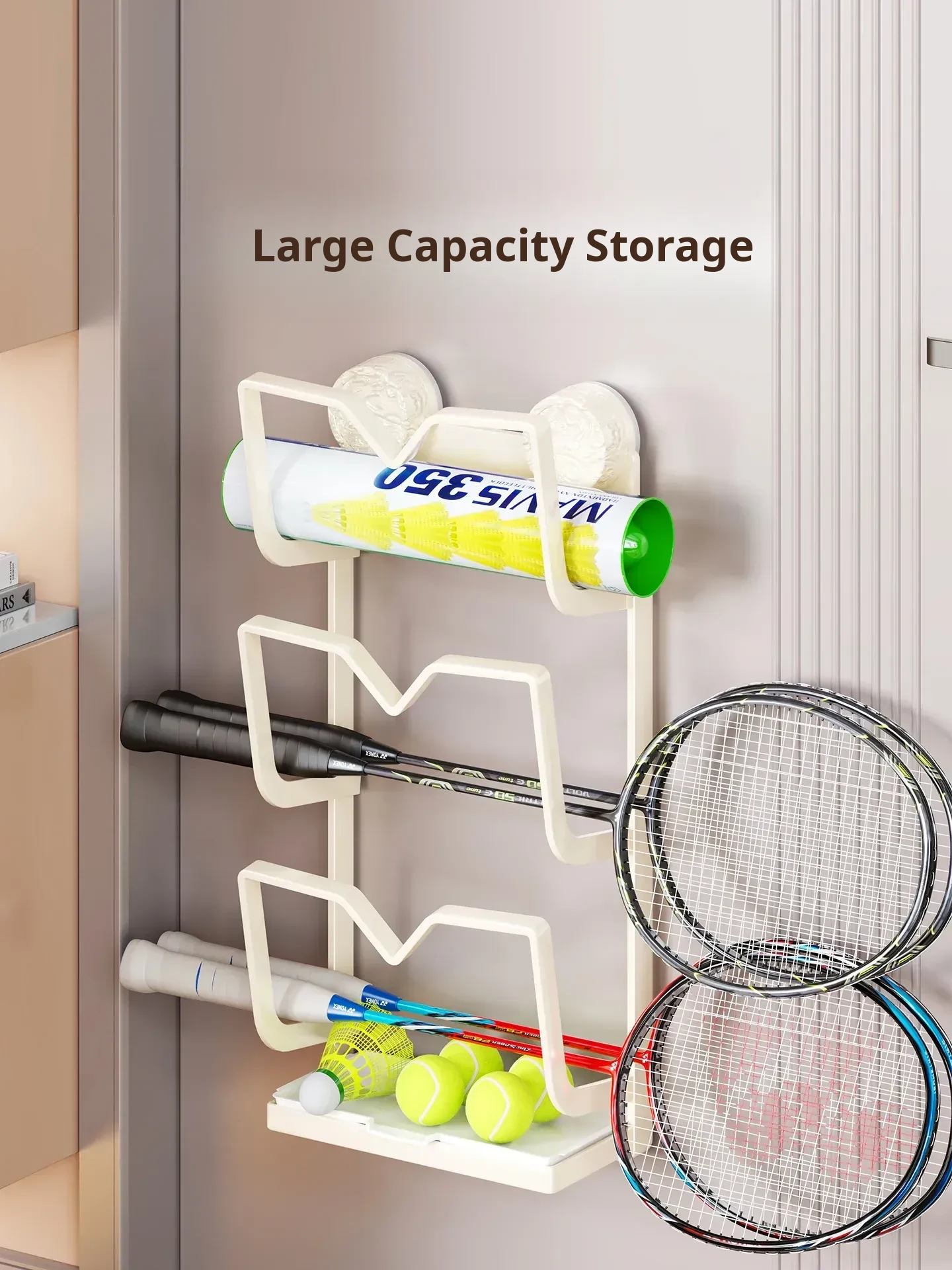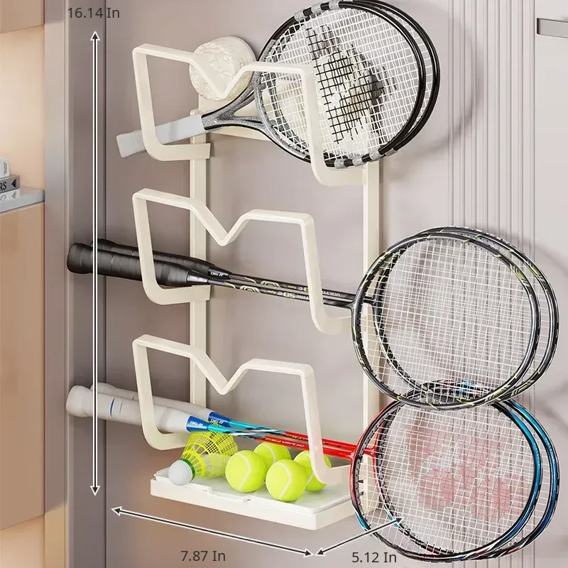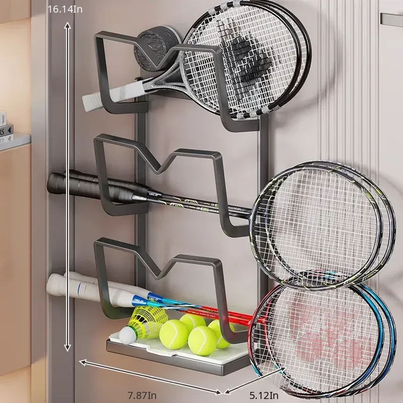 Multi-Functional Wall-Mounted Badminton Racket Storage Rack - Versatile 3-Tier Display Organizer for Home & Table Tennis Rackets, Perfect for Keeping Your Sports Equipment Neat and Accessible!