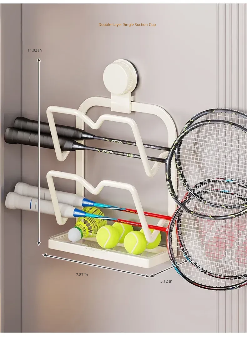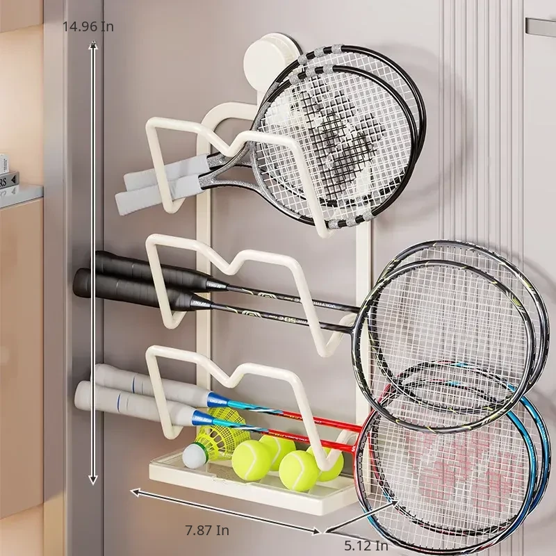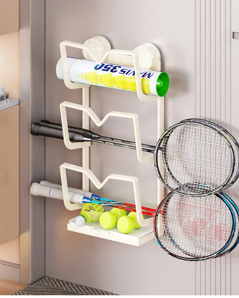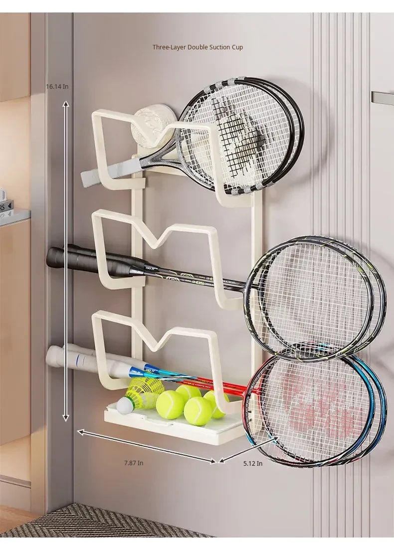 Multi-Functional Wall-Mounted Badminton Racket Storage Rack - Versatile 3-Tier Display Organizer for Home & Table Tennis Rackets, Perfect for Keeping Your Sports Equipment Neat and Accessible!