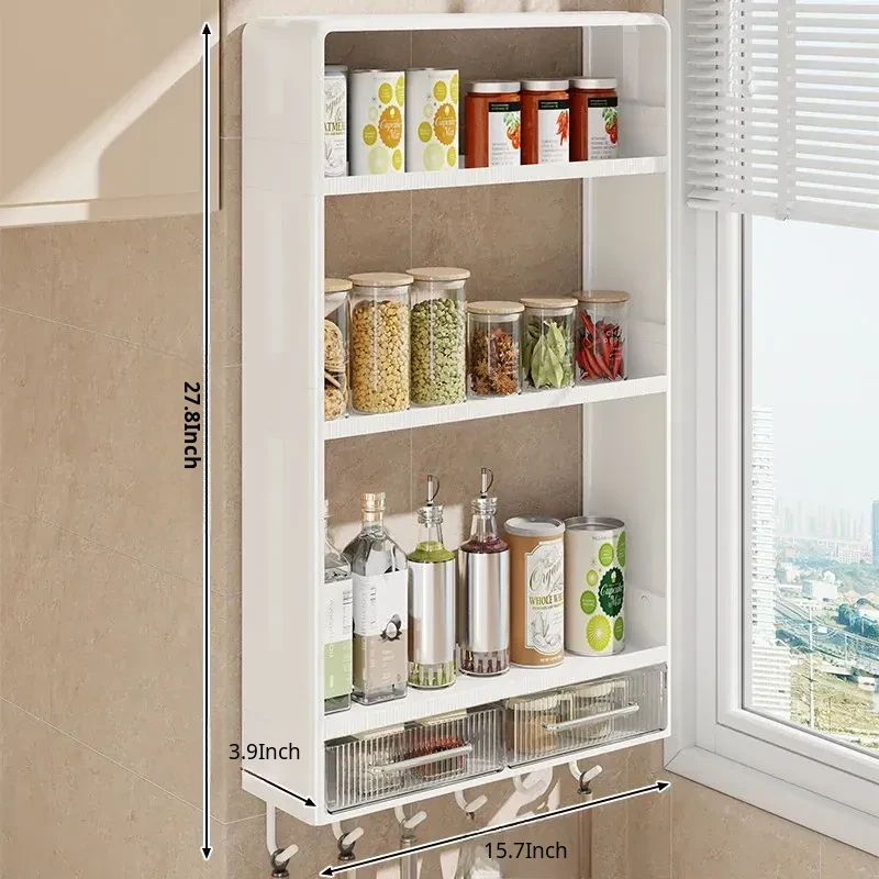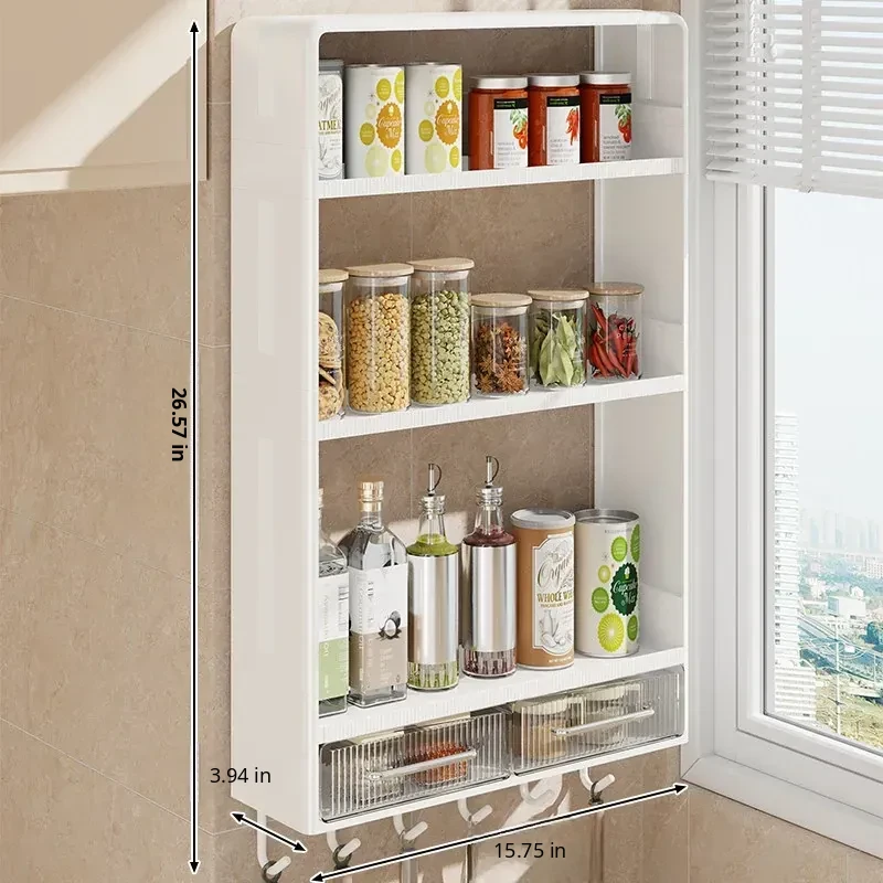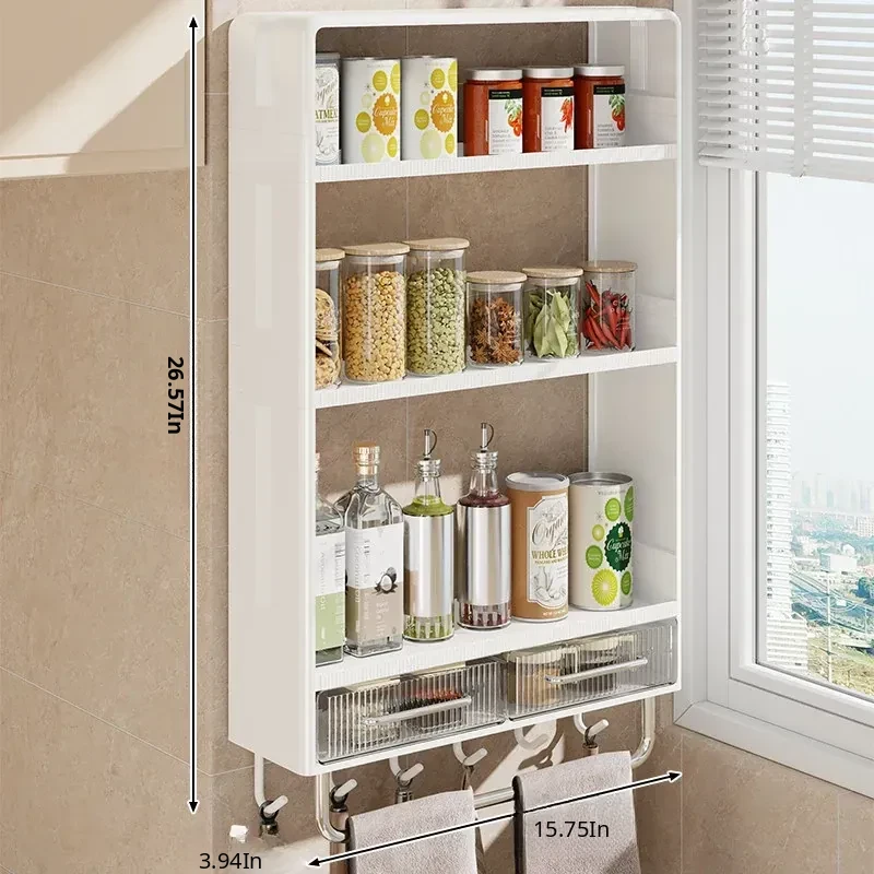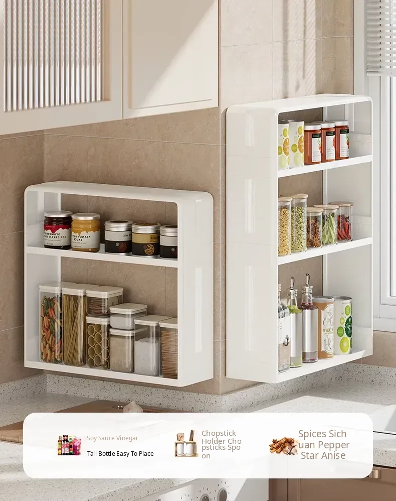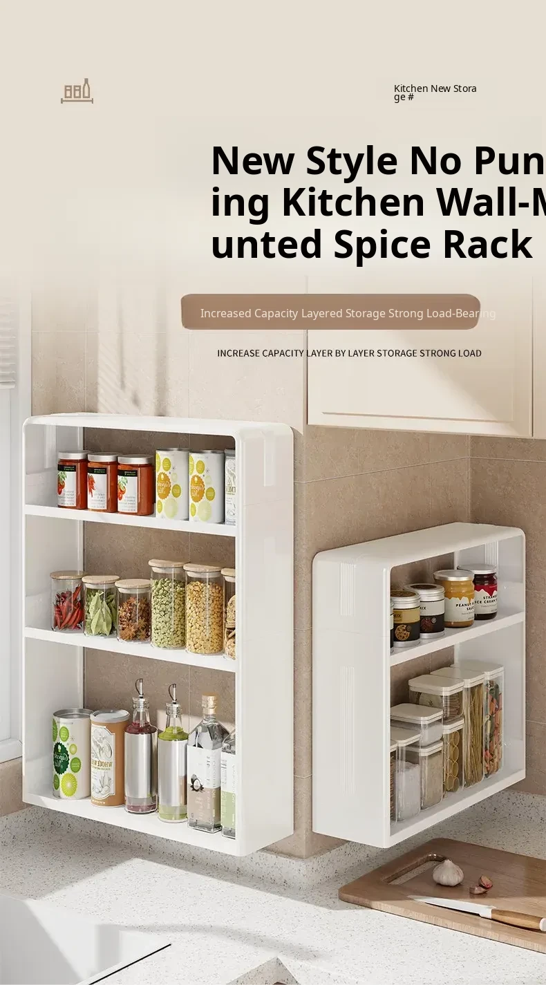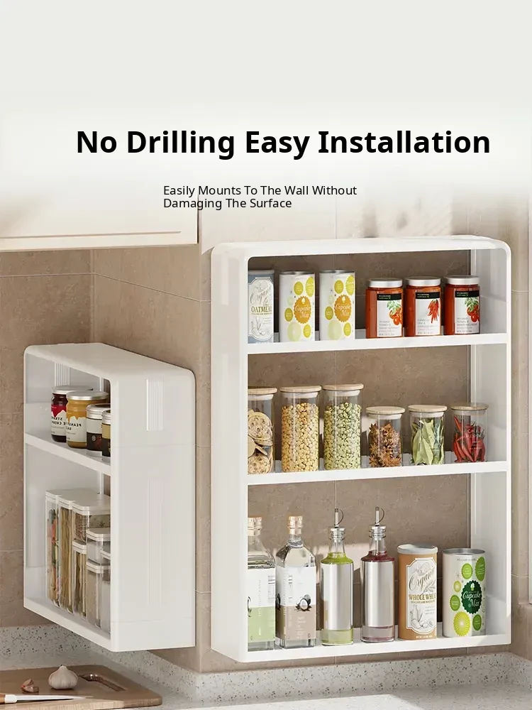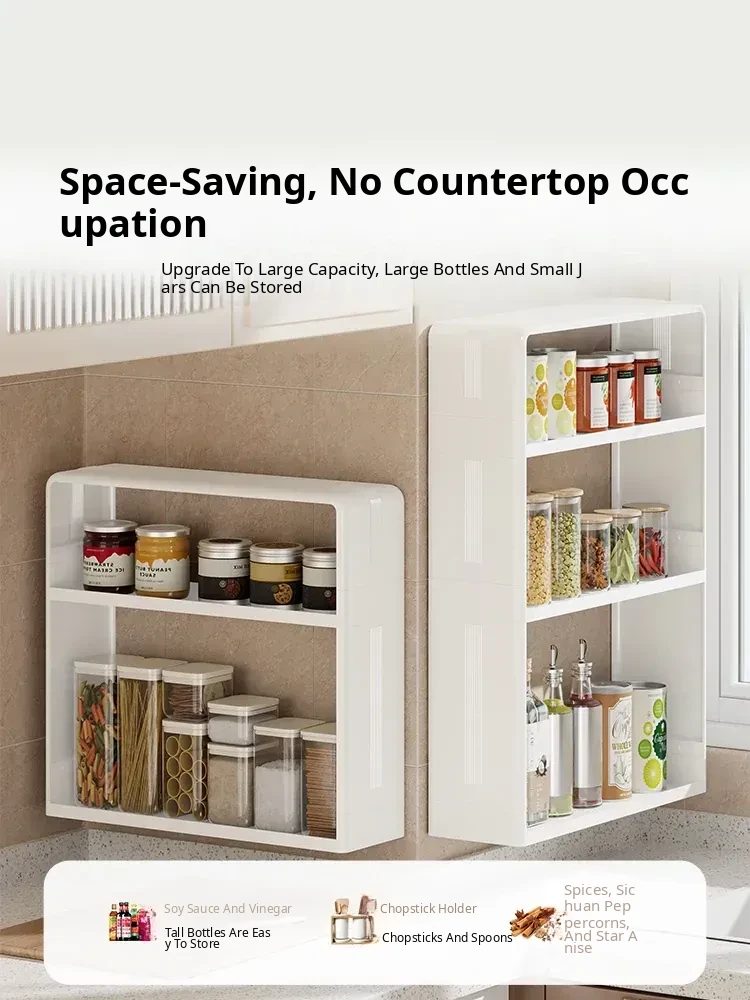 Multifunctional Wall-Mounted Kitchen Storage Rack - No Drilling Required, Large Capacity Organizer for Spices and Kitchen Essentials, Perfect for Maximizing Space!