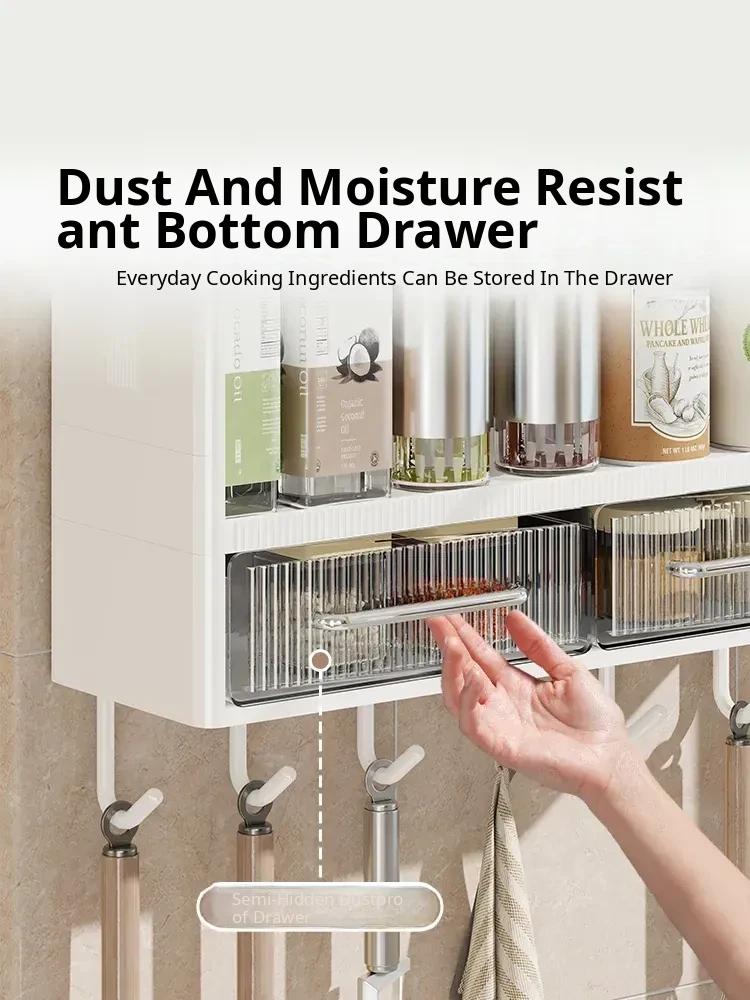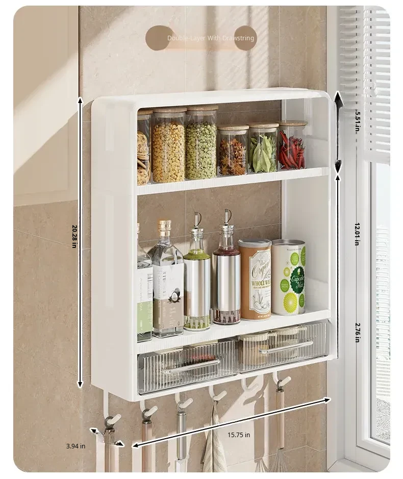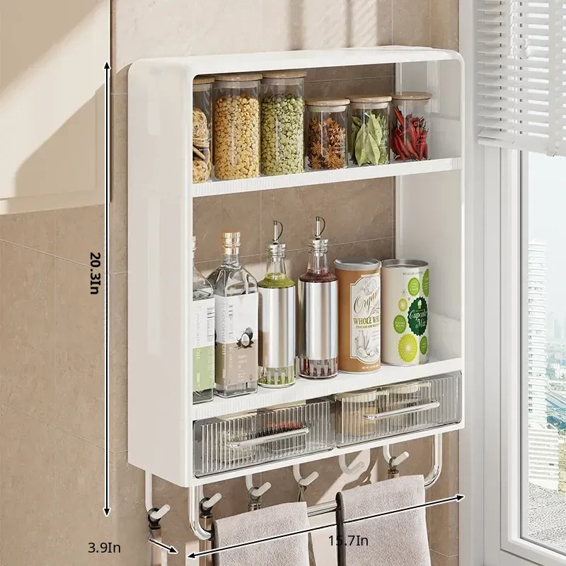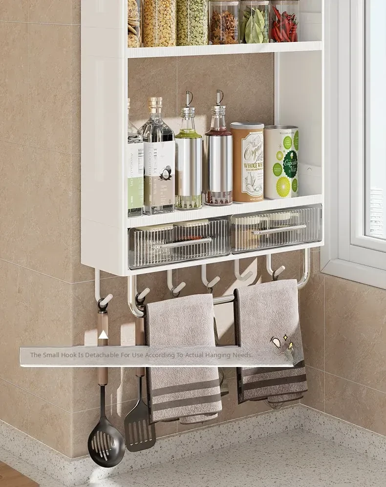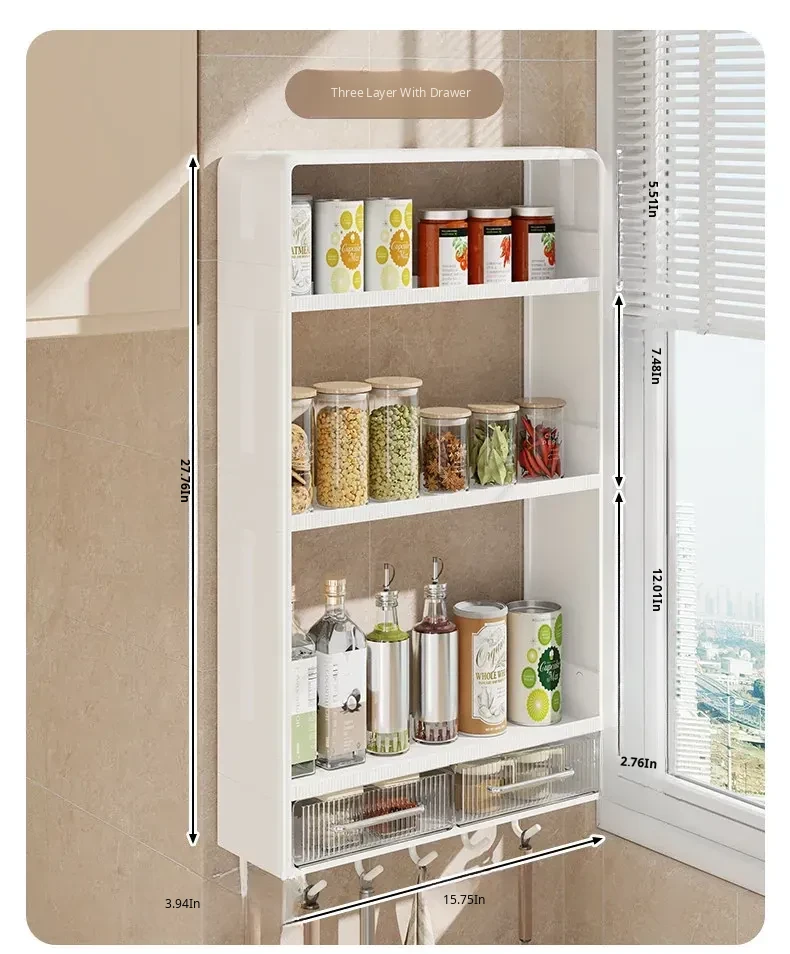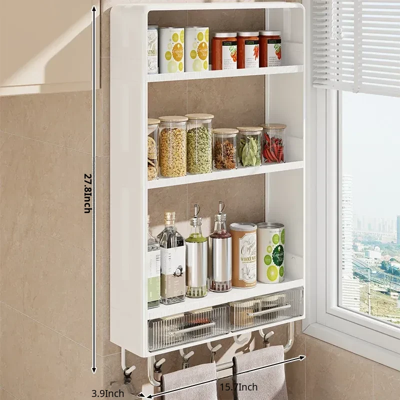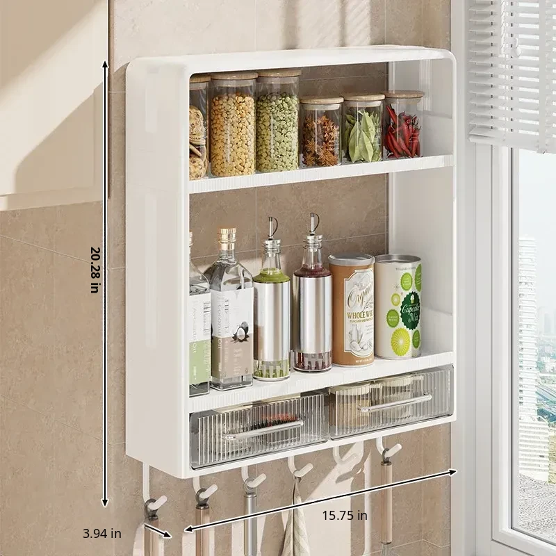 Multifunctional Wall-Mounted Kitchen Storage Rack - No Drilling Required, Large Capacity Organizer for Spices and Kitchen Essentials, Perfect for Maximizing Space!