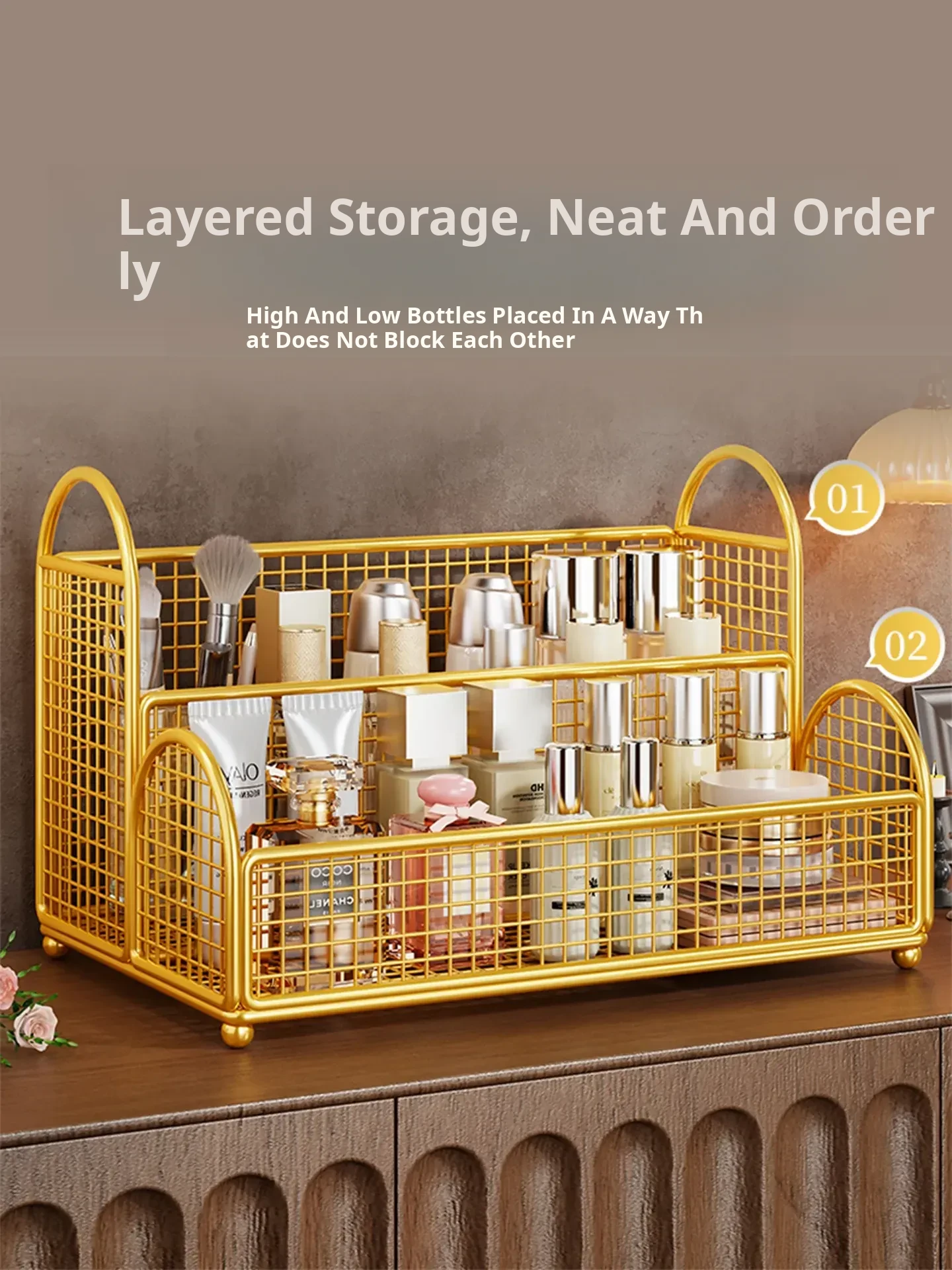 Multi-Layer Desktop Makeup Organizer - Stylish Cosmetic Display Rack for Vanity, Bathroom Skincare Storage Solution, Perfect for Organizing Your Beauty Essentials!