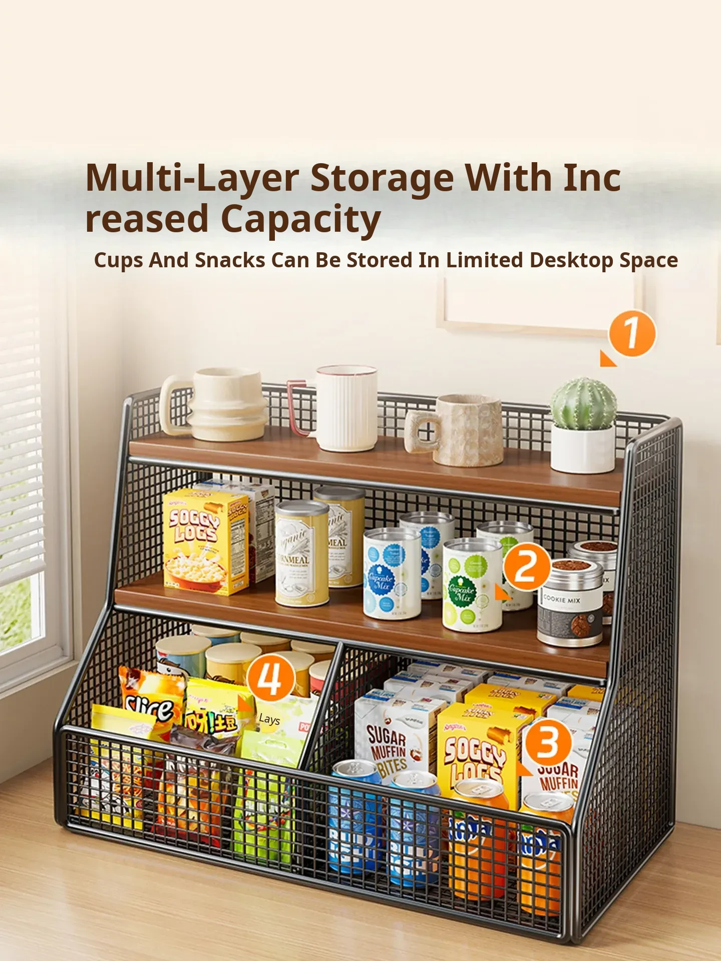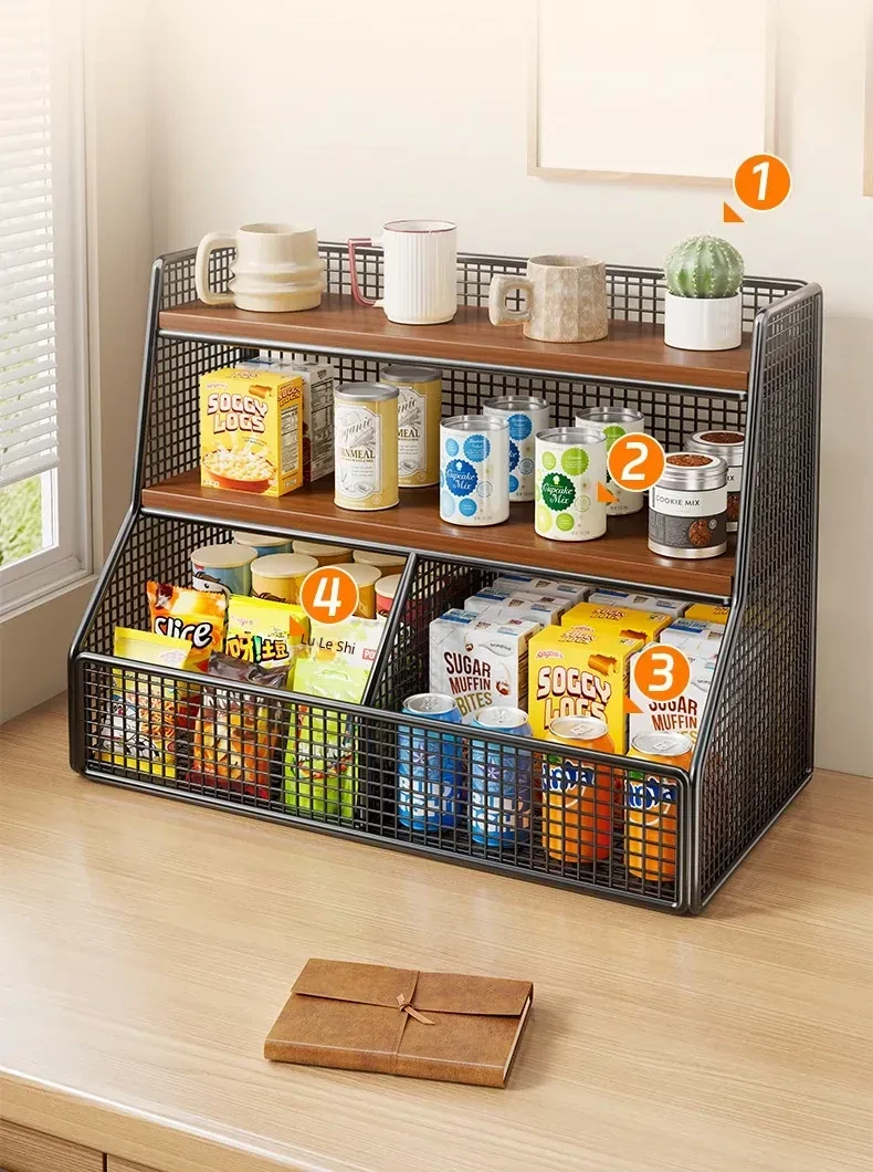 Multi-Layer Desktop Storage Rack - Versatile Snack Organizer for Living Room and Kitchen, Perfect for Tea Bags and Cups, Ideal for Tidy Dining Table and Efficient Space Management