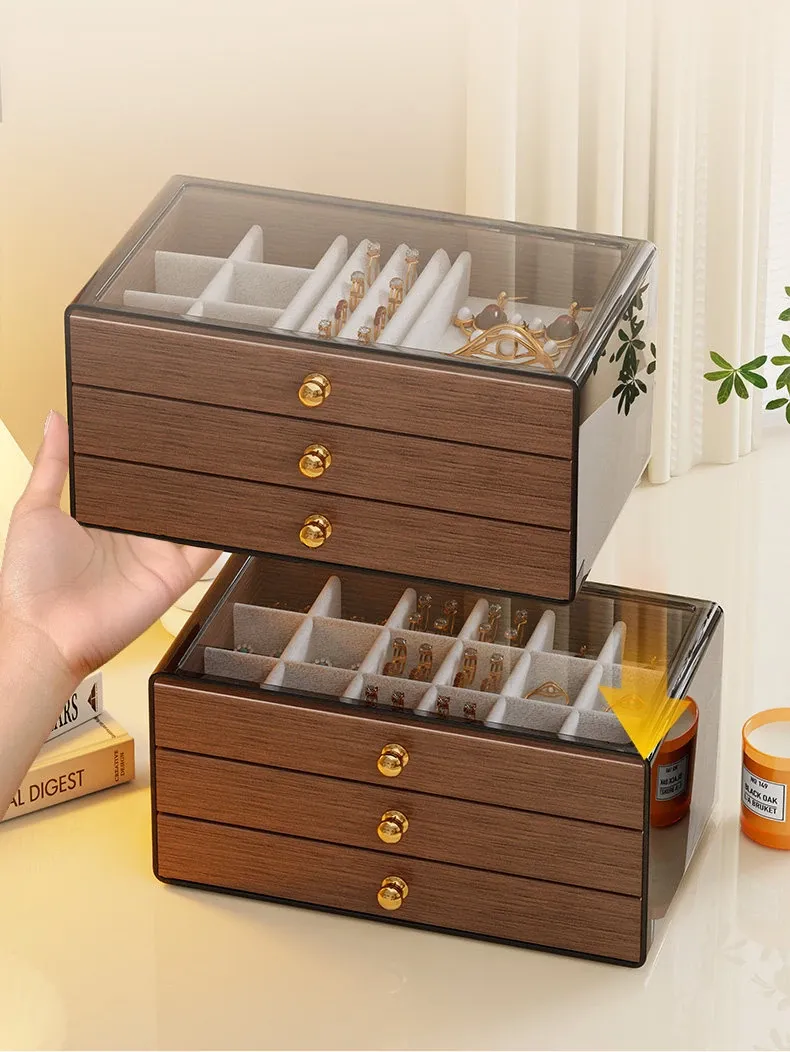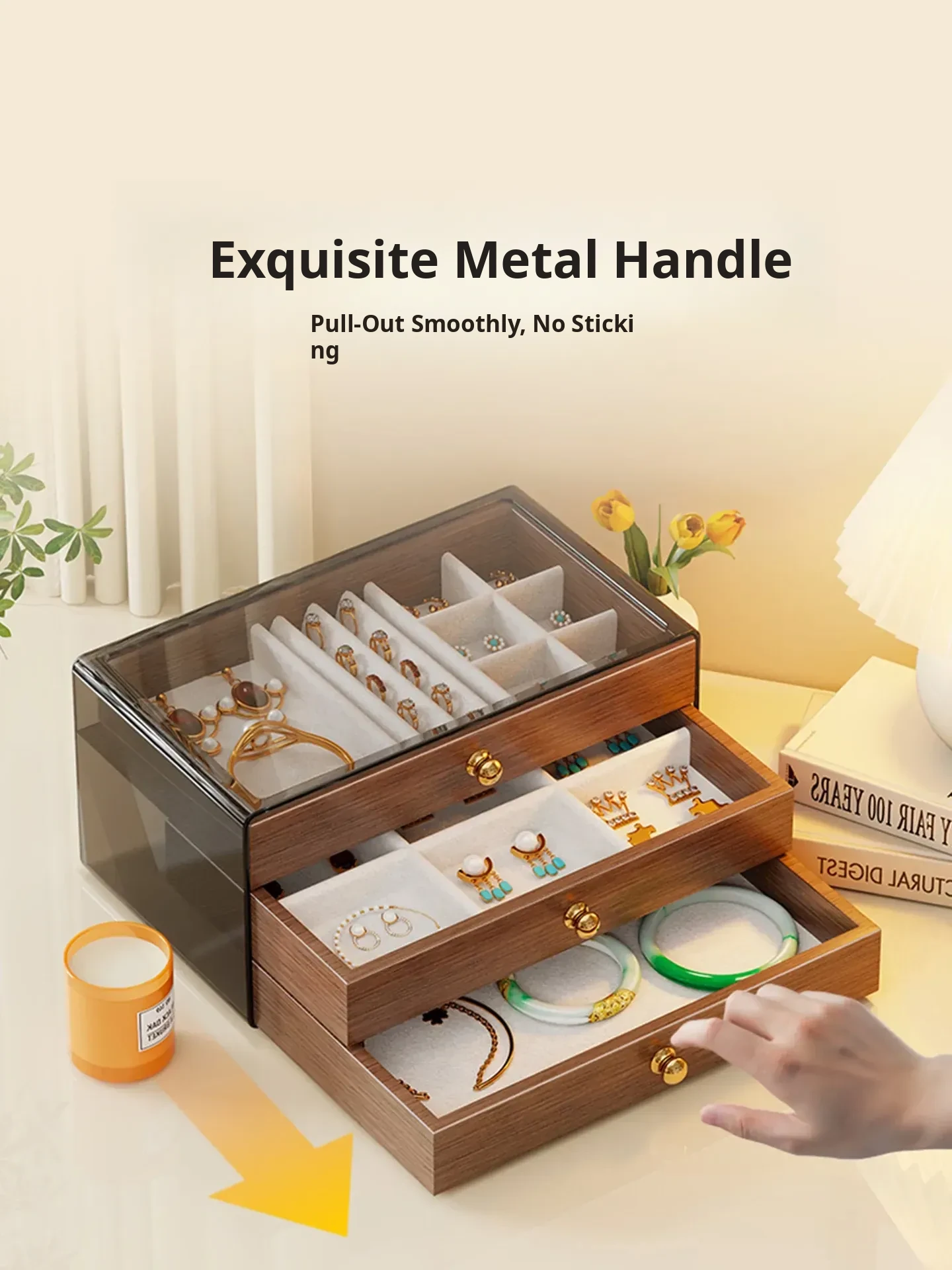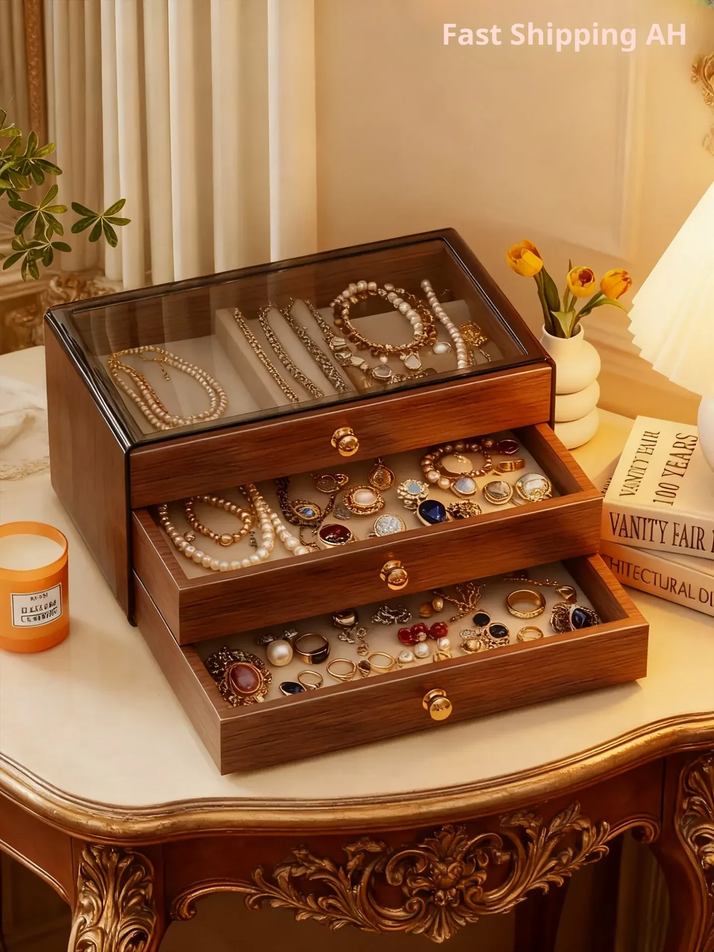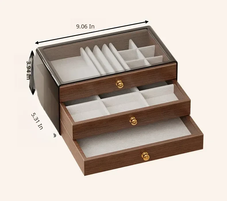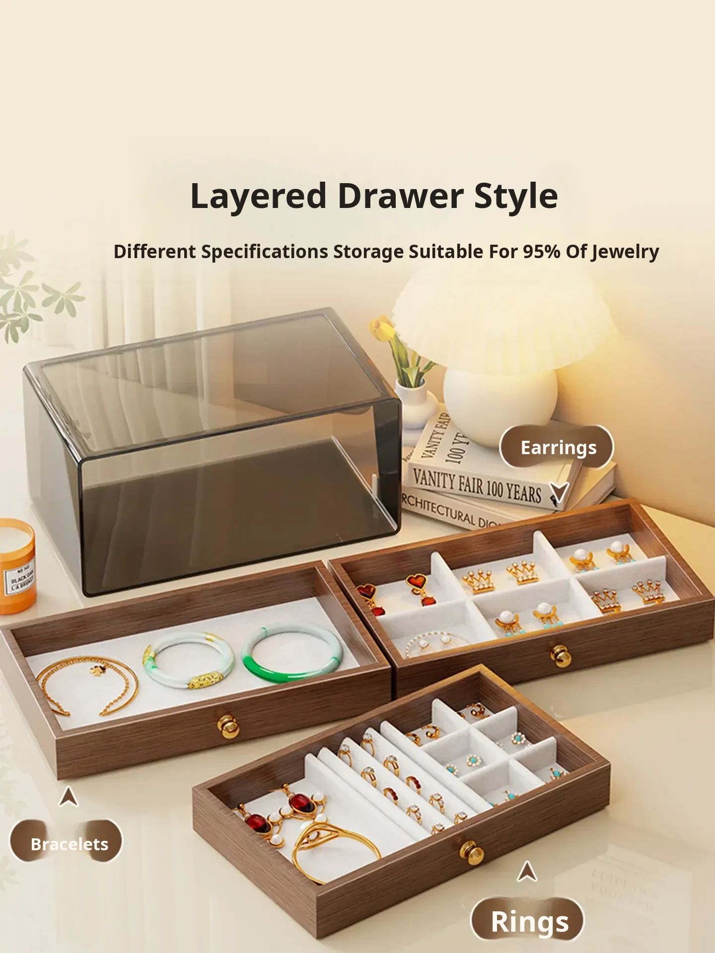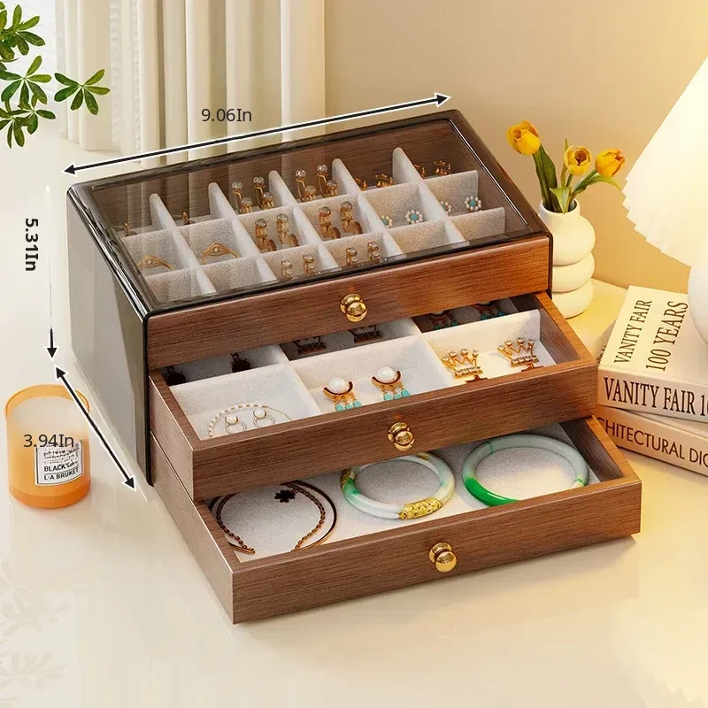Multi-Layer Jewelry Organizer Box - Elegant Wooden Display Case for Rings, Necklaces, Earrings, and Studs - Perfect Desktop Storage Solution for Your Precious Accessories!