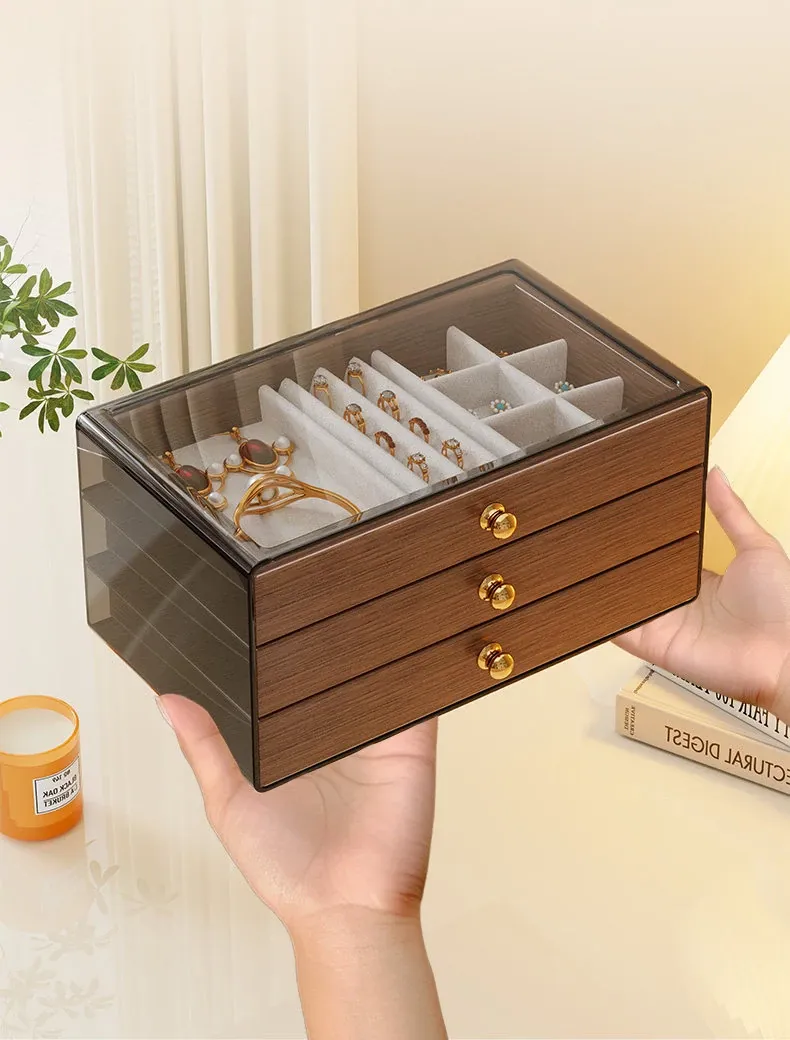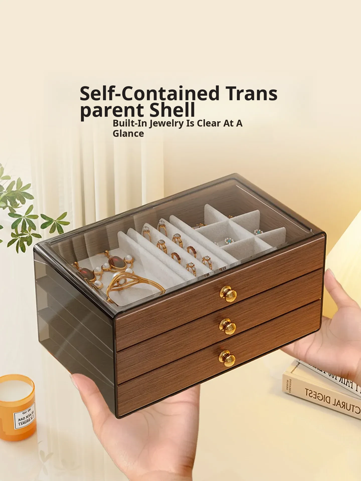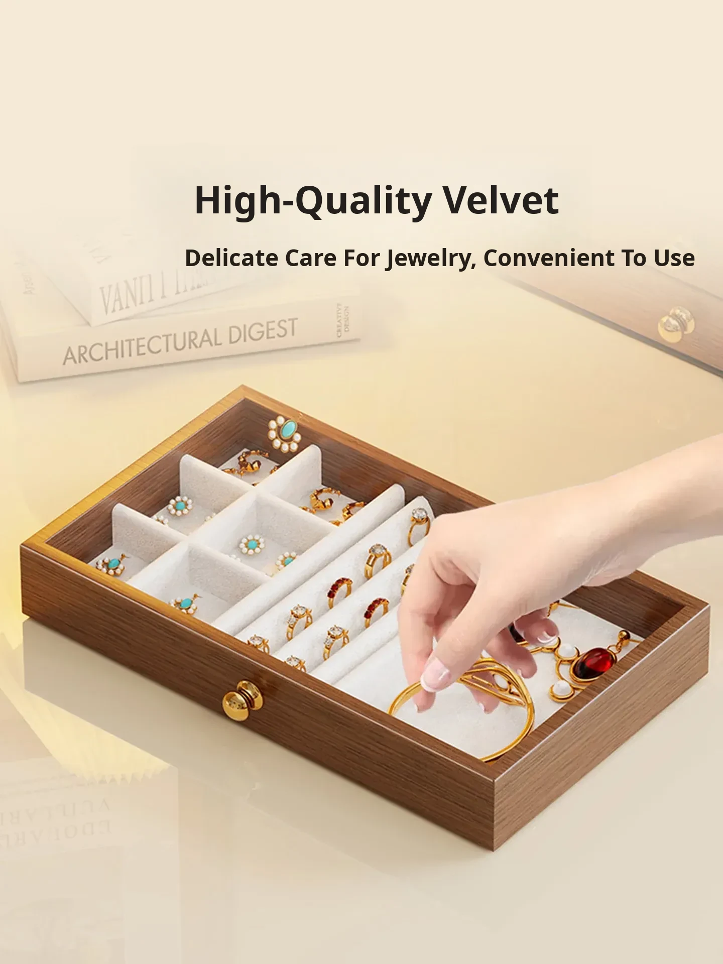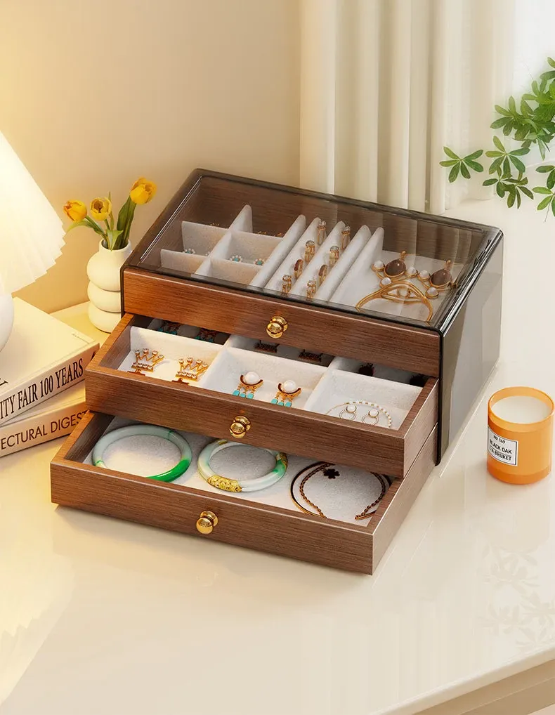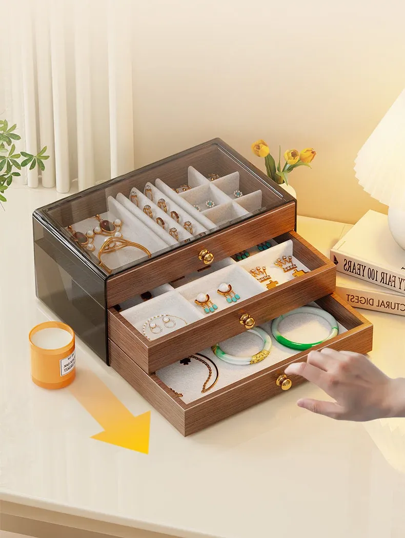 Multi-Layer Jewelry Organizer Box - Elegant Wooden Display Case for Rings, Necklaces, Earrings, and Studs - Perfect Desktop Storage Solution for Your Precious Accessories!