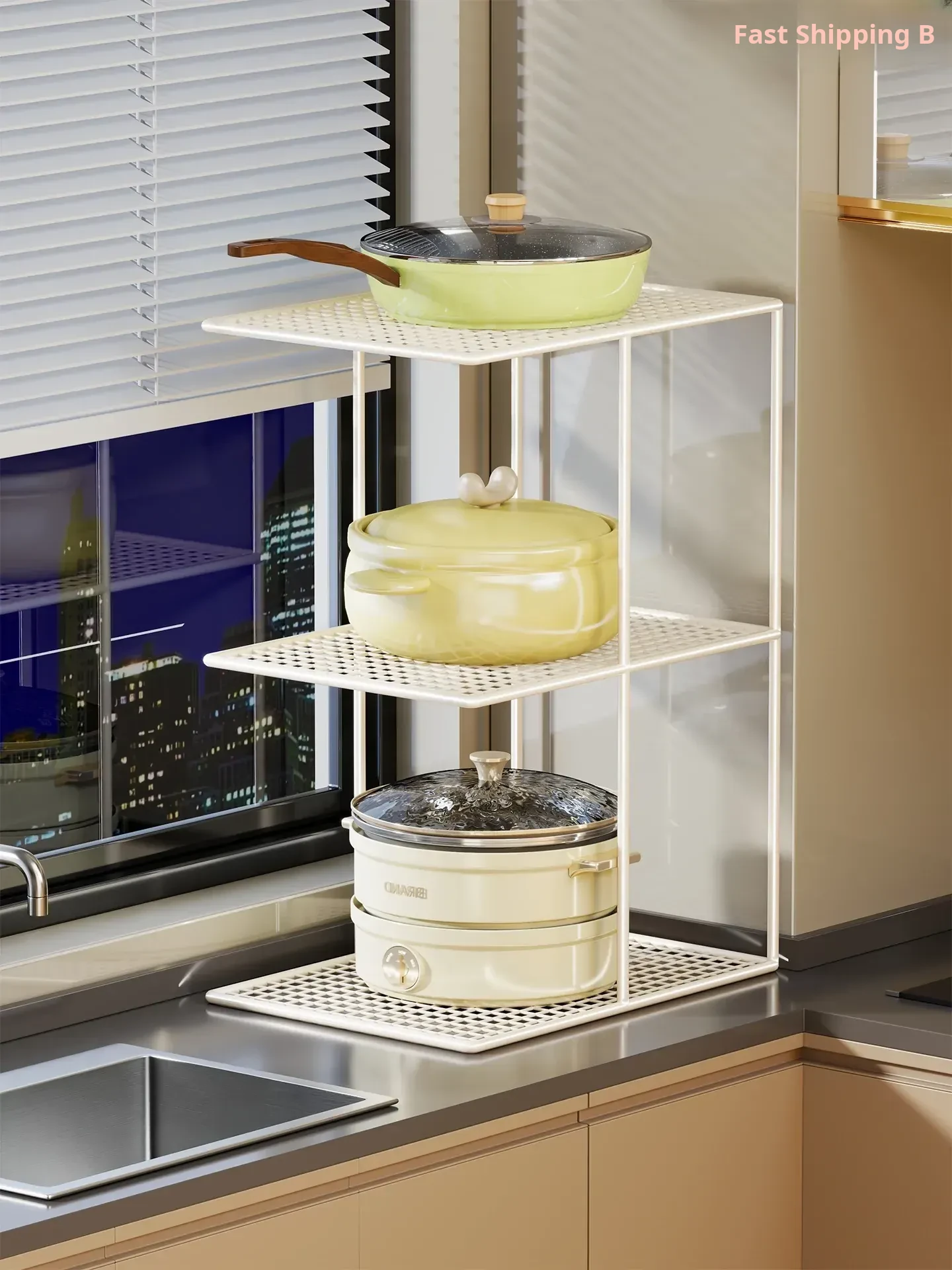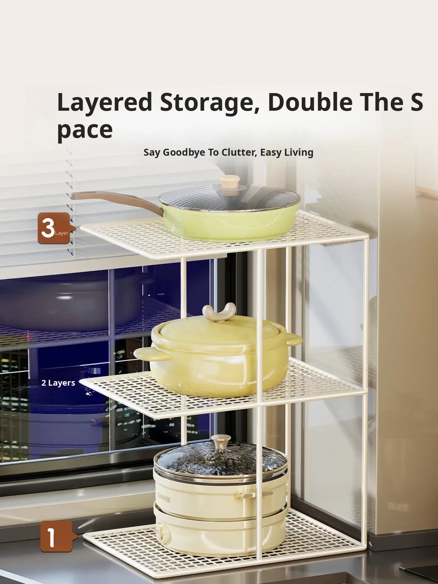 Multi-Layer Kitchen Storage Rack - Versatile Organizer for Countertops, Cabinets, and Sinks - Perfect for Cookware, Utensils, and Vegetable Baskets - Maximize Your Kitchen Space with Stylish Organization!