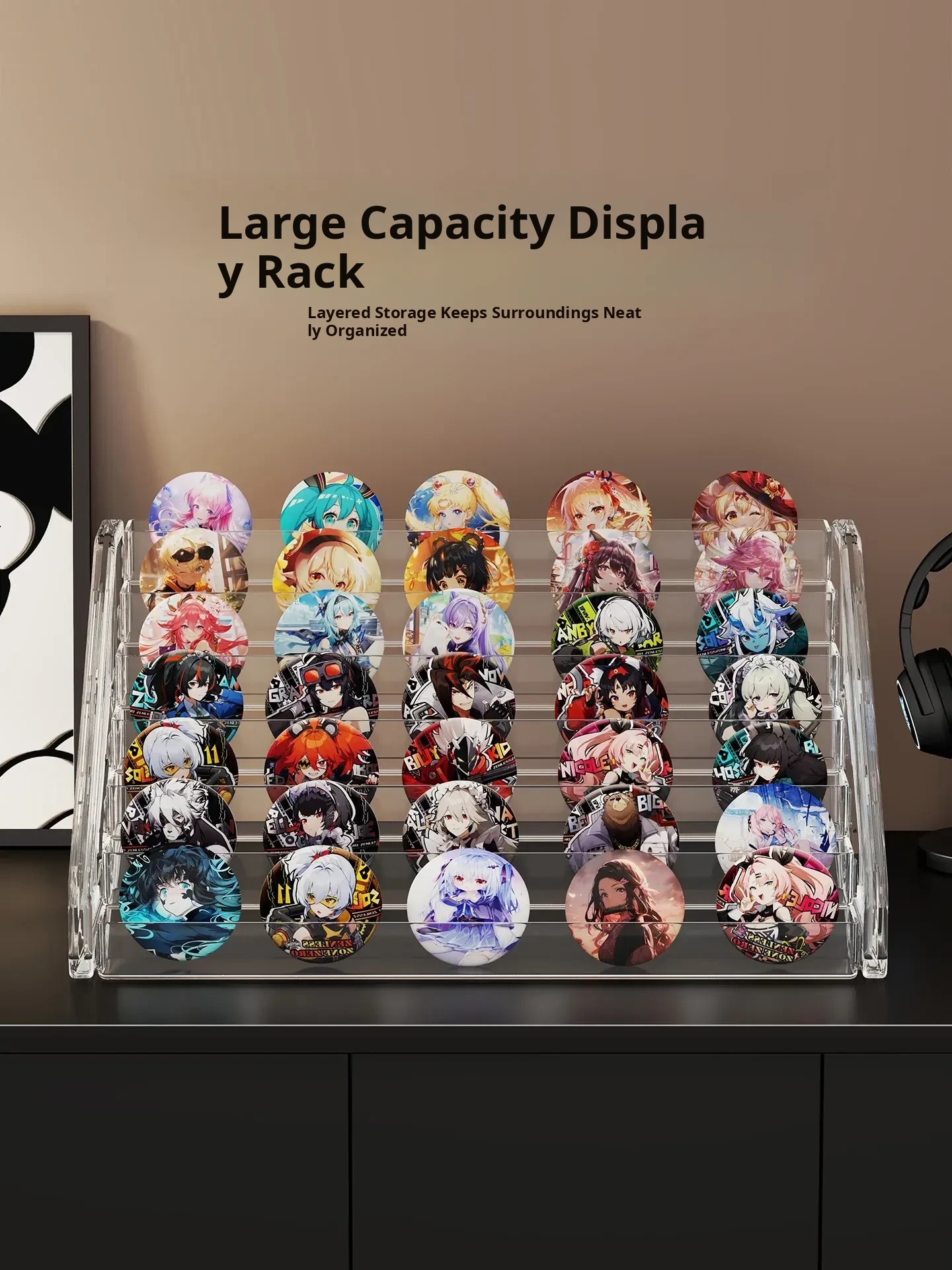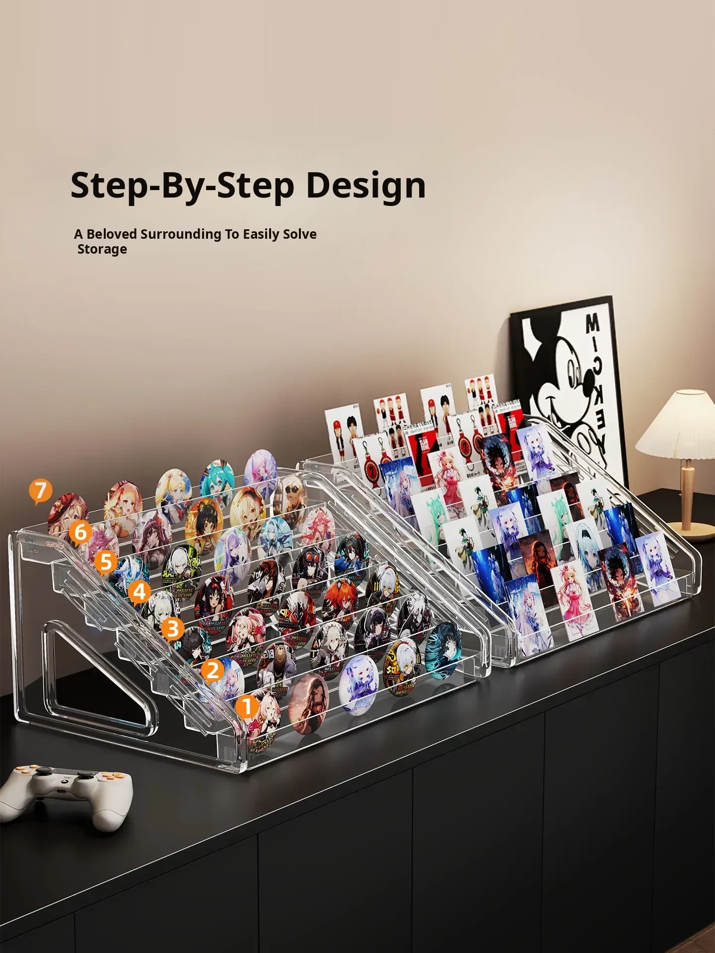 Multi-Tiered Desktop Display Stand for Millet Badges - Stylish Storage Organizer for Cards and Collectibles, Perfect for Showcasing Your Favorite Items!
