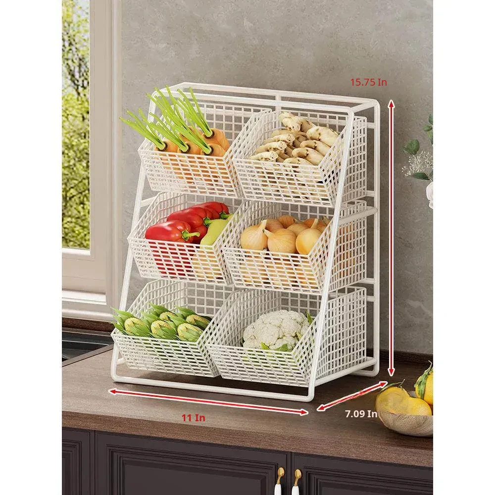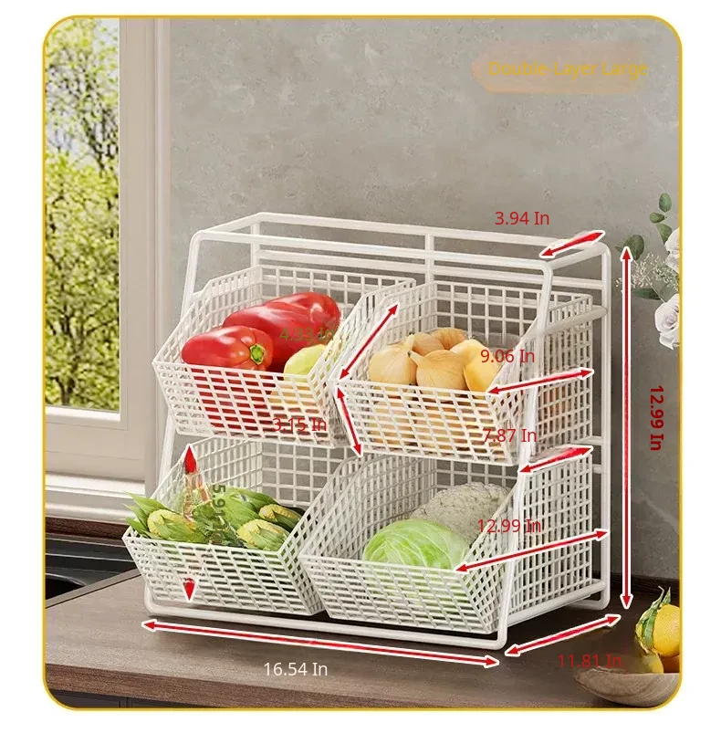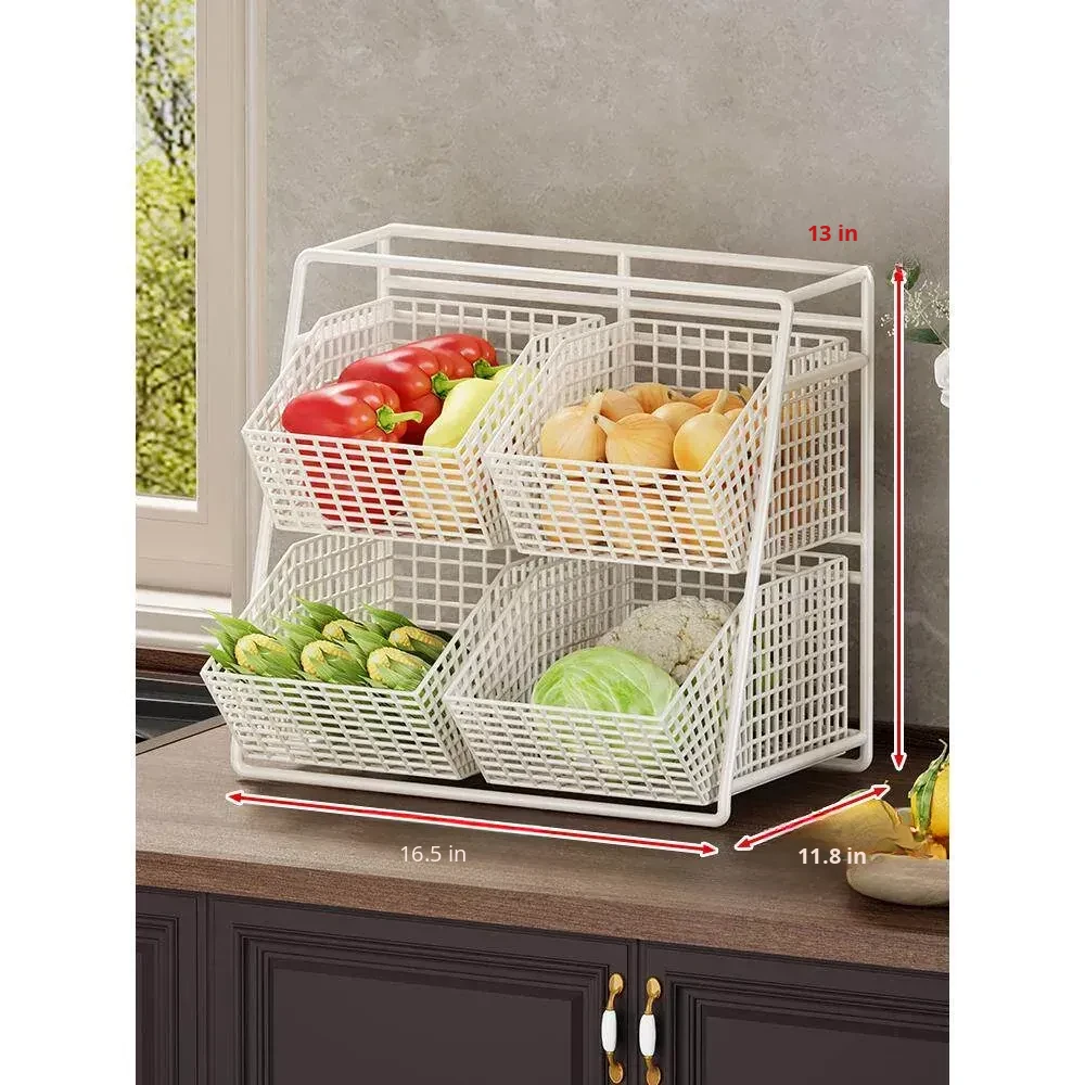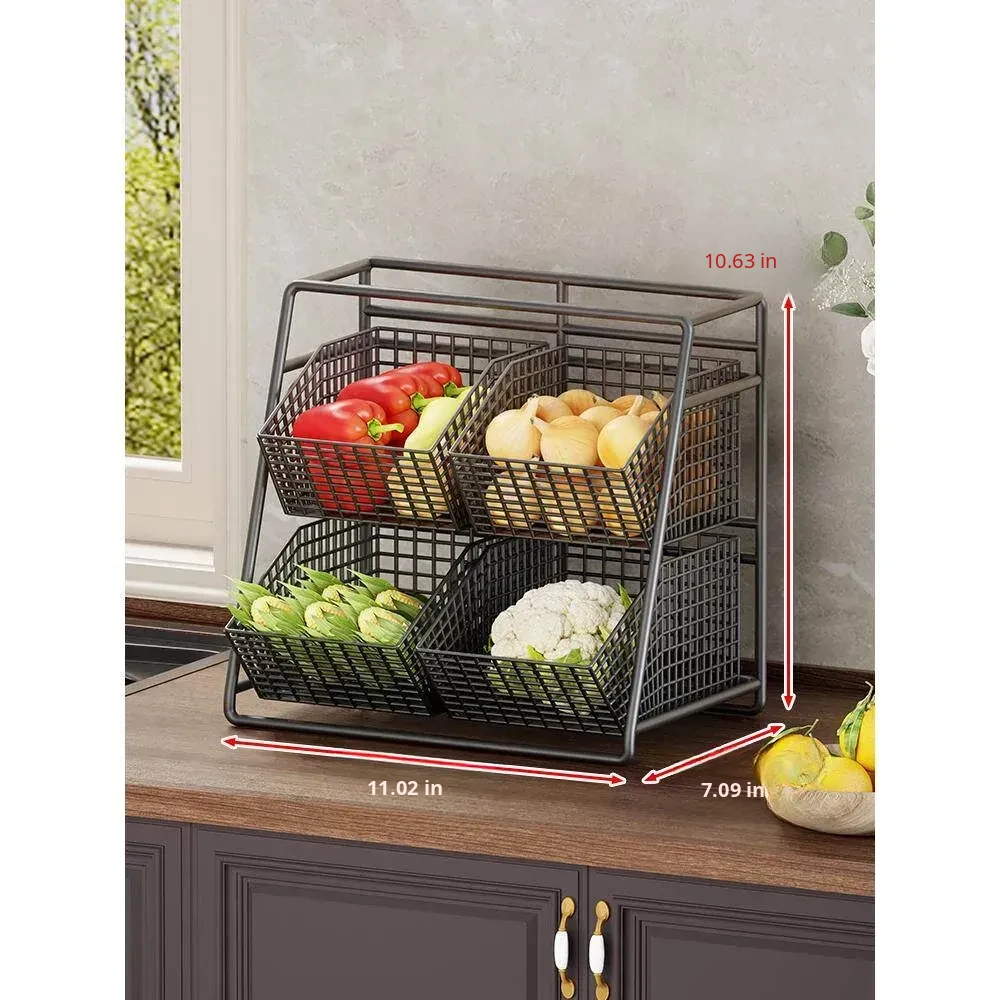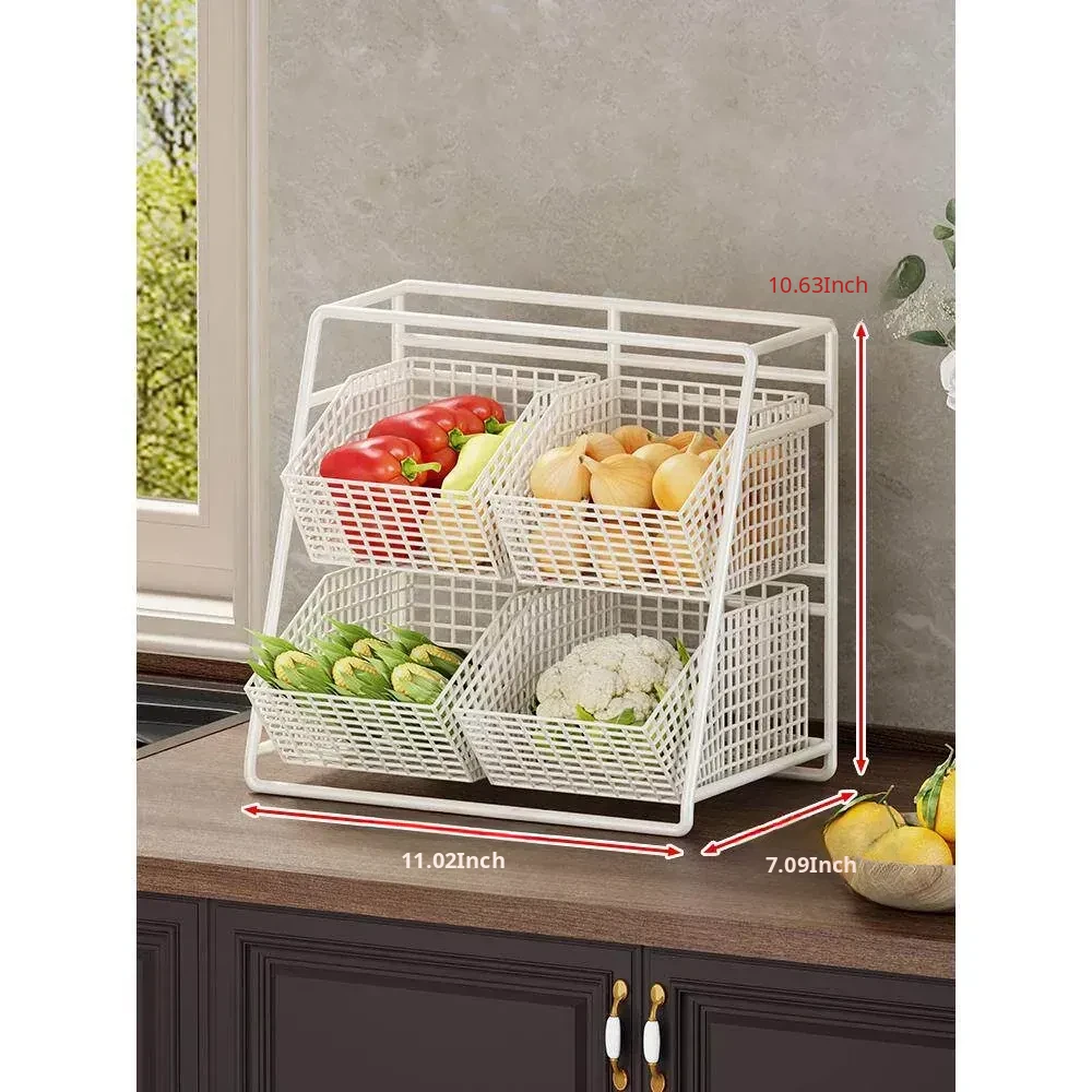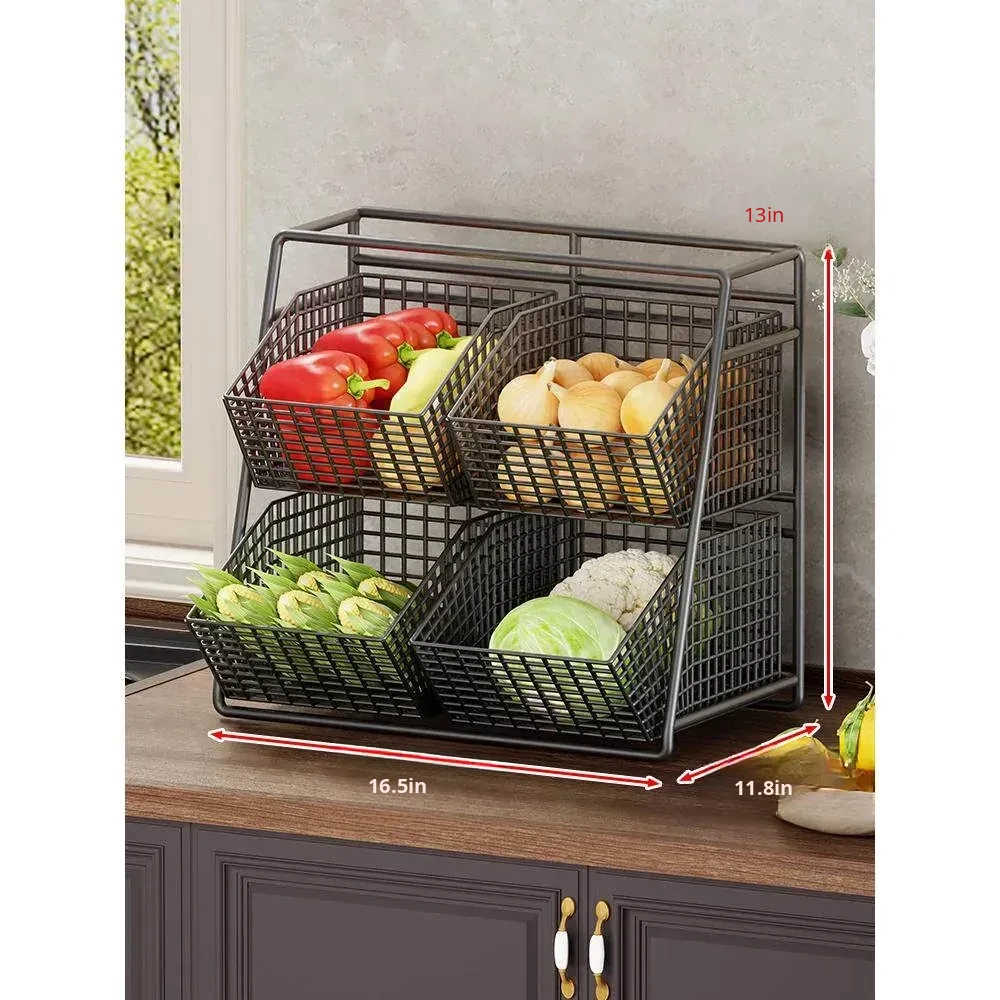 Multi-Tiered Kitchen Vegetable and Fruit Storage Basket – Large Capacity Snack Organizer with Divided Compartments for a Clutter-Free Countertop