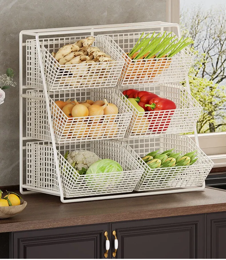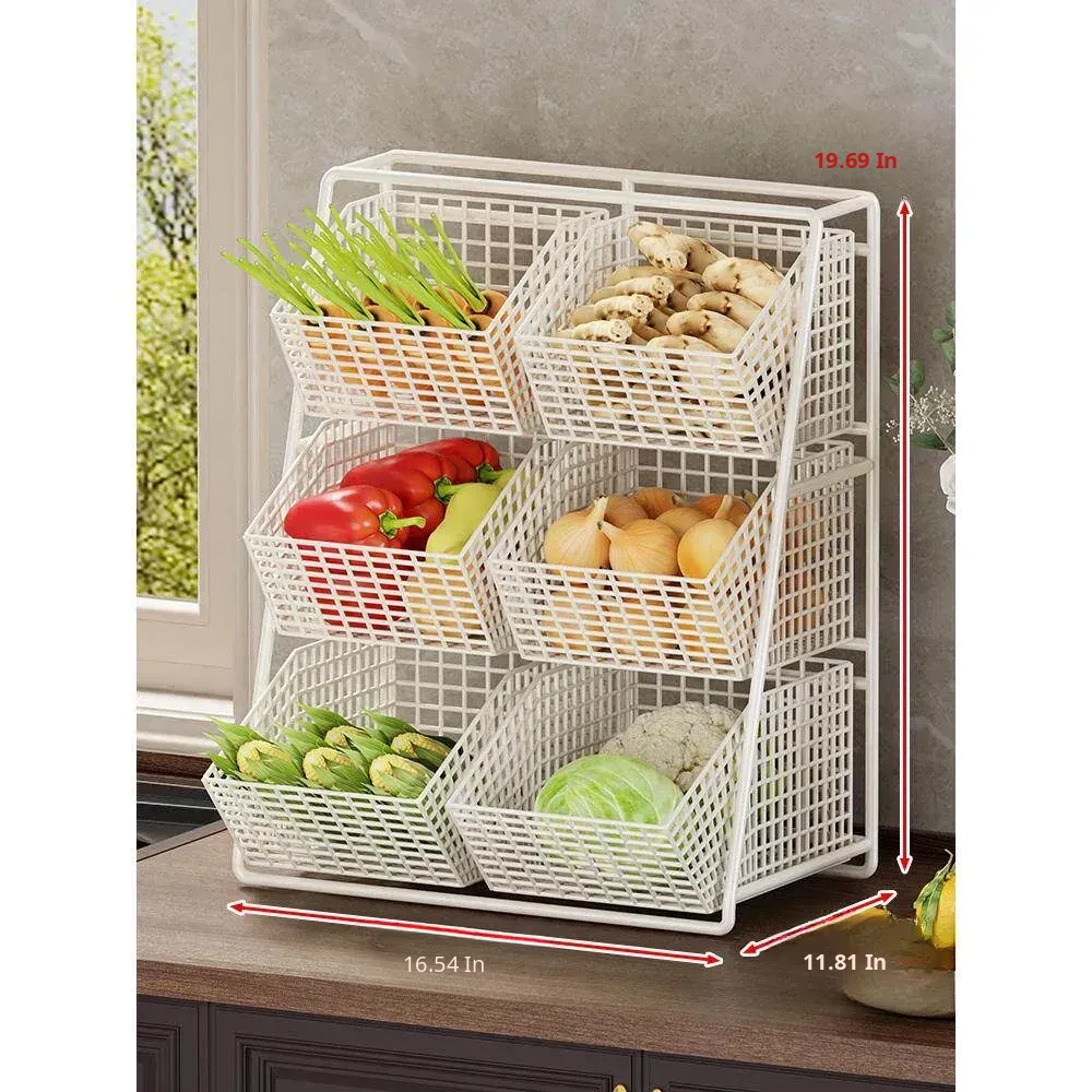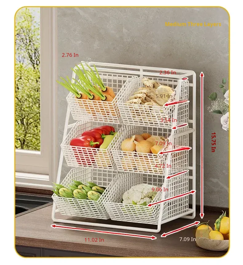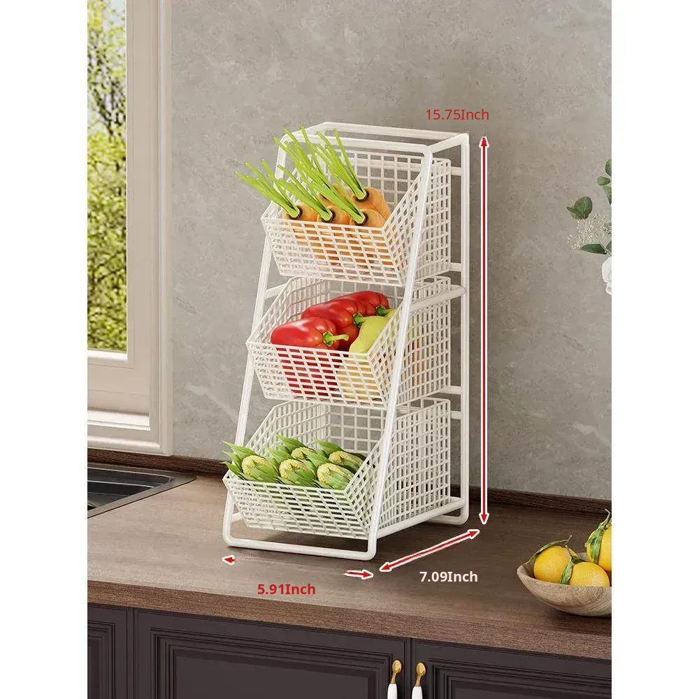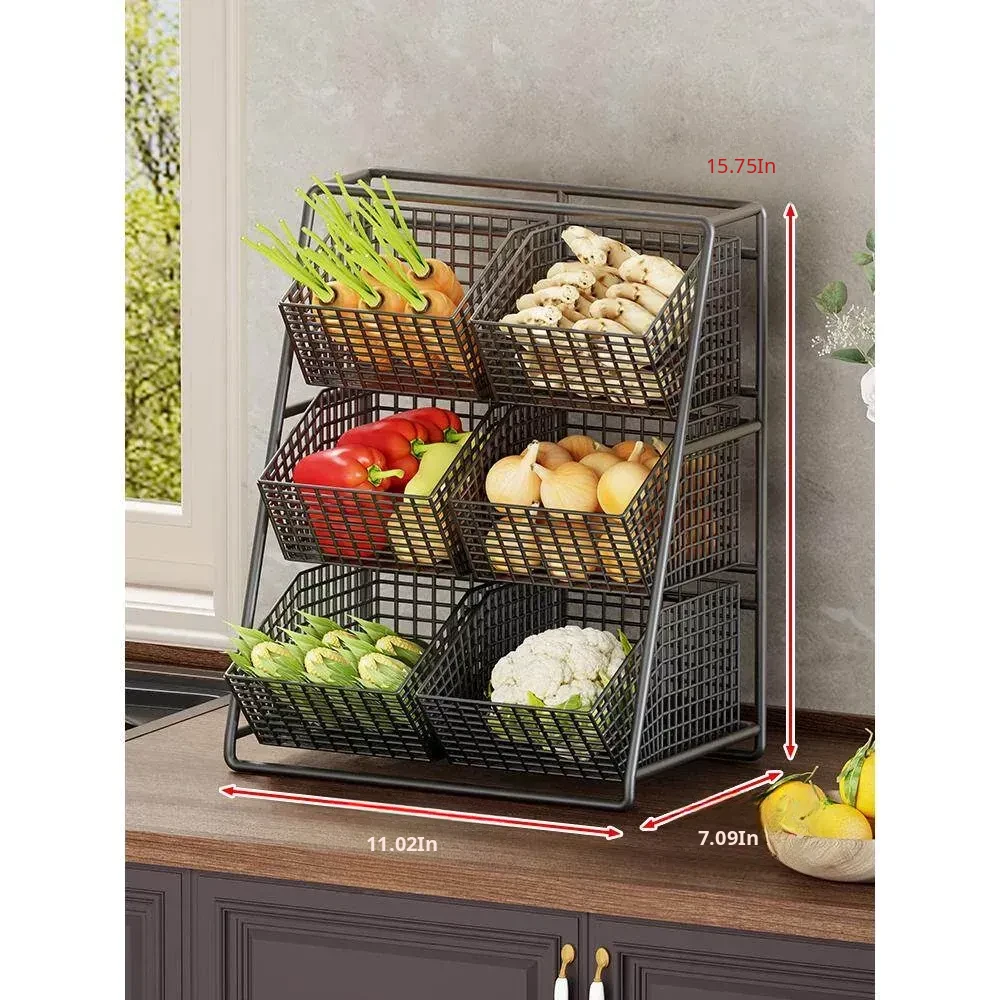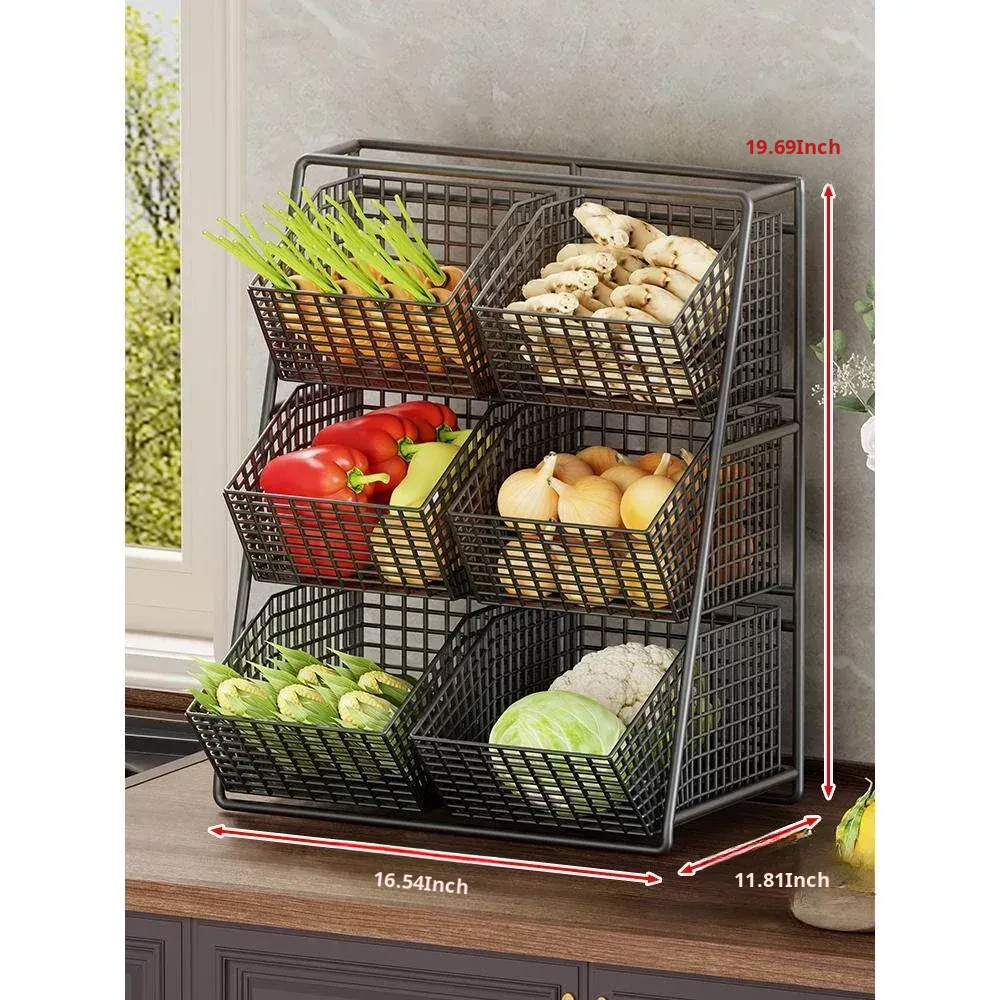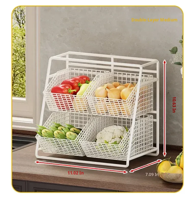 Multi-Tiered Kitchen Vegetable and Fruit Storage Basket – Large Capacity Snack Organizer with Divided Compartments for a Clutter-Free Countertop