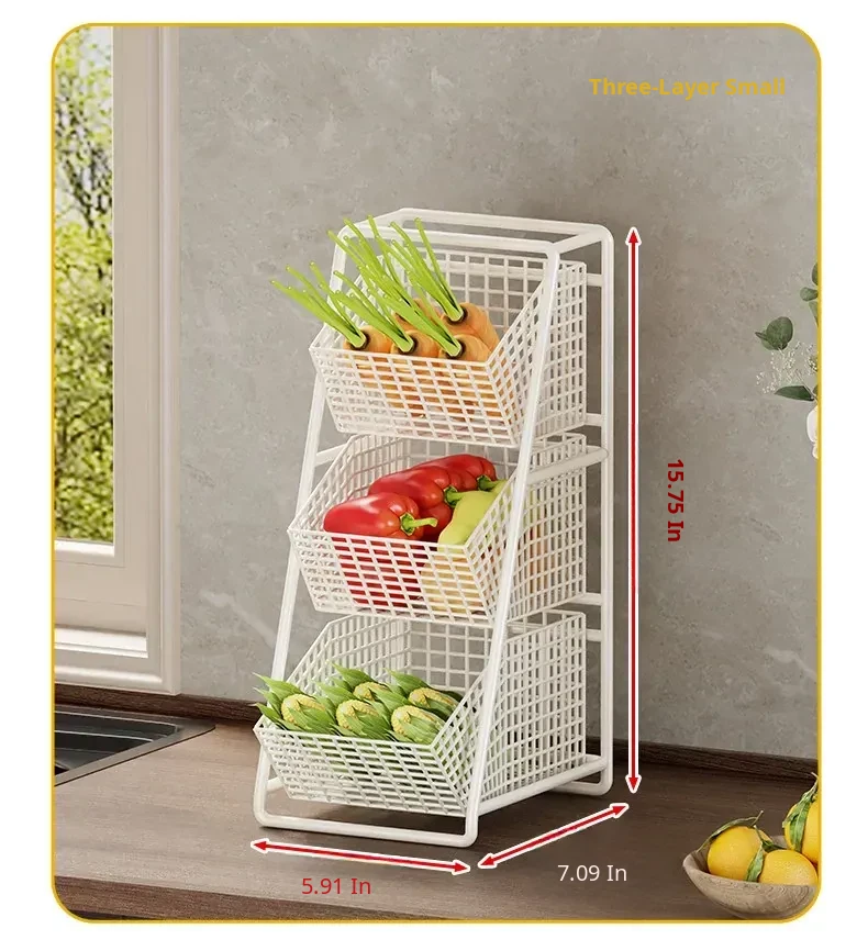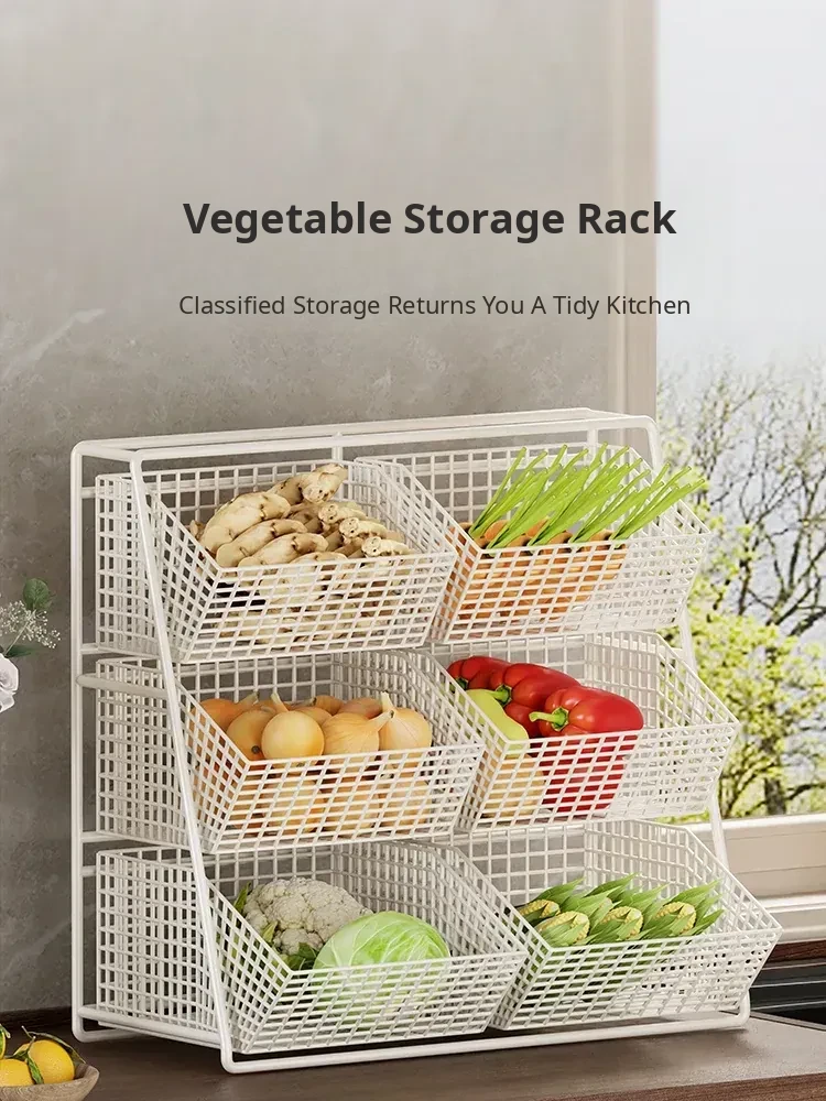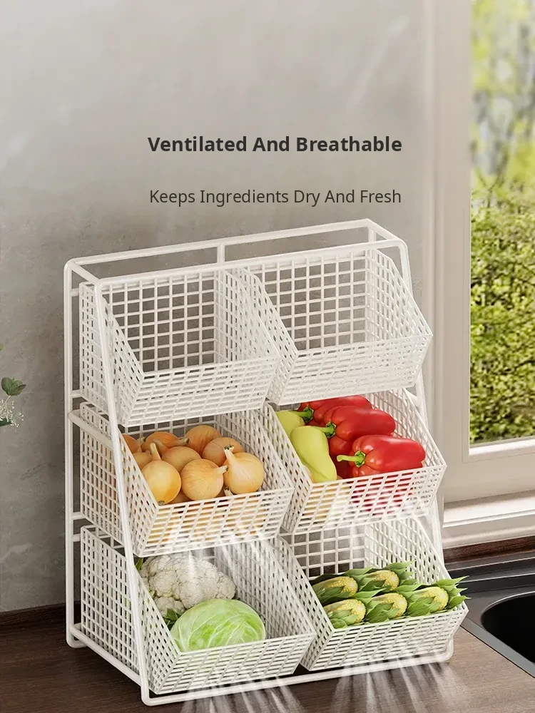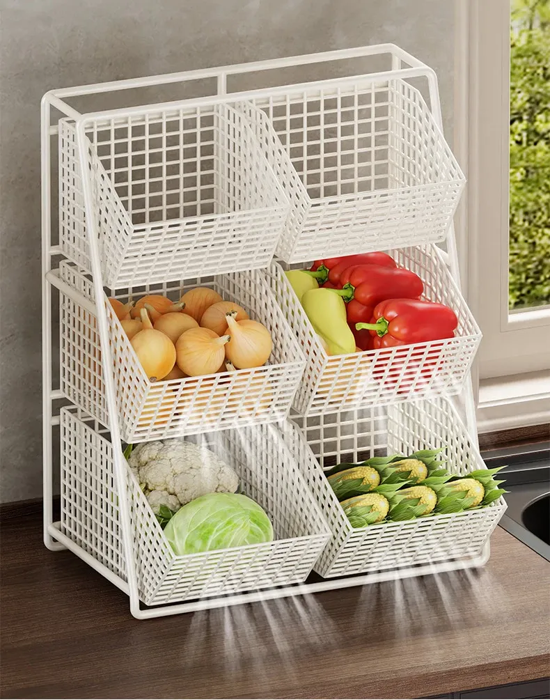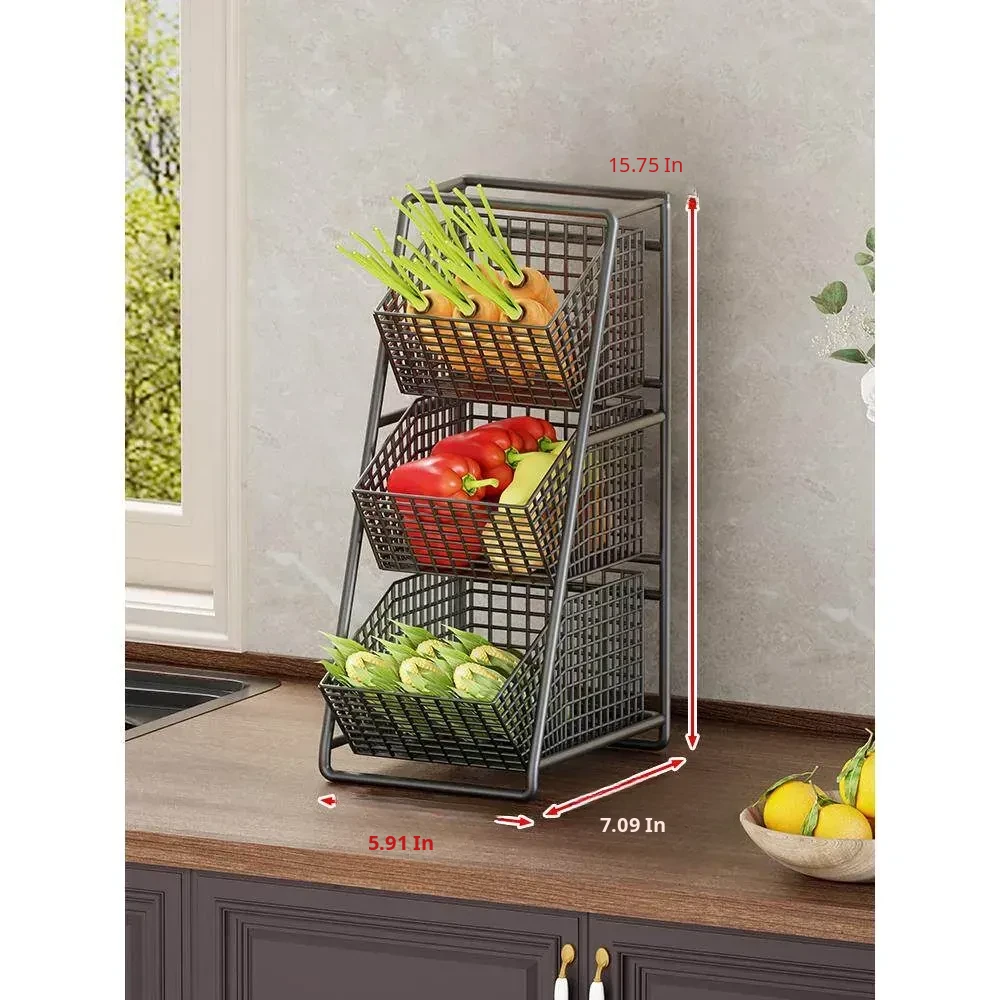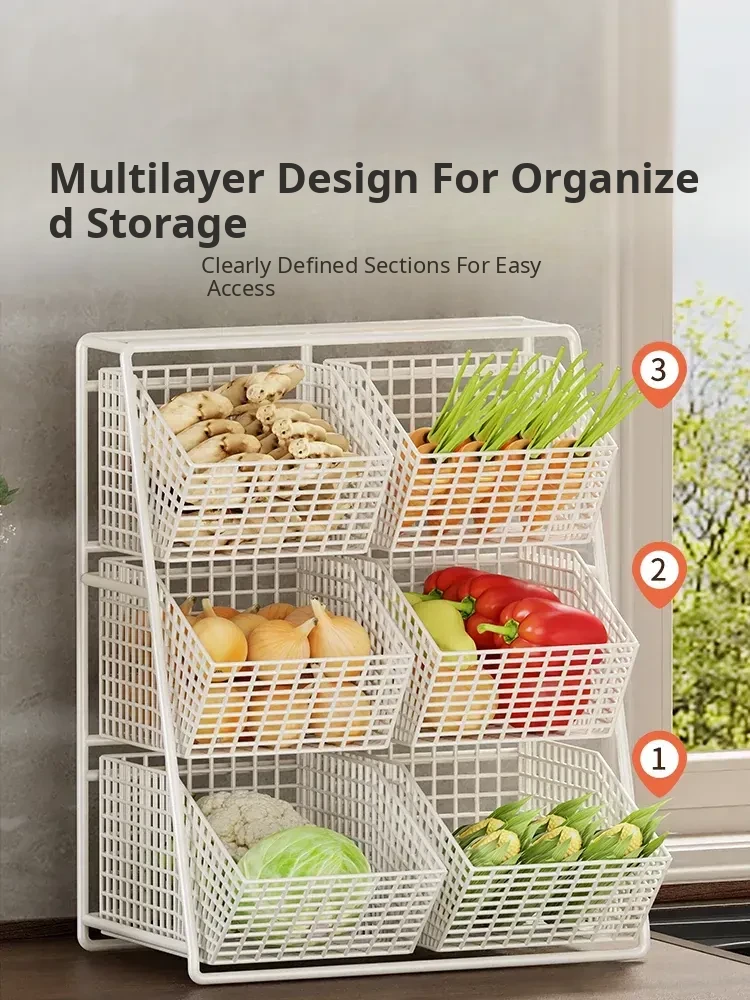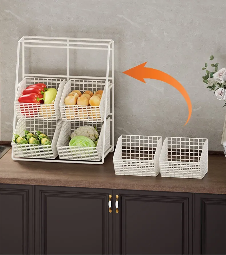 Multi-Tiered Kitchen Vegetable and Fruit Storage Basket – Large Capacity Snack Organizer with Divided Compartments for a Clutter-Free Countertop