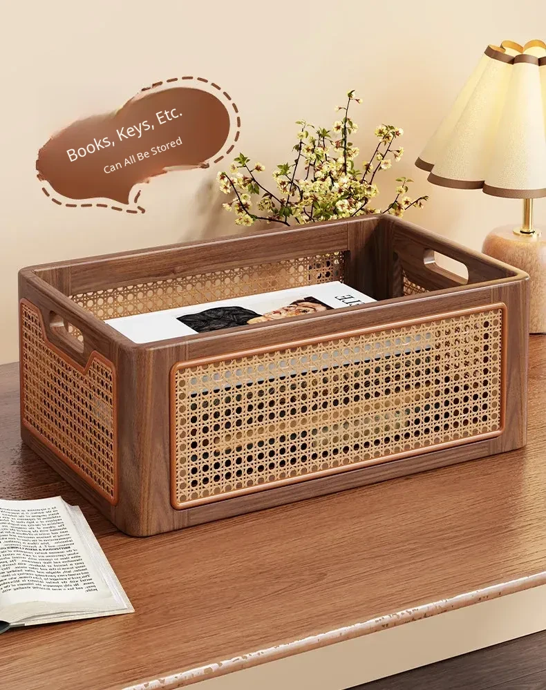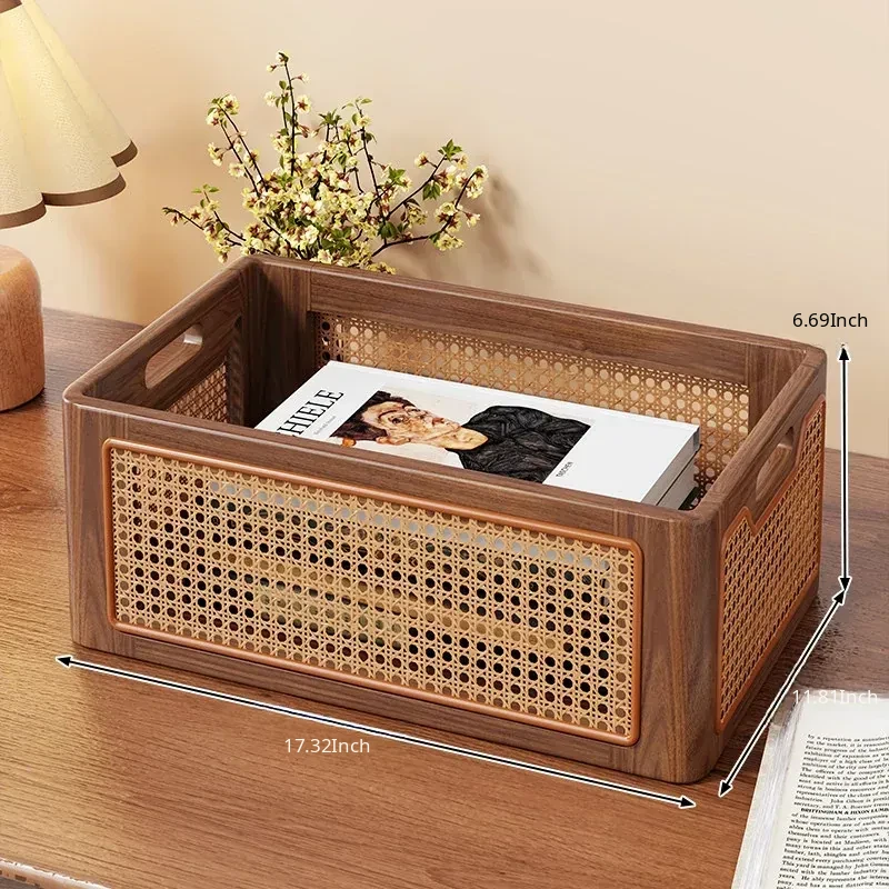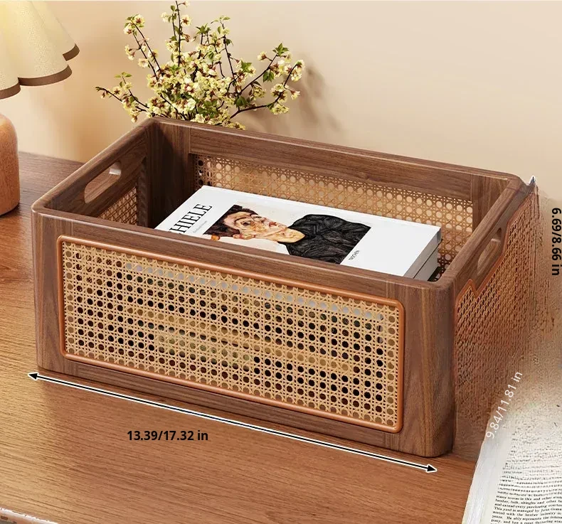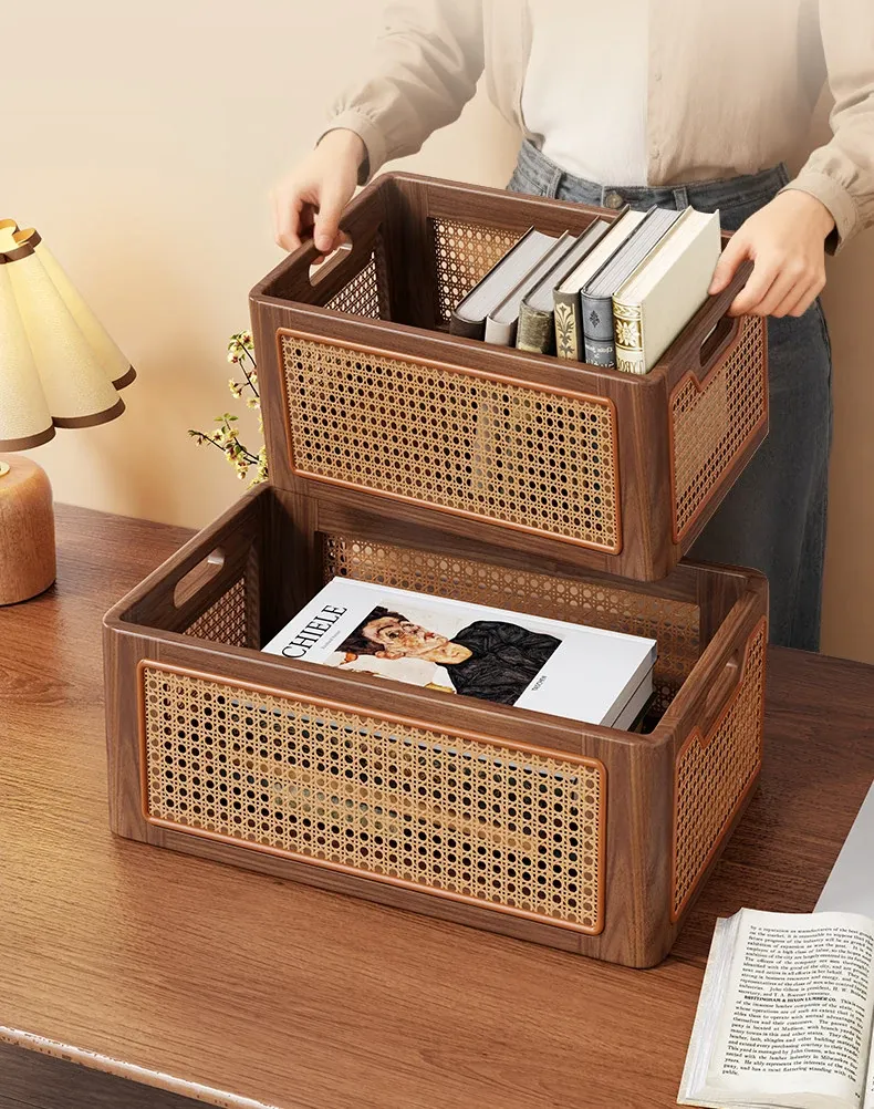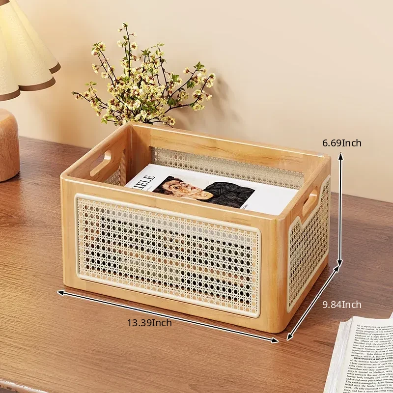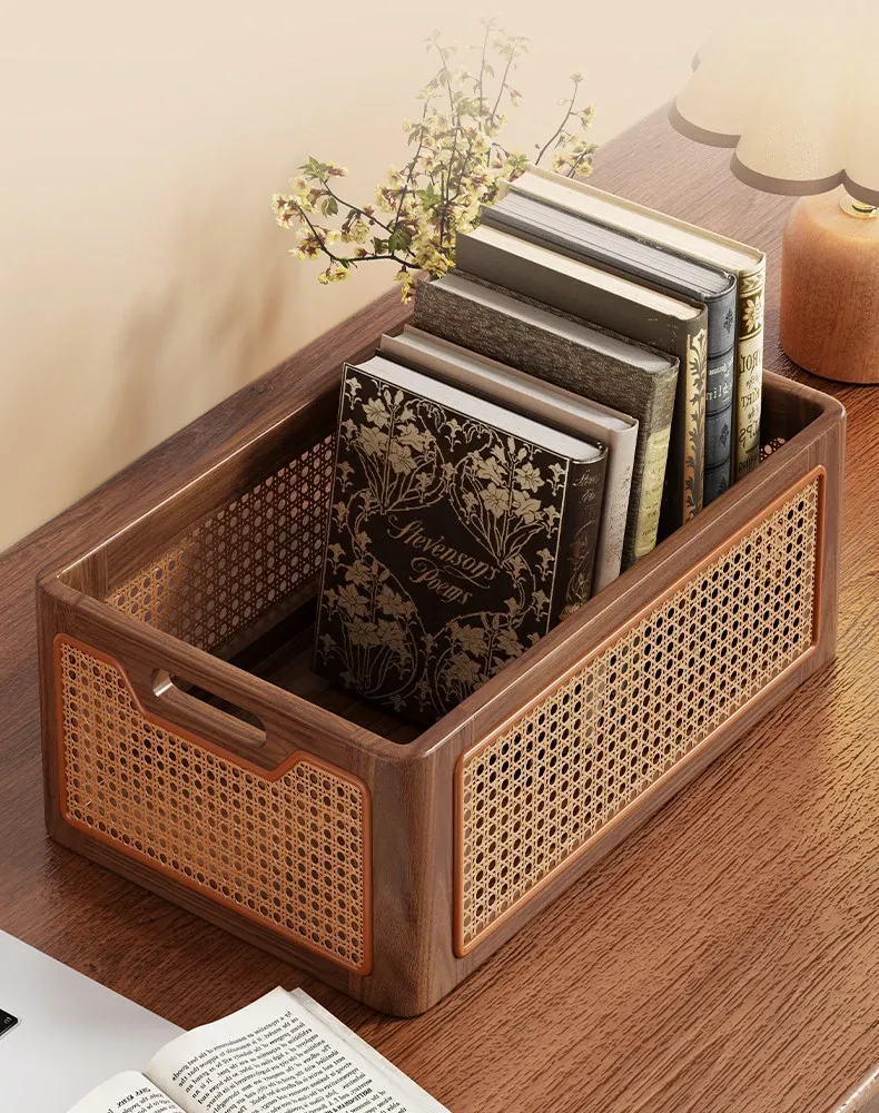 Natural Wood Book Rack and Storage Basket - Handmade Woven Organizer for Fruits, Snacks, and Kitchen Essentials - Perfect for Desktop and Home Decor
