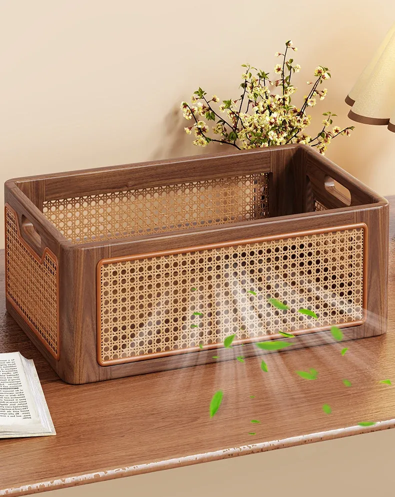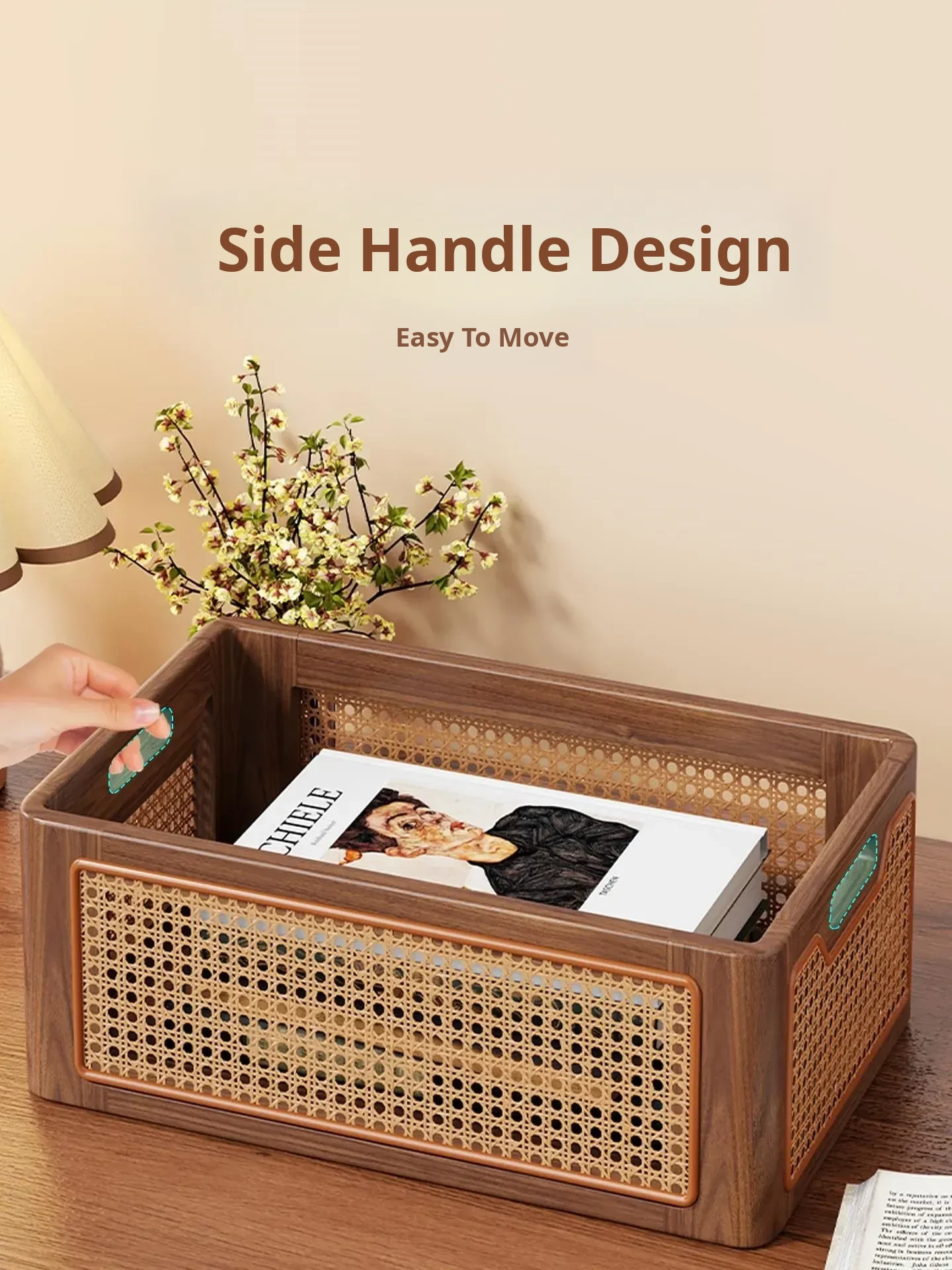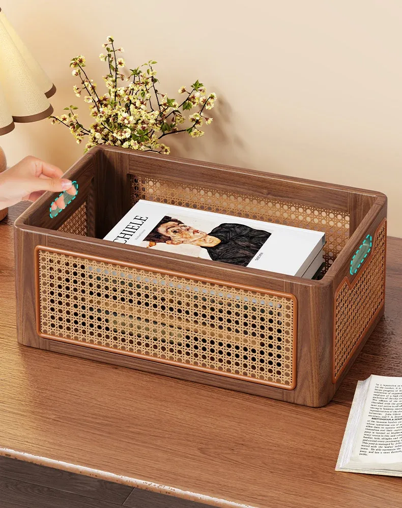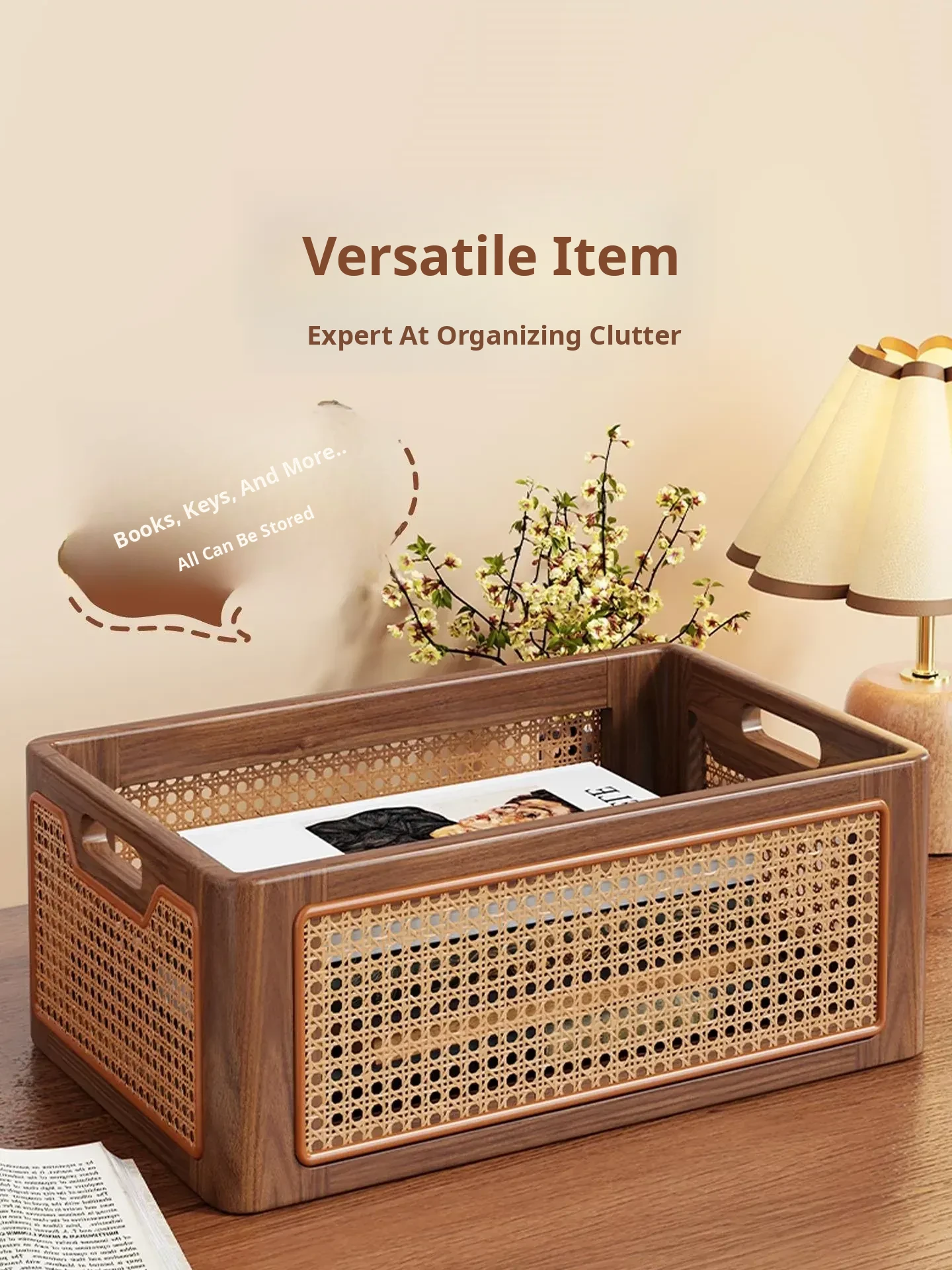 Natural Wood Book Rack and Storage Basket - Handmade Woven Organizer for Fruits, Snacks, and Kitchen Essentials - Perfect for Desktop and Home Decor