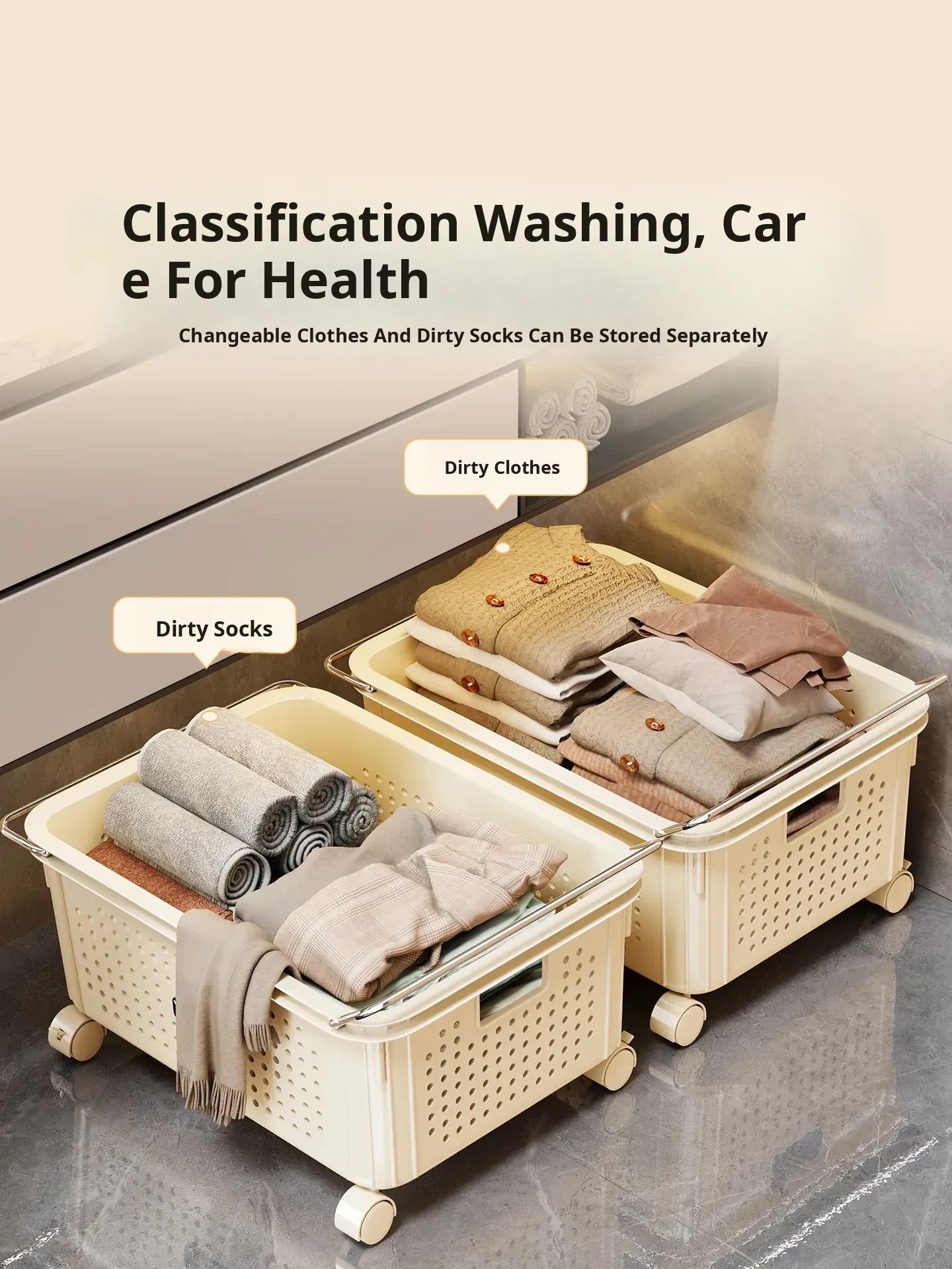 Portable Laundry Basket with Wheels - Waterproof Bathroom Hamper for Home Clothes Storage, Easy to Move and Organize Your Laundry