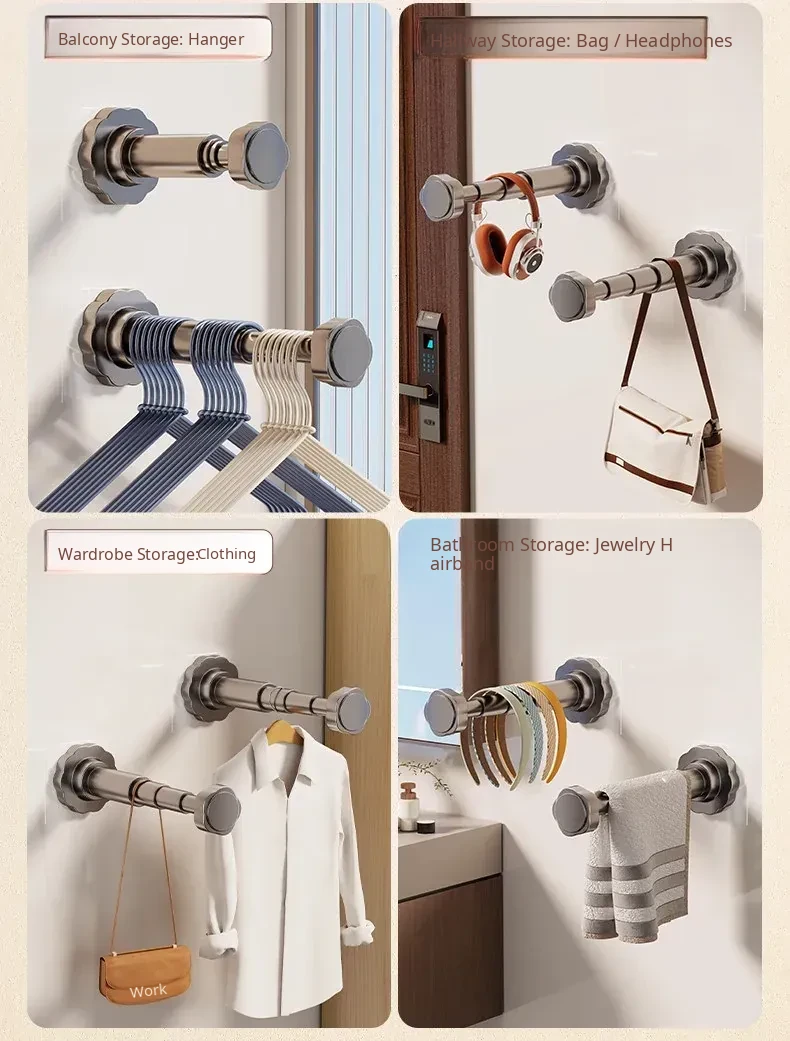 Retractable Suction Cup Clothes Drying Rack - Versatile Wall-Mounted Storage Solution for Home, No Drill Required, Perfect for Hanging Clothes and Hats Behind Doors