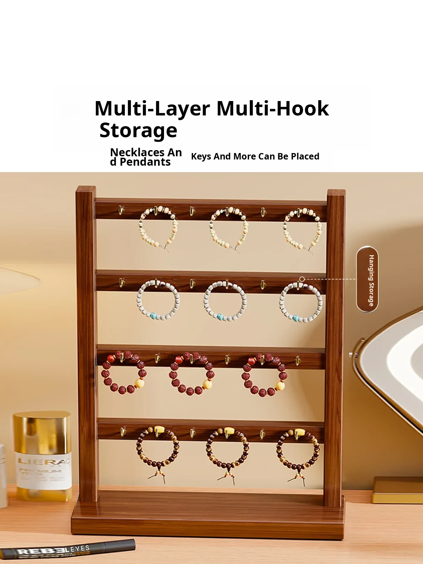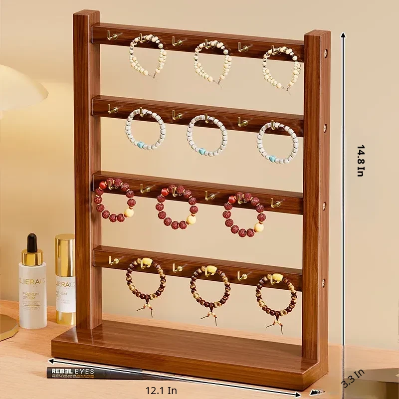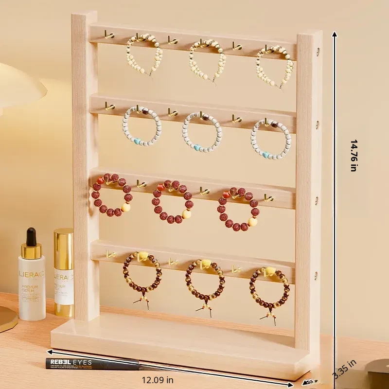 Solid Wood Jewelry Organizer - Multi-functional Display Rack for Hair Ties, Keychains, Bracelets, Necklaces, and Beads - Stylish Storage Solution for Your Accessories