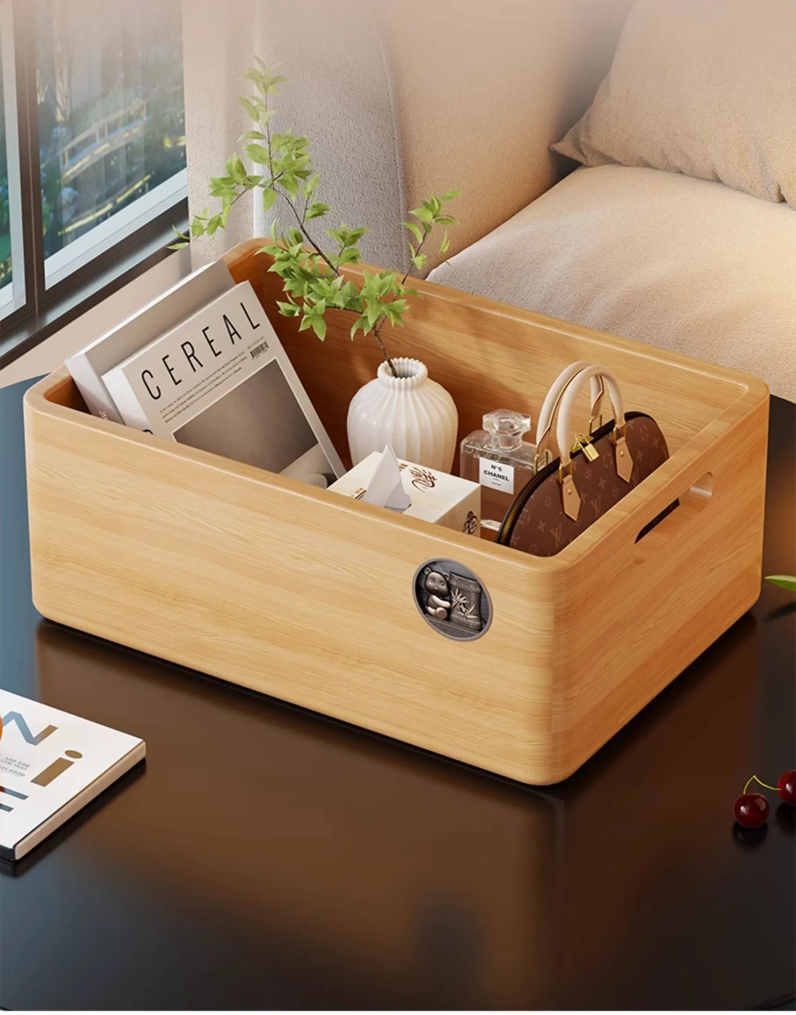 Solid Wood Storage Basket - Rectangular Snack Organizer for Desktop, Perfect for Kitchen Clutter Control and Small Item Storage, Stylish and Functional Wooden Box