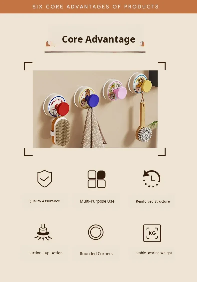 Strong Vacuum Suction Hooks - No Trace, No Drilling, Removable Adhesive Hooks for Kitchen, Bathroom, and Home Storage Solutions