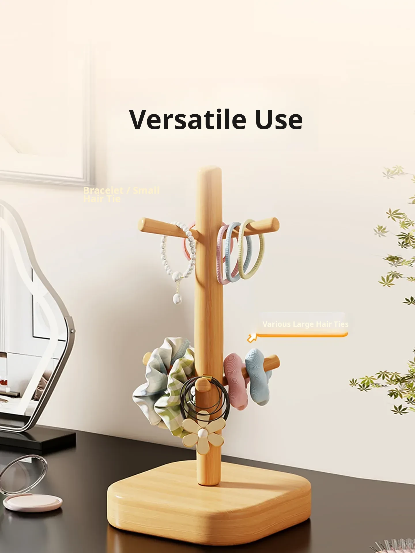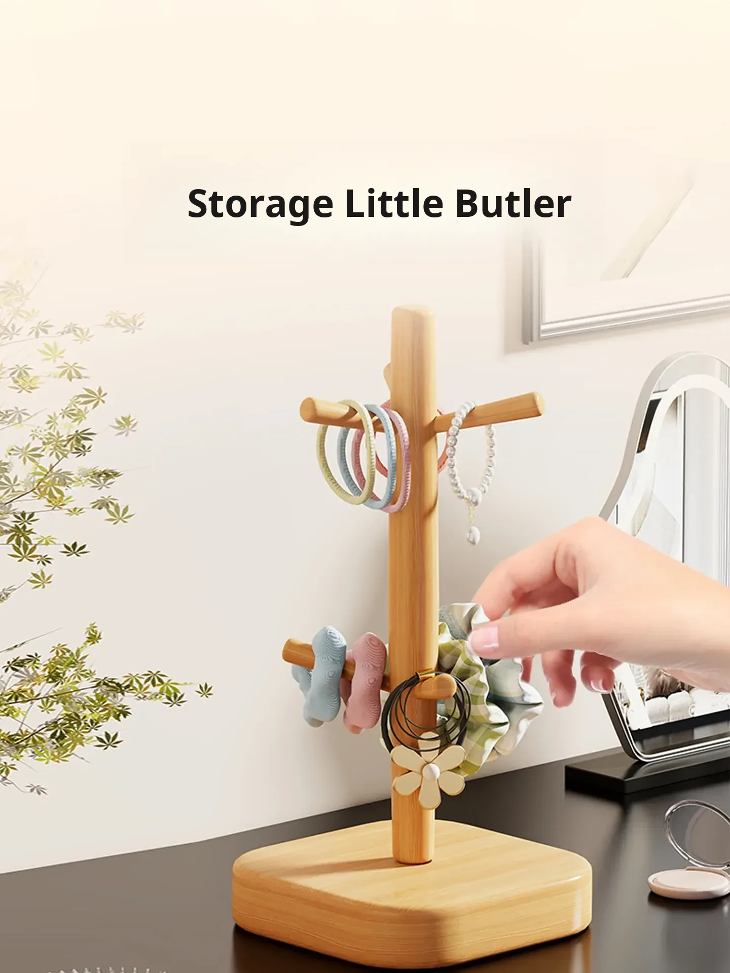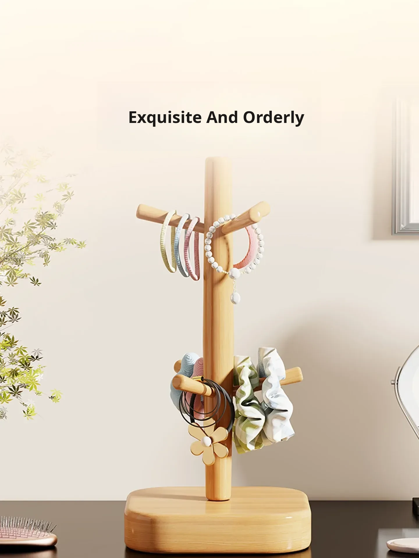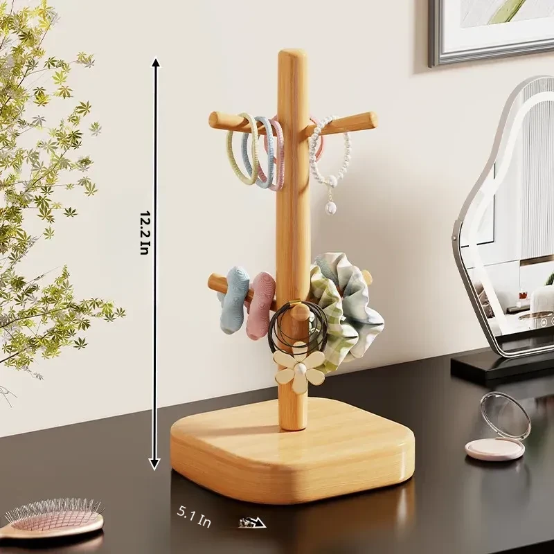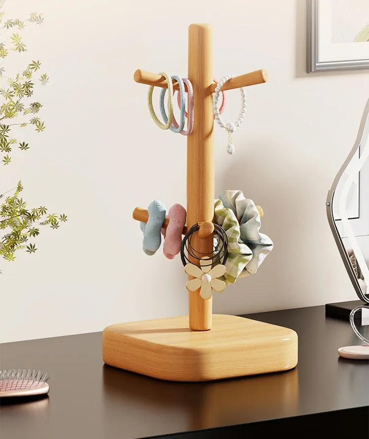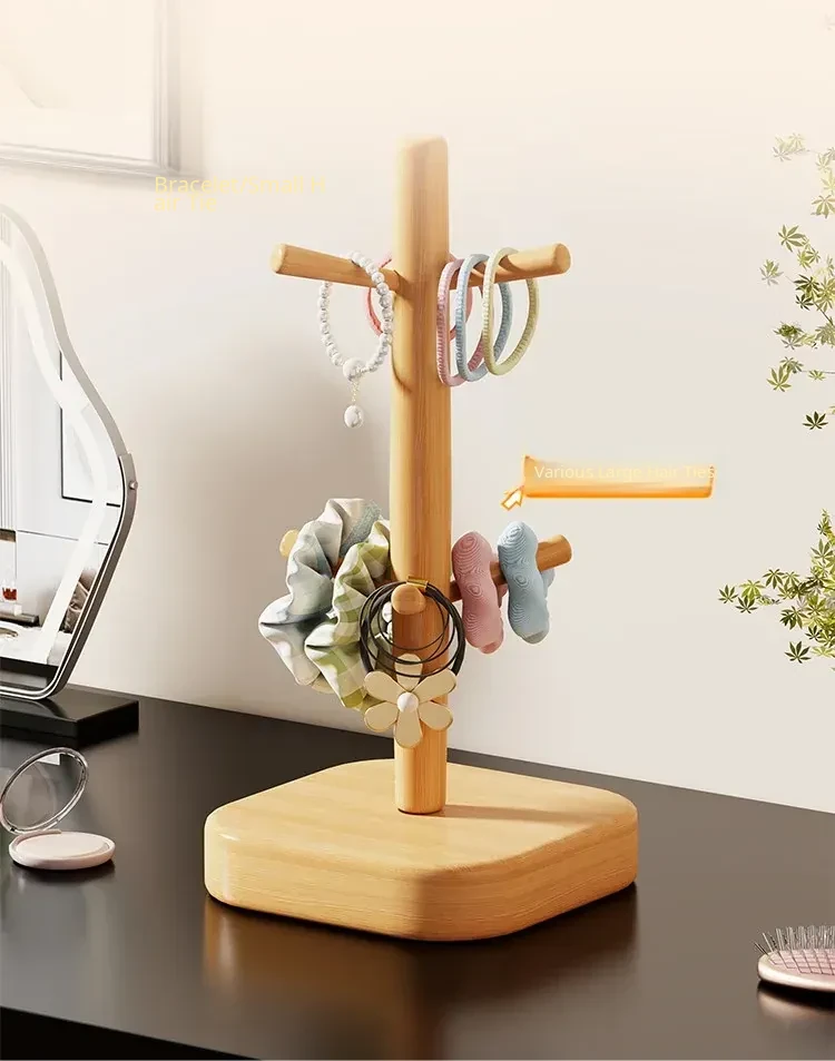 Stylish Wooden Hair Tie Organizer - Cute Shark Clip Display Stand for Kids' Hair Accessories, Perfect for Your Desktop!