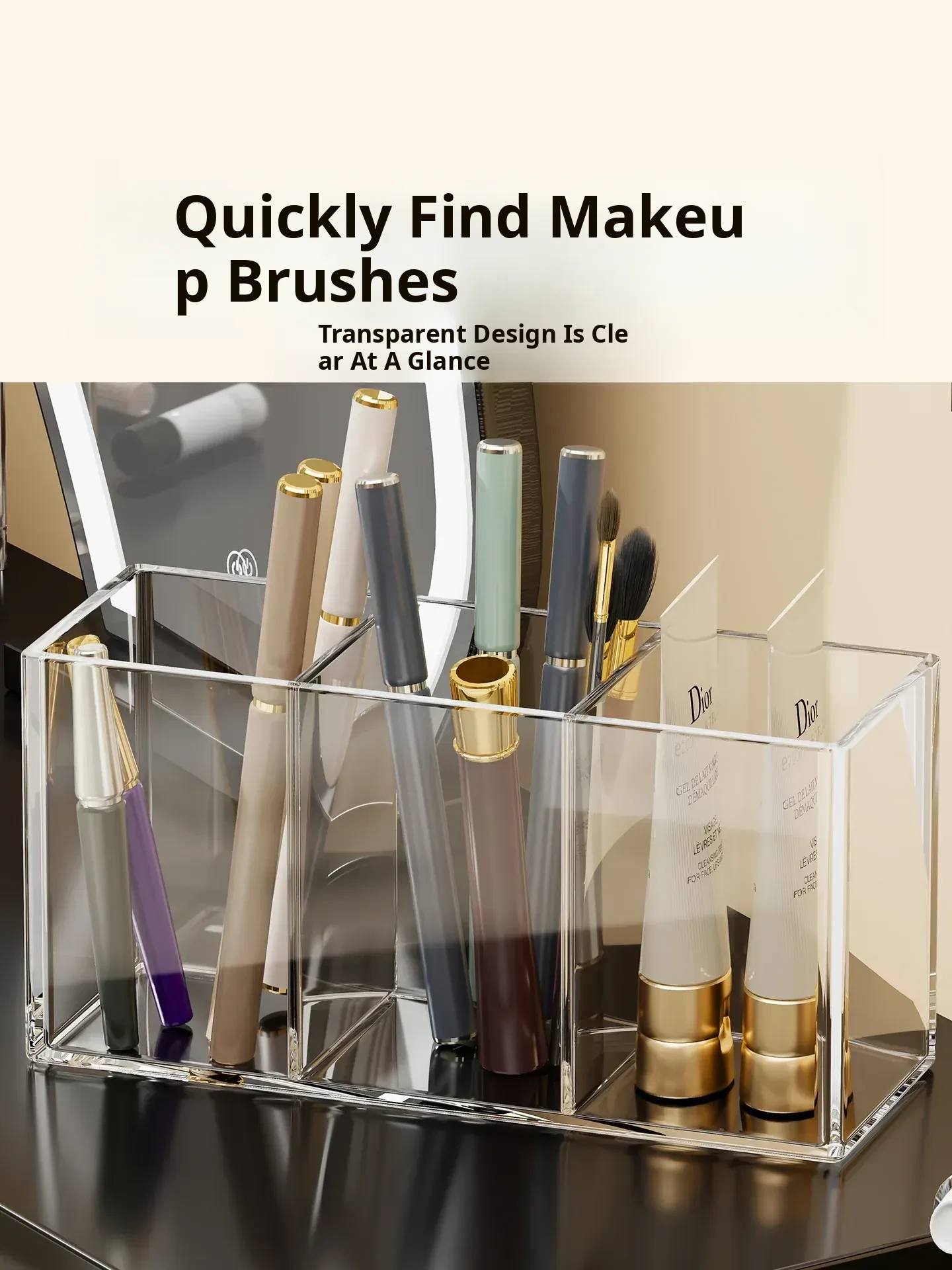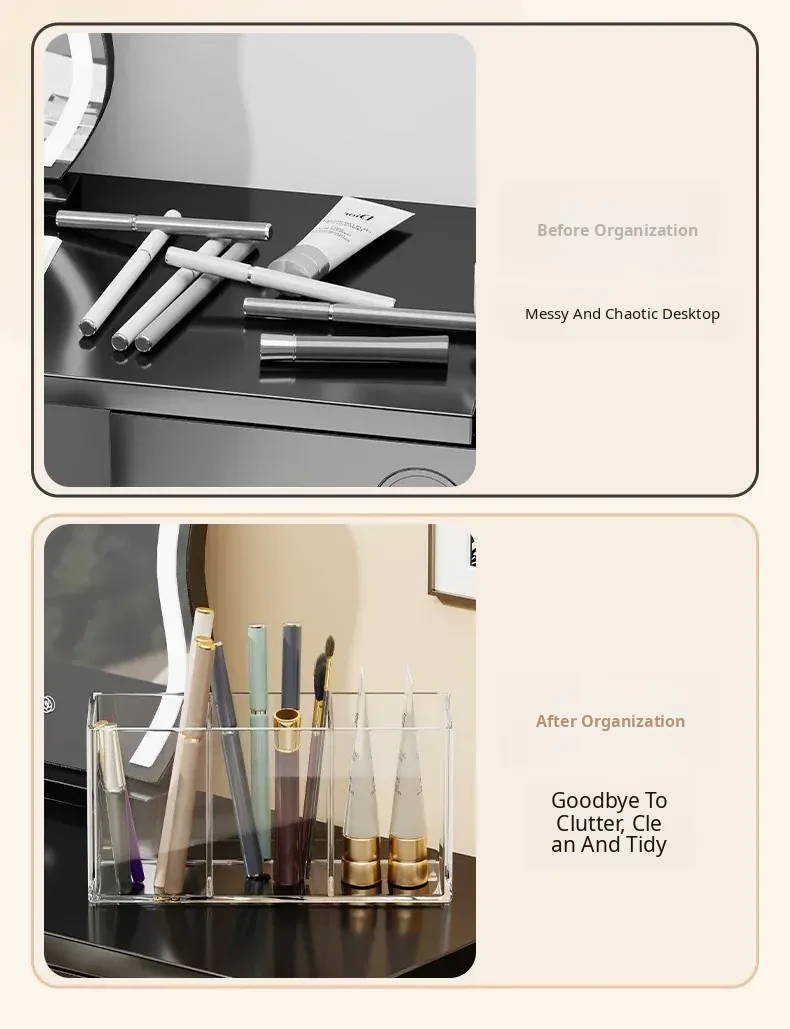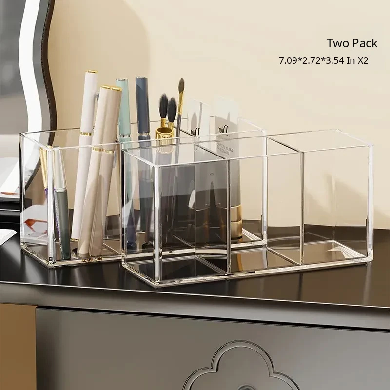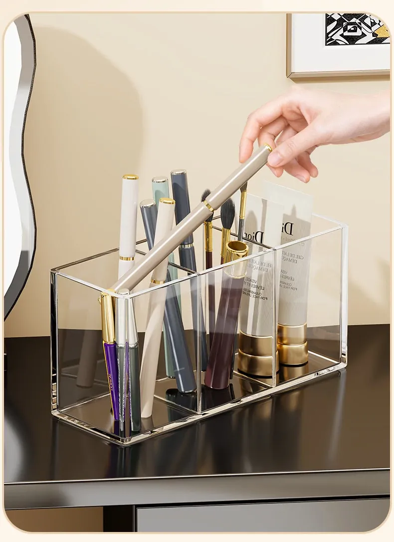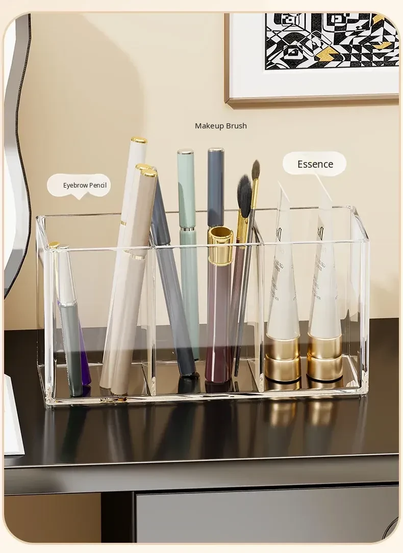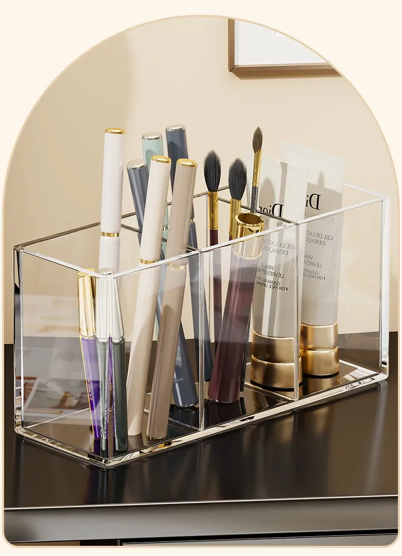 Transparent Makeup Brush Organizer with Dividers - Stylish Desktop Storage for Cosmetics, Lipsticks, Eyeliners, and Combs - Keep Your Beauty Essentials Neatly Arranged